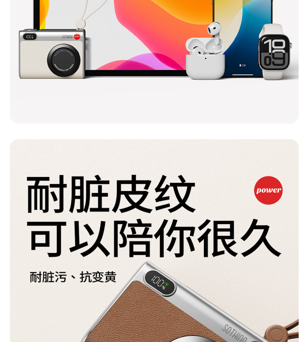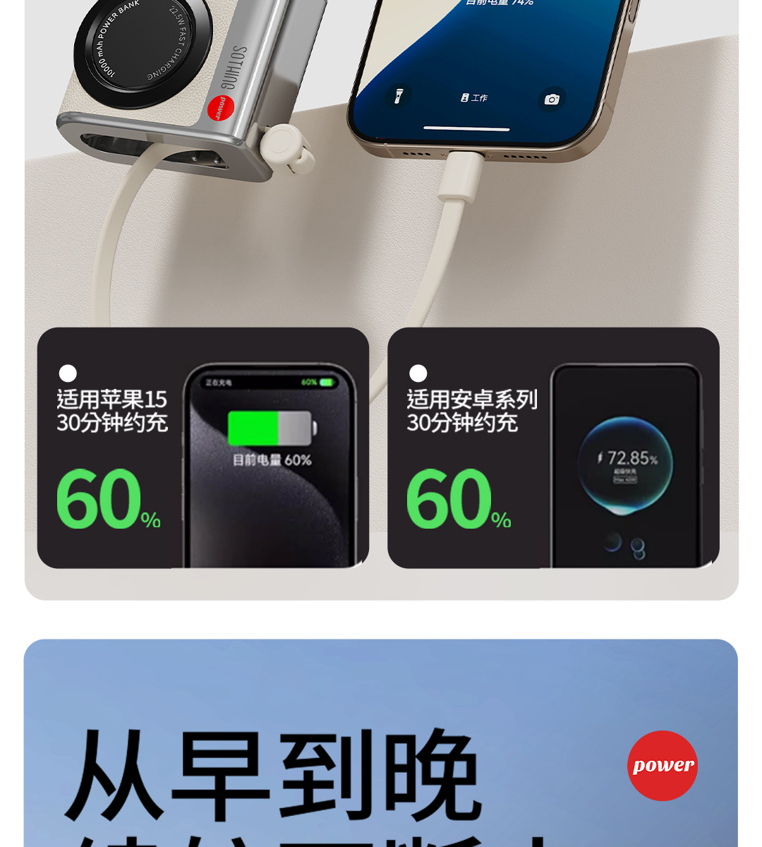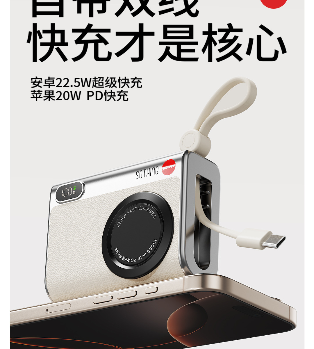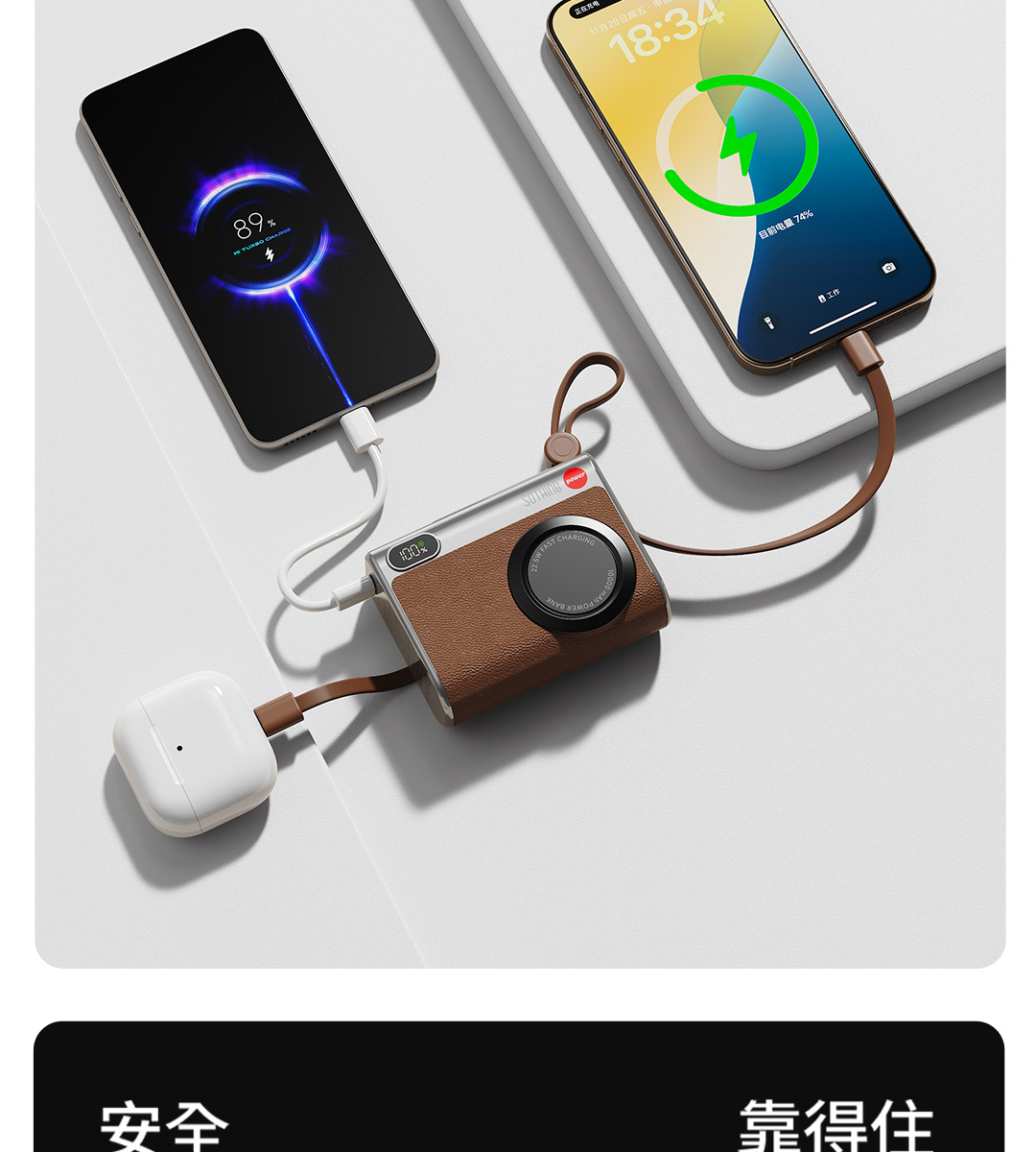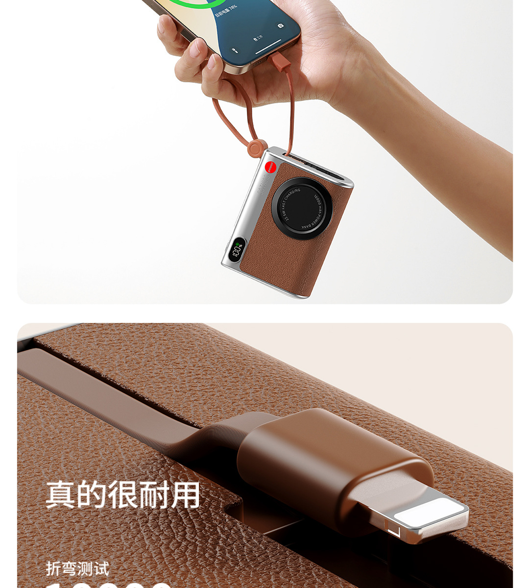 • 레트로 브라운 [Apple+Type-C 케이블]★[20W/22.5W 고속 충전] Apple 및 Android 고속 충전 10000mAh에 적합
