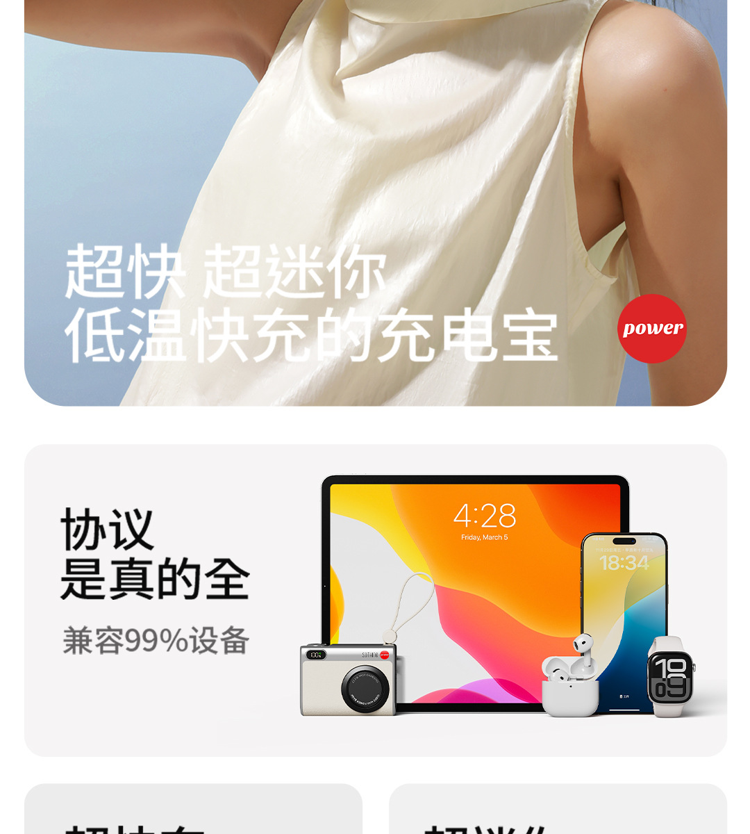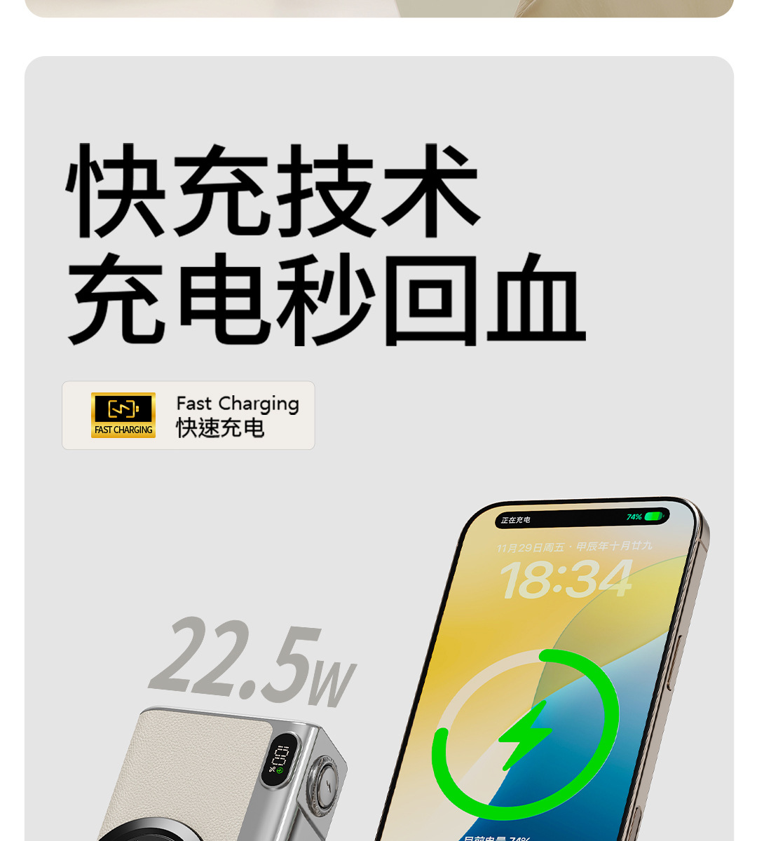 • 크림 화이트 [Apple+Type-C 케이블] ★ [20W/22.5W 고속 충전] Apple 및 Android 고속 충전 10000mAh에 적합