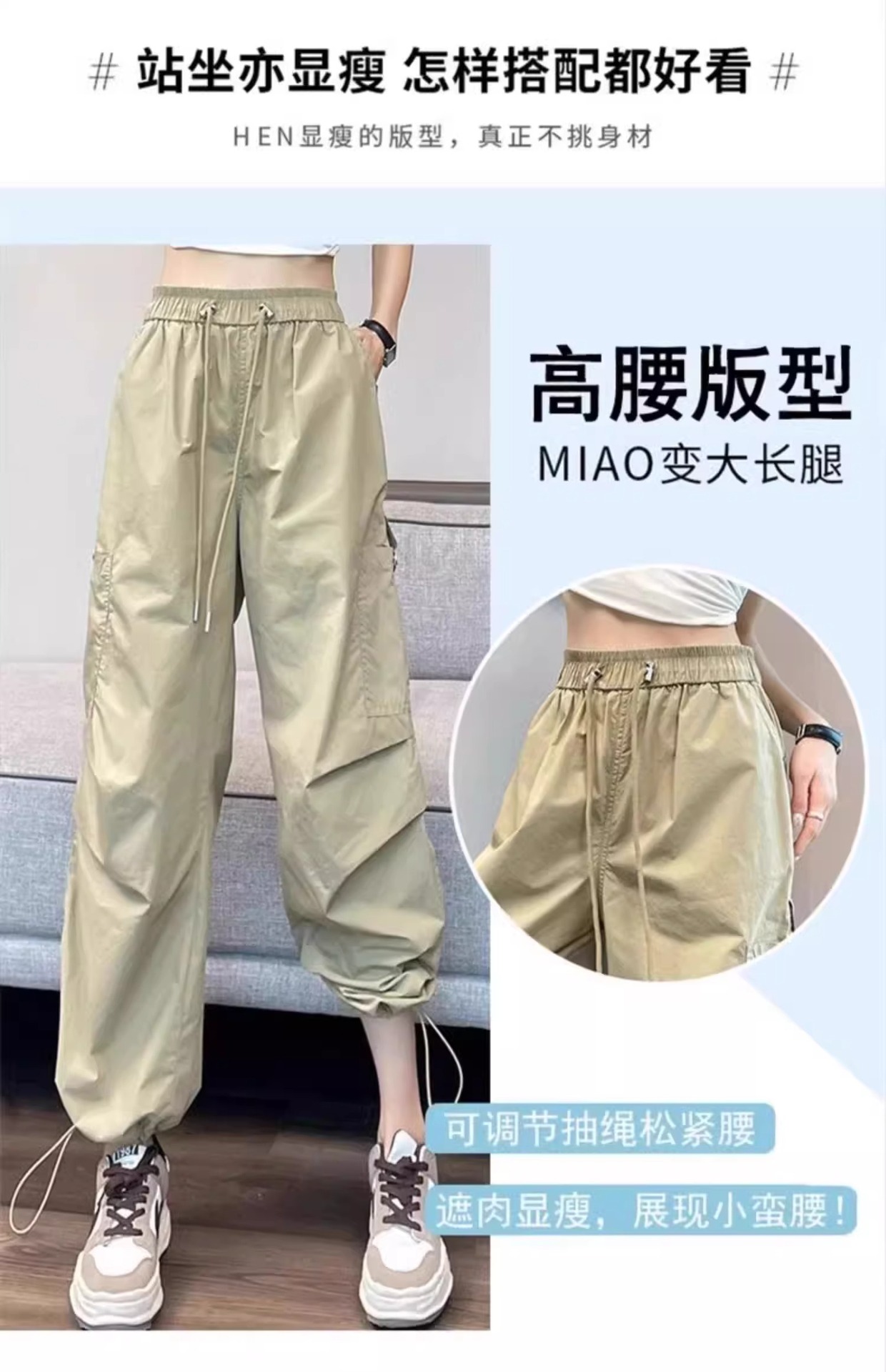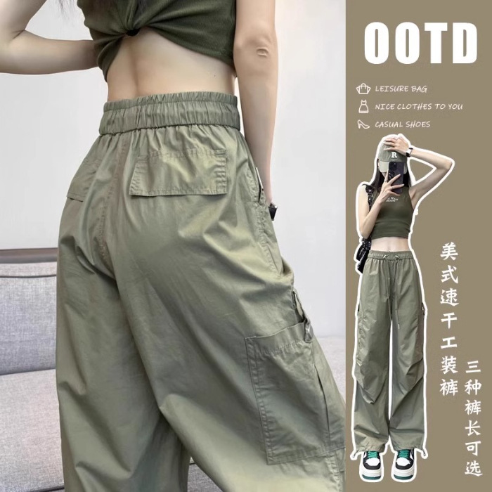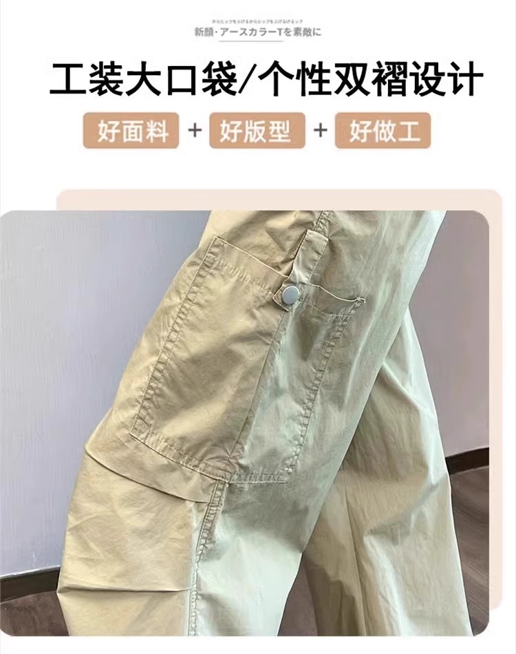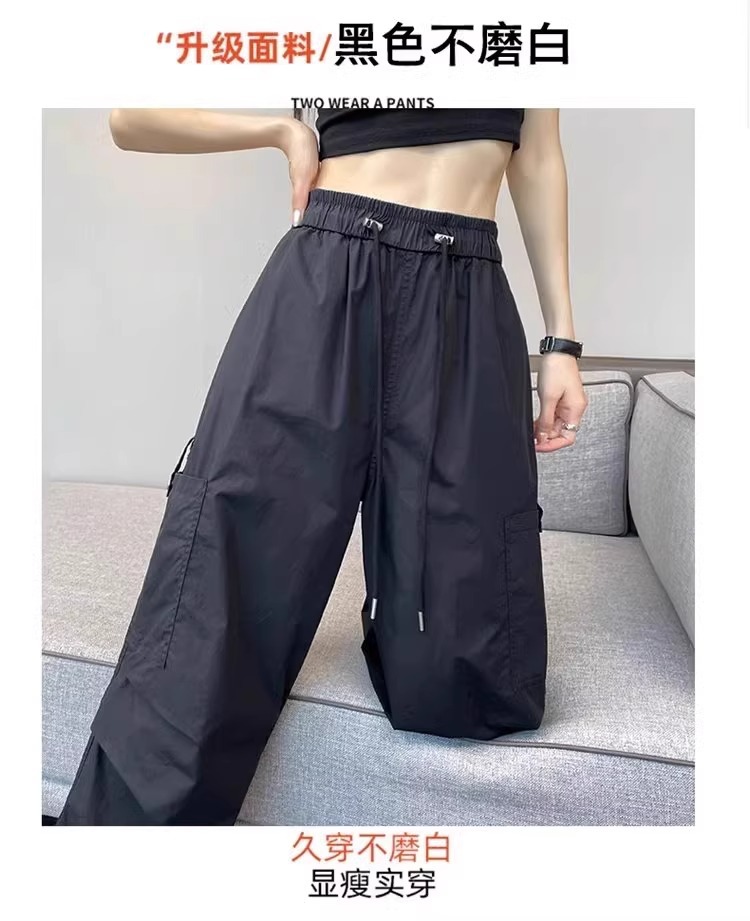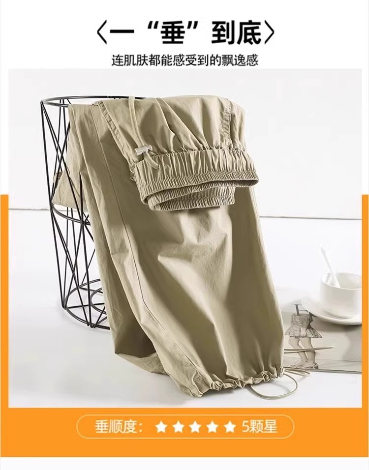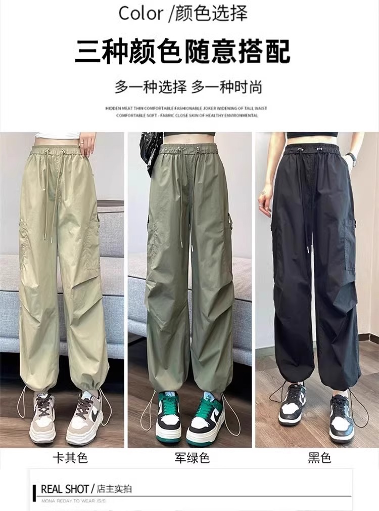 카키 빠른 건조는 여성의 2025 년 새로운 여름 얇은 드로 스트링 하이킹 바지 캐주얼 와이드 레그 낙하산 바지스토어 가기