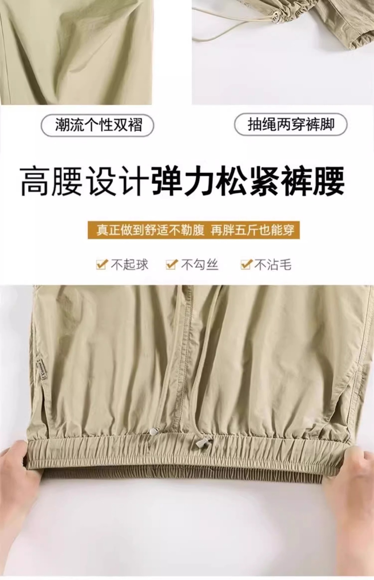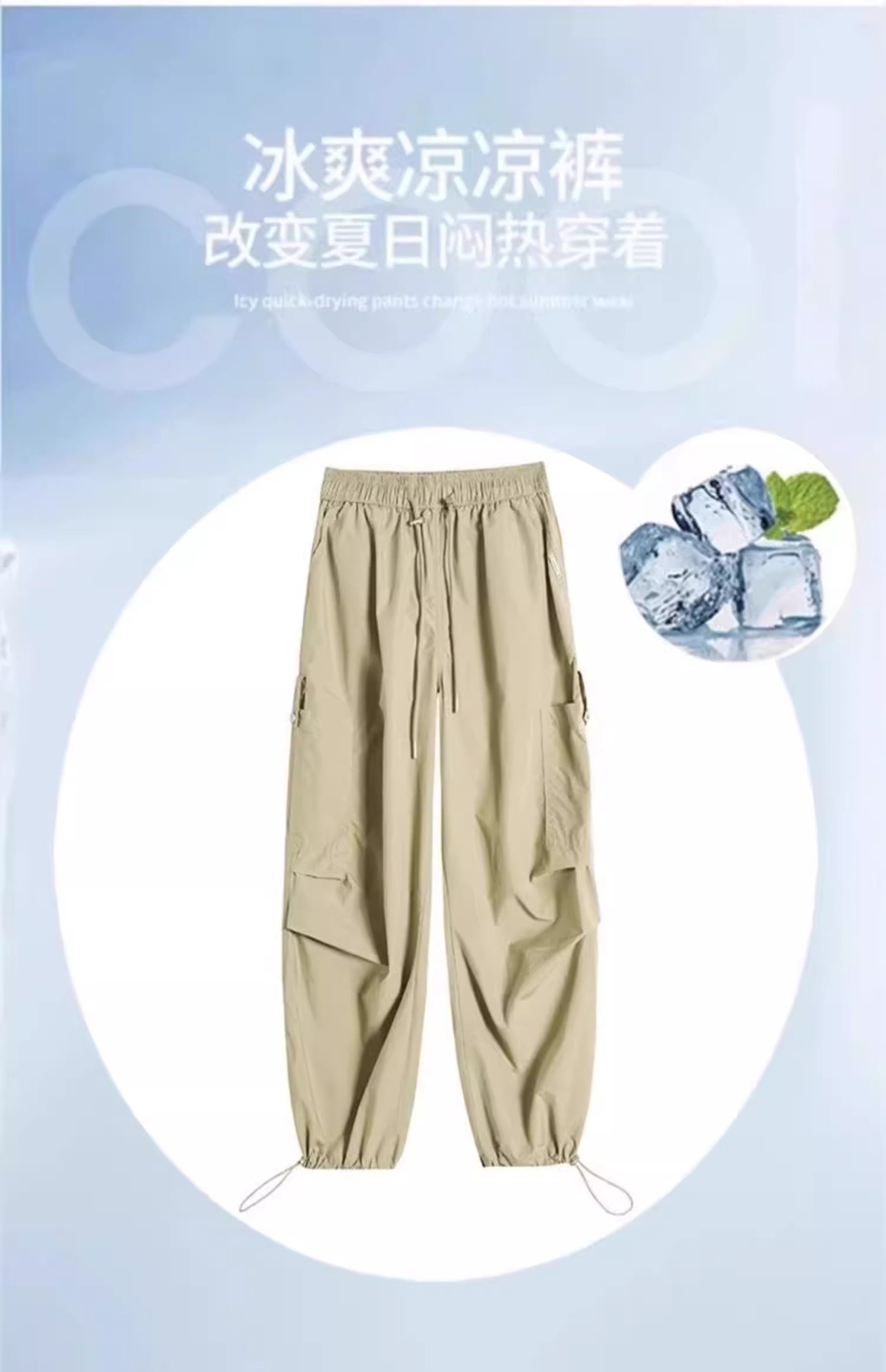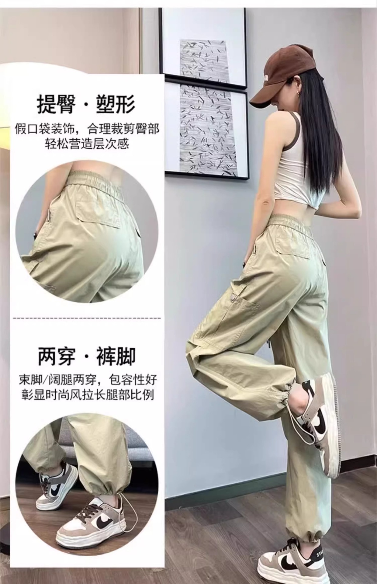 카키 빠른 건조는 여성의 2025 년 새로운 여름 얇은 드로 스트링 하이킹 바지 캐주얼 와이드 레그 낙하산 바지스토어 가기