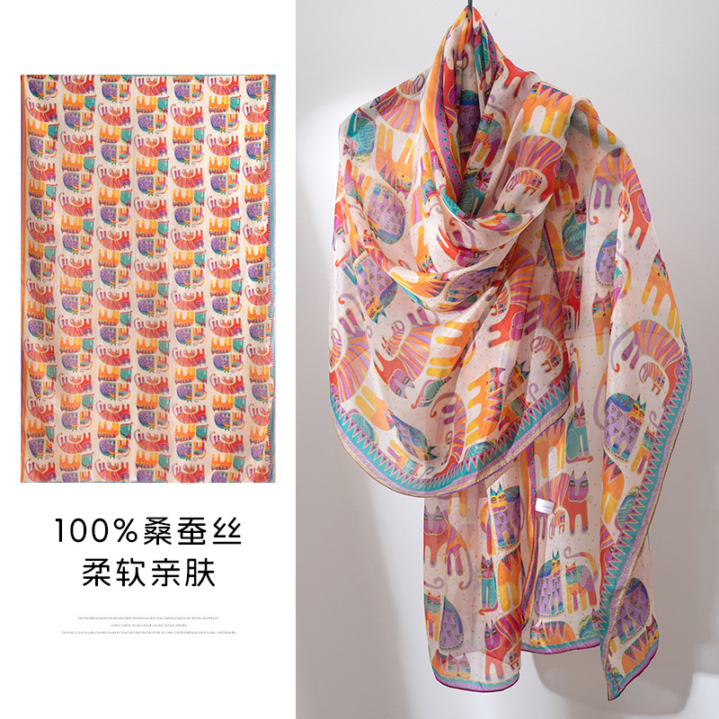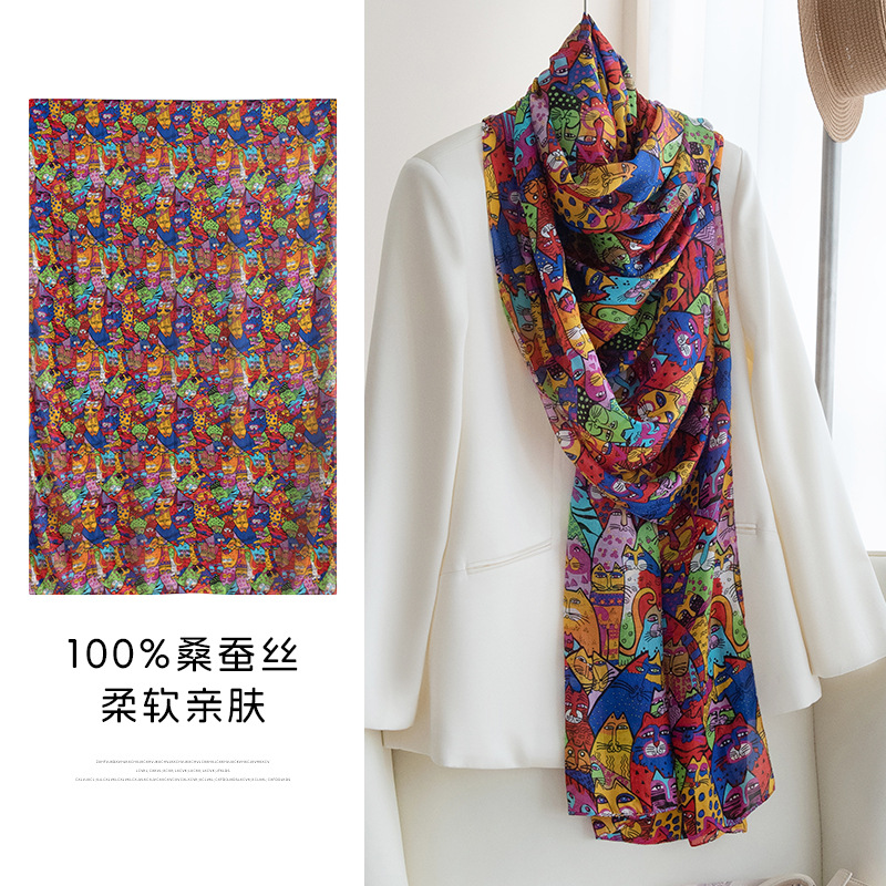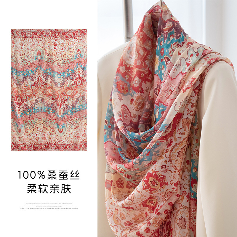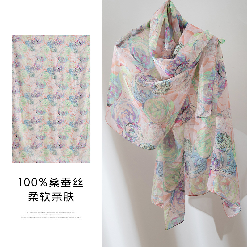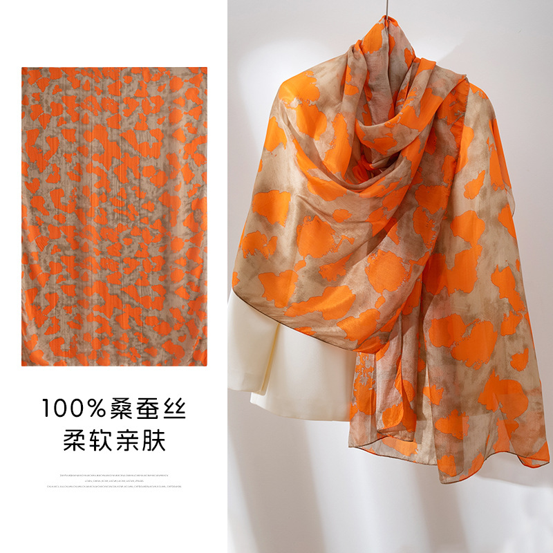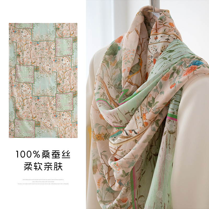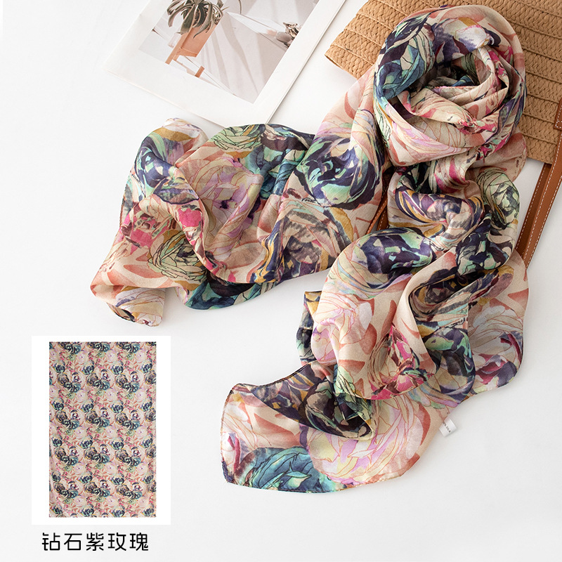 엄선된 2026년산 실크 스카프, 고급스러운 짙은 파란색 작은 꽃무늬 실크 스카프, 자외선 차단, 어머니께 선물