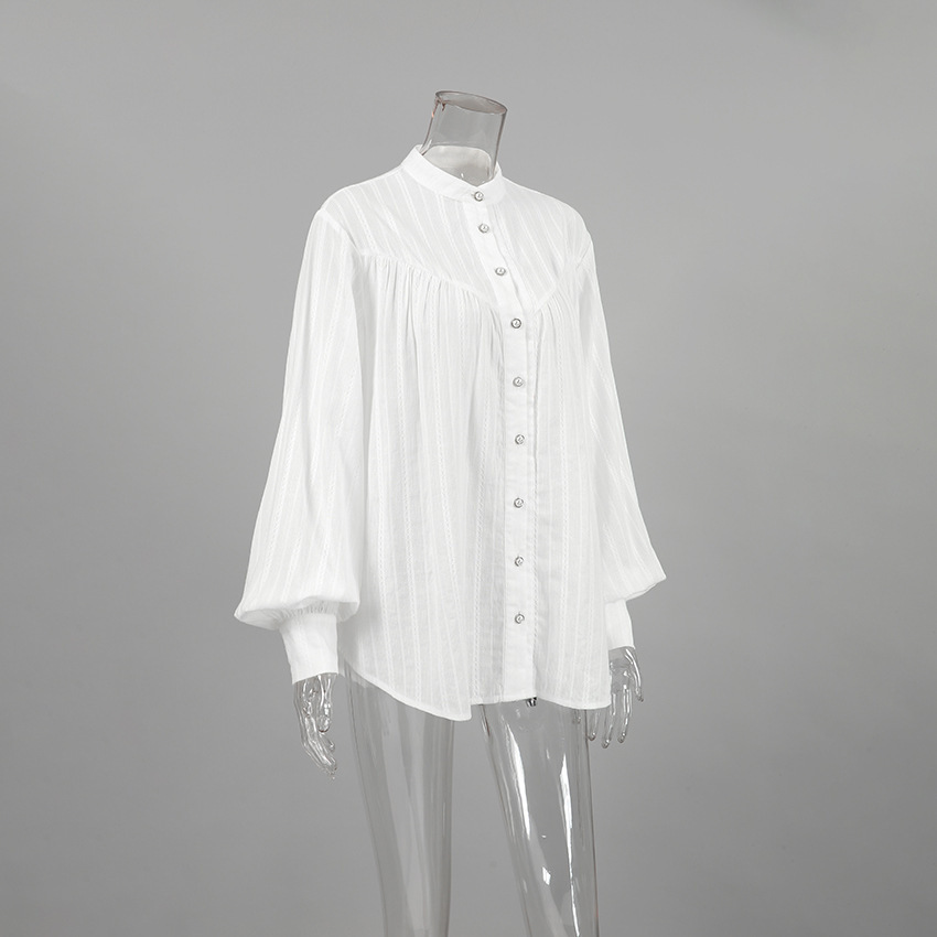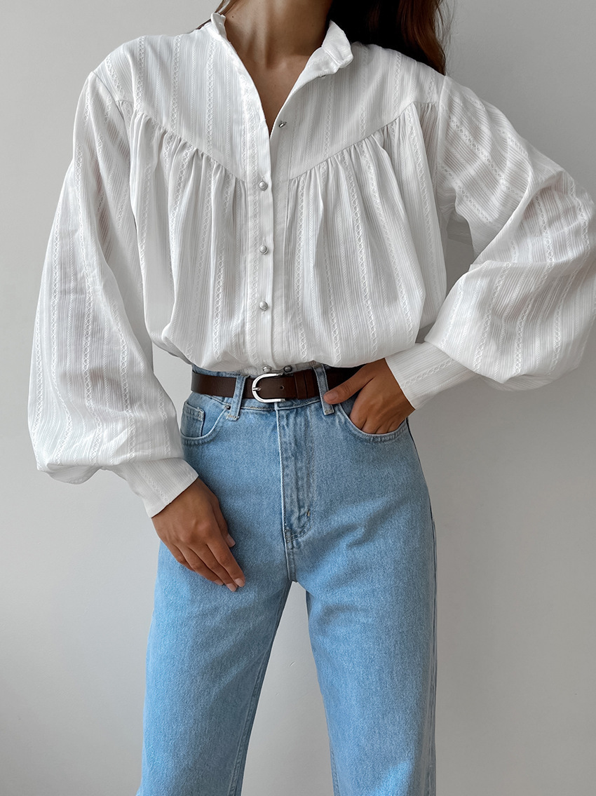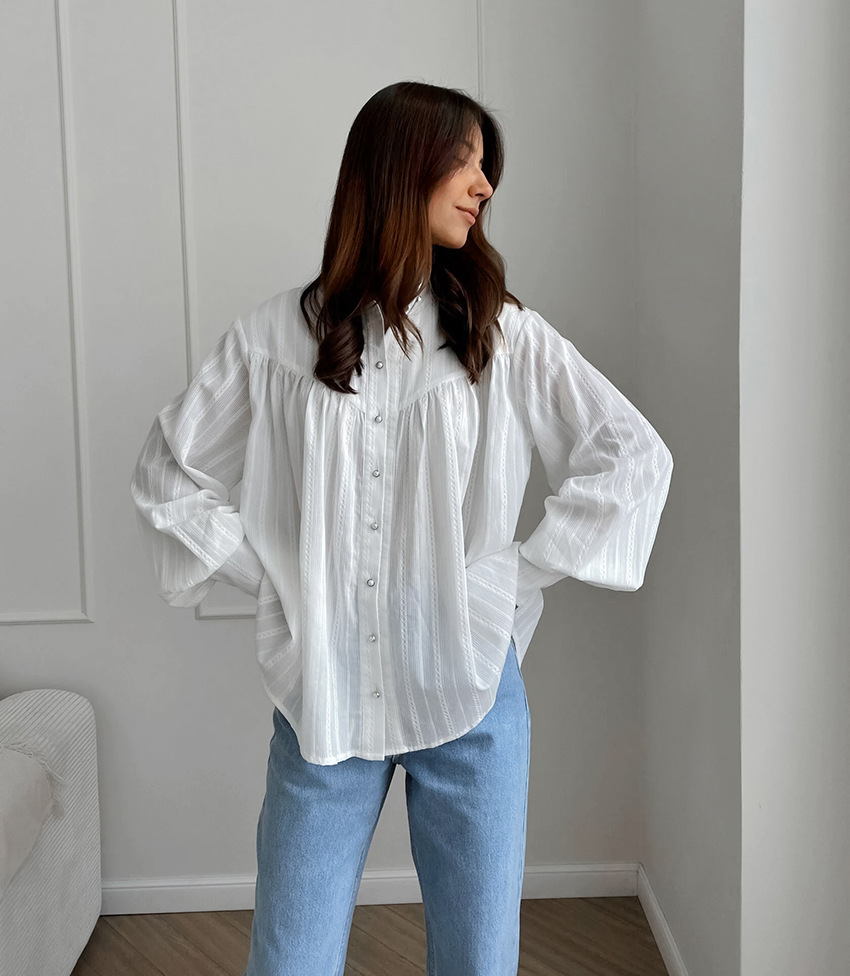 프랑스 스타일 화이트 칼라 블랙 에지 셔츠 여성의 2025 봄과 가을 긴 소매 우아한 유행 탑스토어 가기