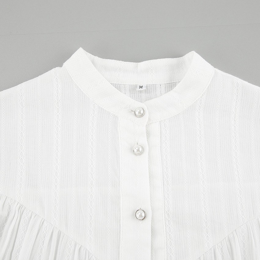 프랑스 스타일 화이트 칼라 블랙 에지 셔츠 여성의 2025 봄과 가을 긴 소매 우아한 유행 탑