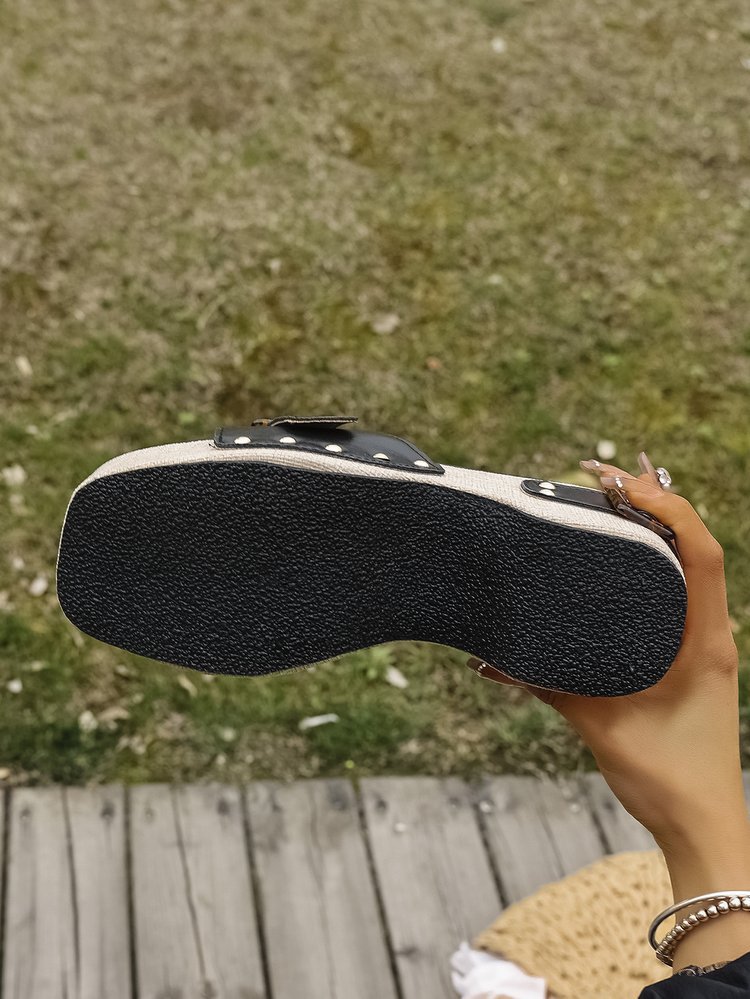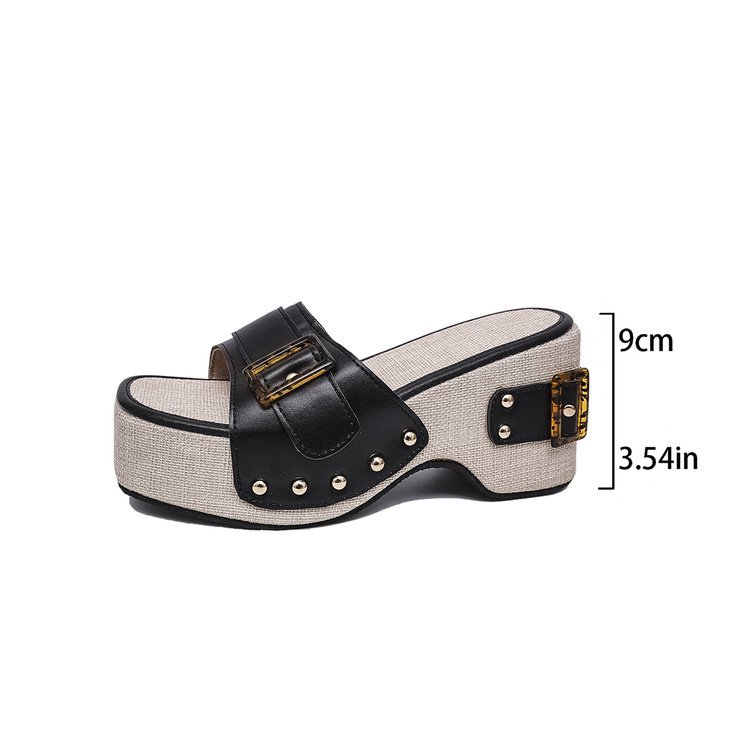 2025 여름 신작 플랫폼 원 스트랩 샌들 여성용 두꺼운 밑창 벨트 버클 캐주얼 슬리퍼 비치 슈즈 대형스토어 가기