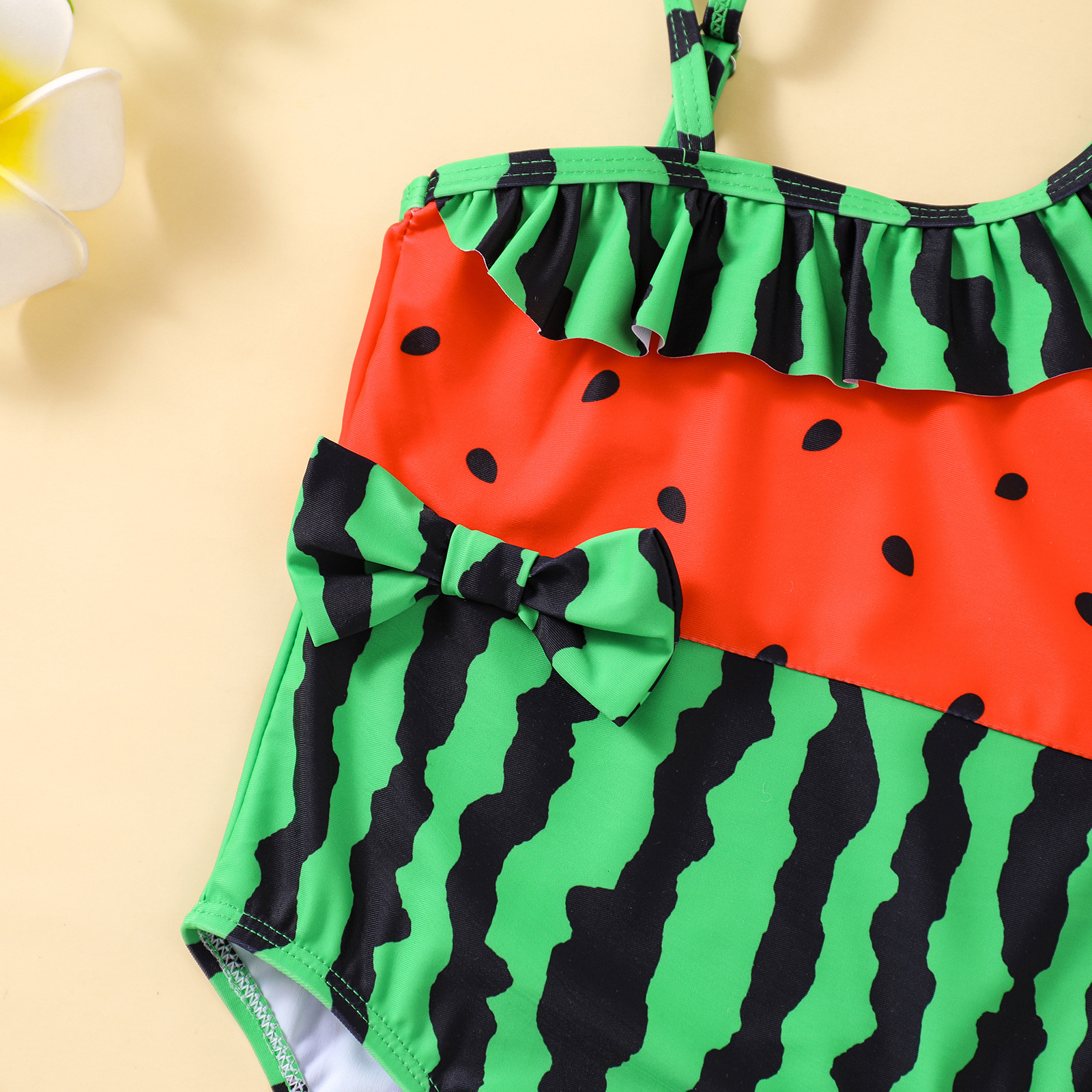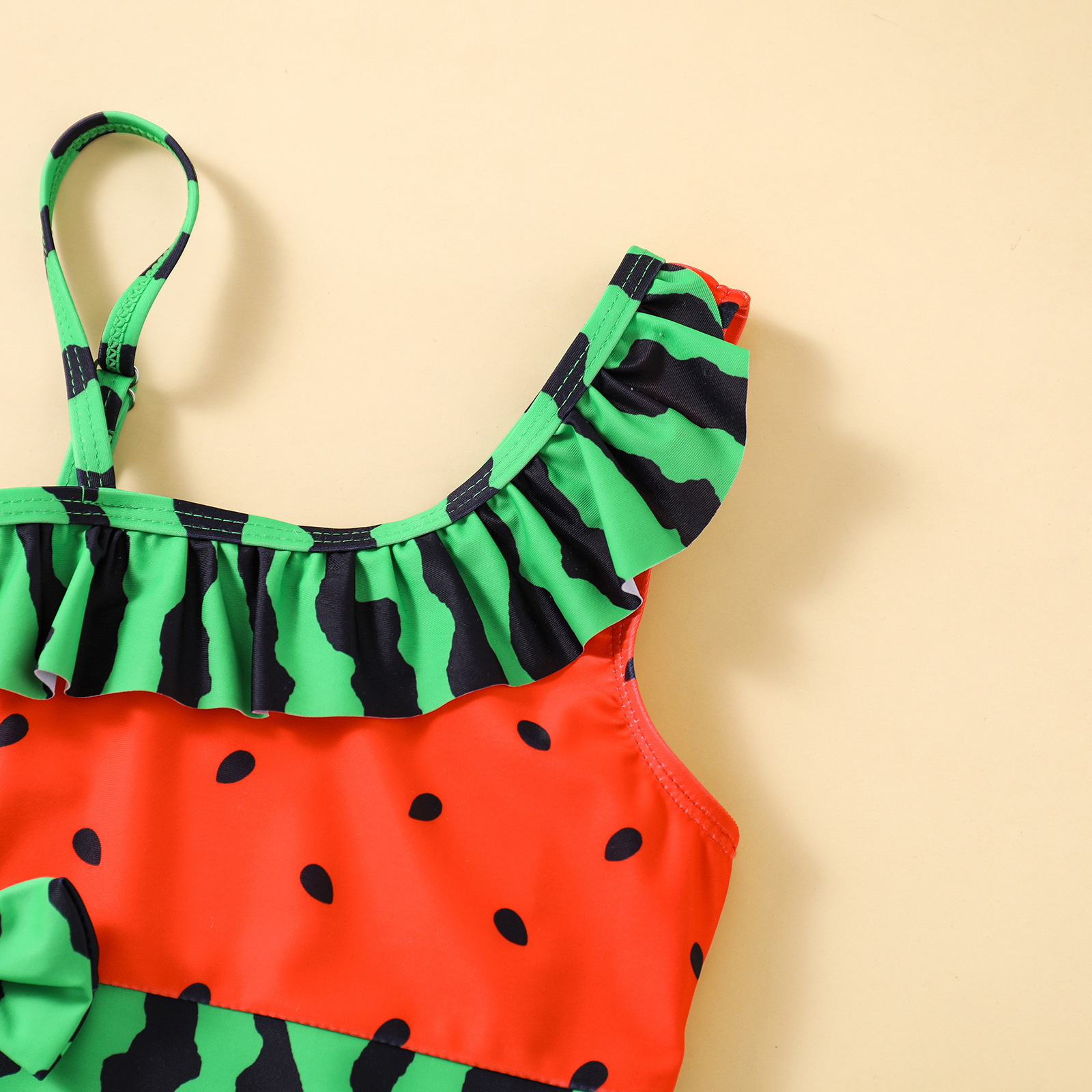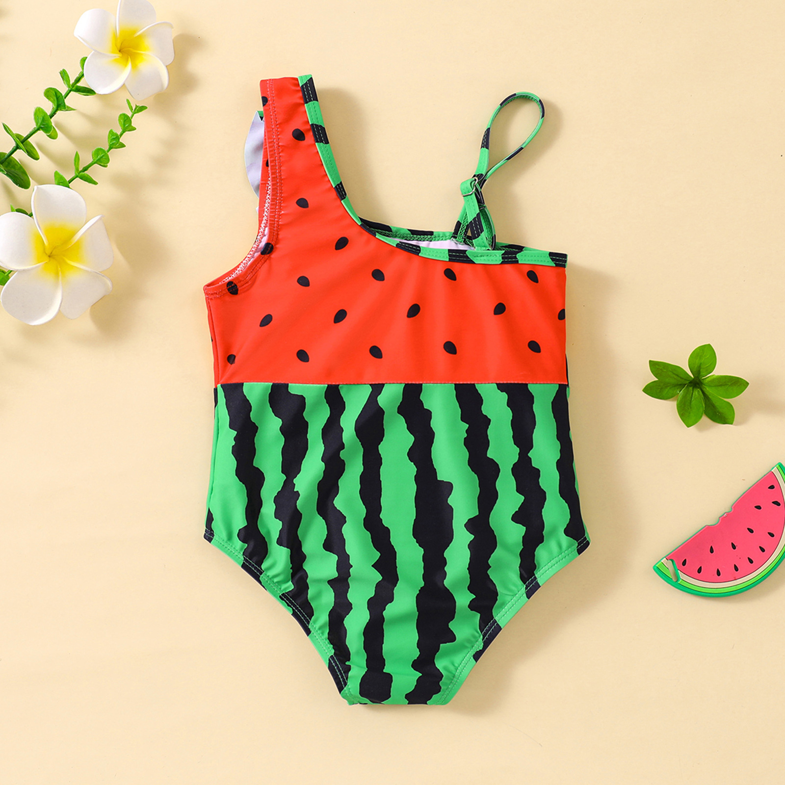 여아 수박 프린트 원 숄더 서스펜더 원피스 베이비 비치 스파 수영복
