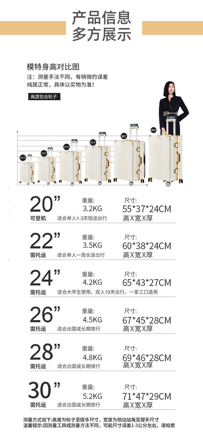튼튼하고 내구성이 뛰어난 여행가방, 대용량 여행가방, 알루미늄 프레임 비밀번호 상자, 범용 바퀴, 남녀 신입생, ryh스토어 가기