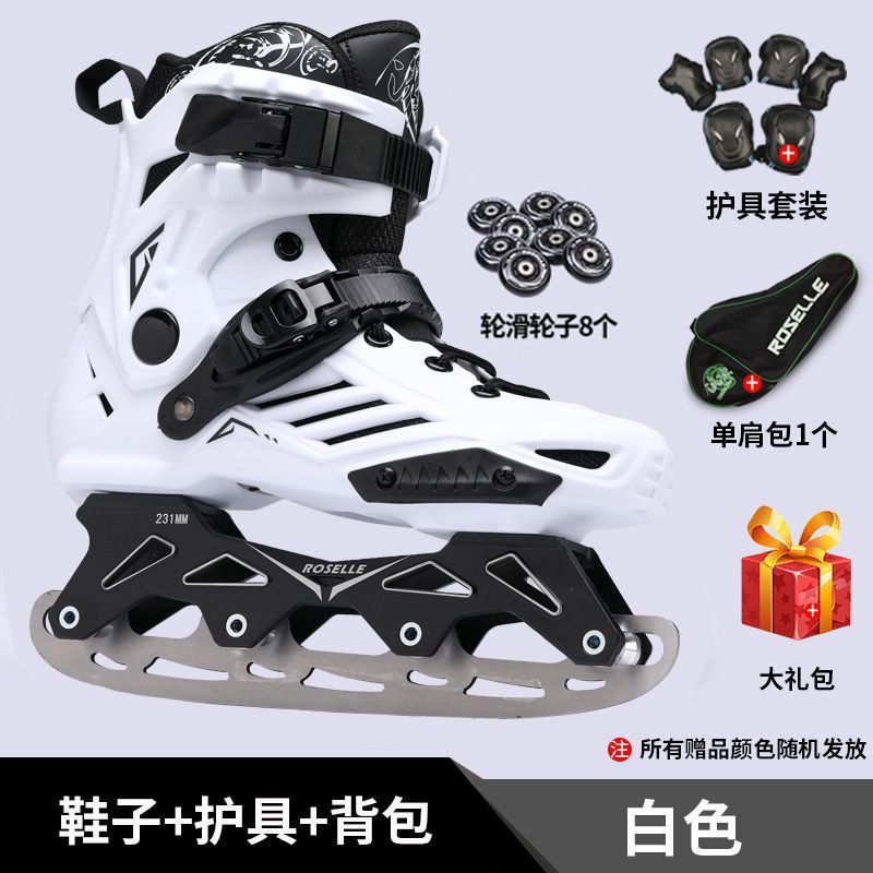 • 흰색 스케이트 + 배낭 + 보호 장비 + 선물 가방 + 바퀴 8개