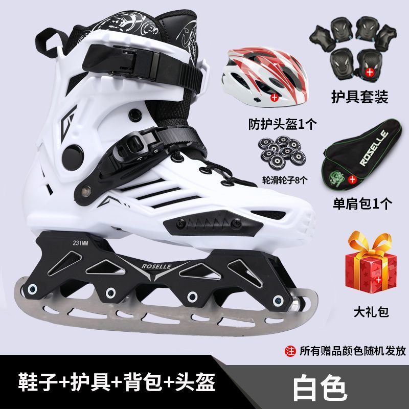 • 흰색 포지셔닝 스피드 스케이트 + 배낭 + 보호 장비 + 머리