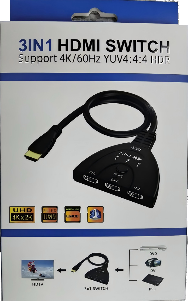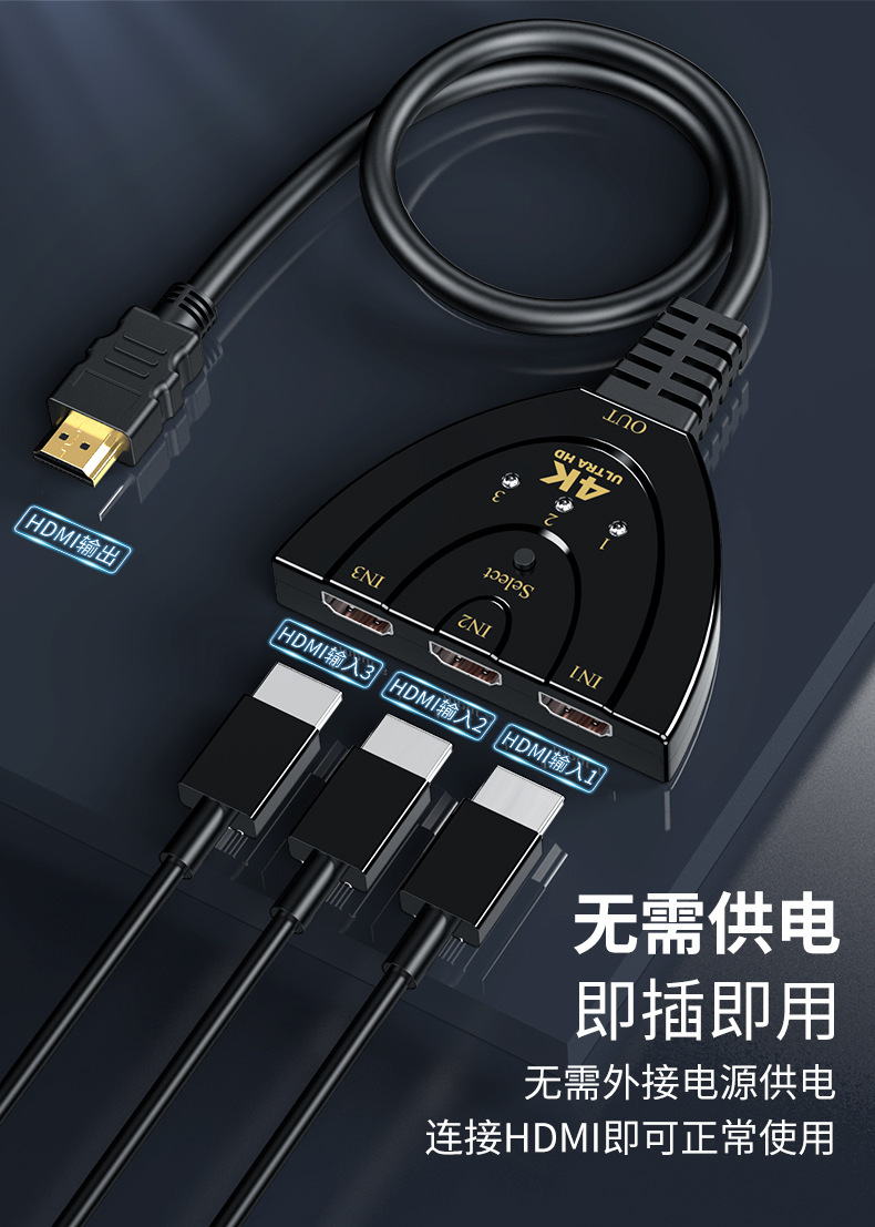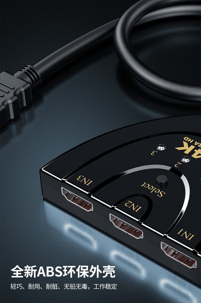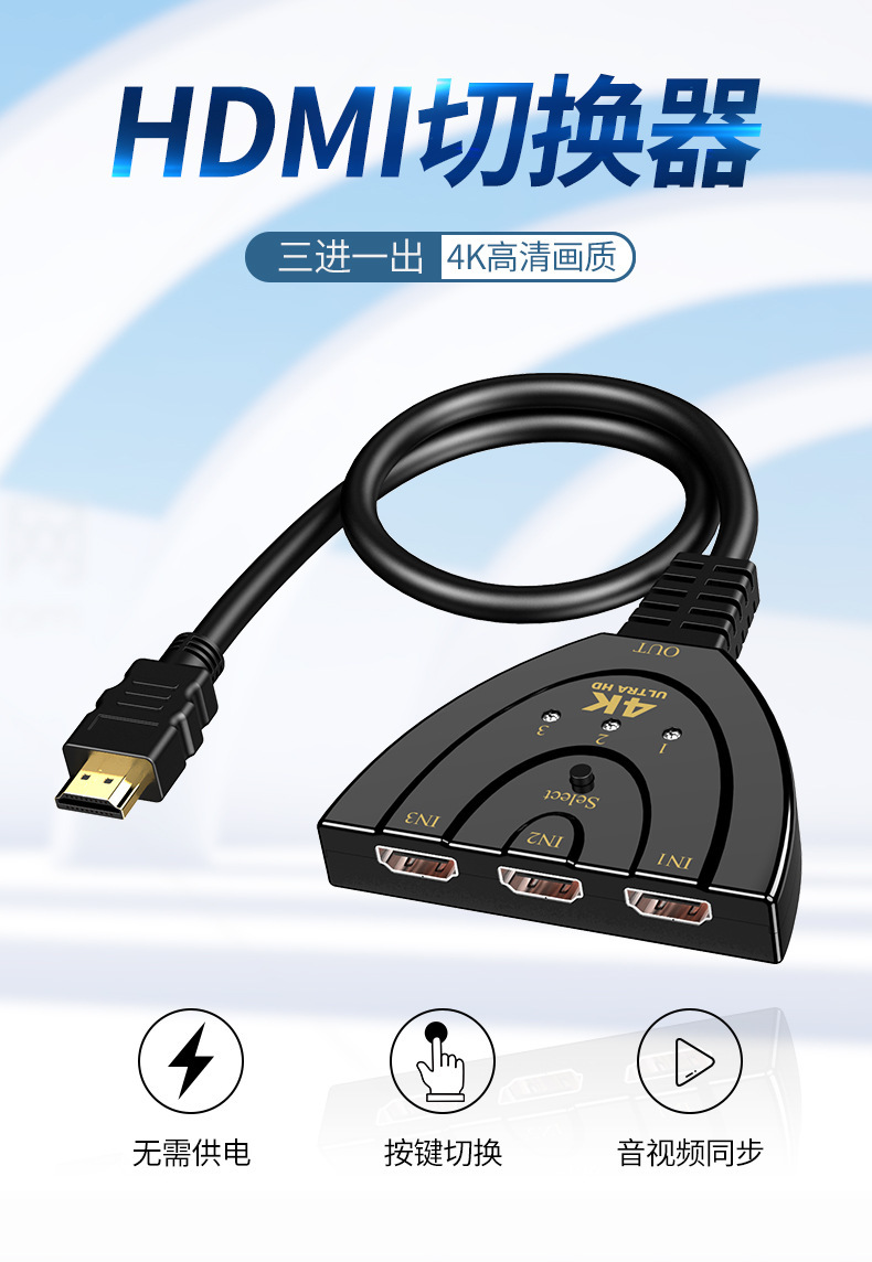 HDMI 3입력 1출력 4K 비디오 HDTV 스위처, 3입력 1출력 컨버터, 다중 인터페이스 4K스토어 가기