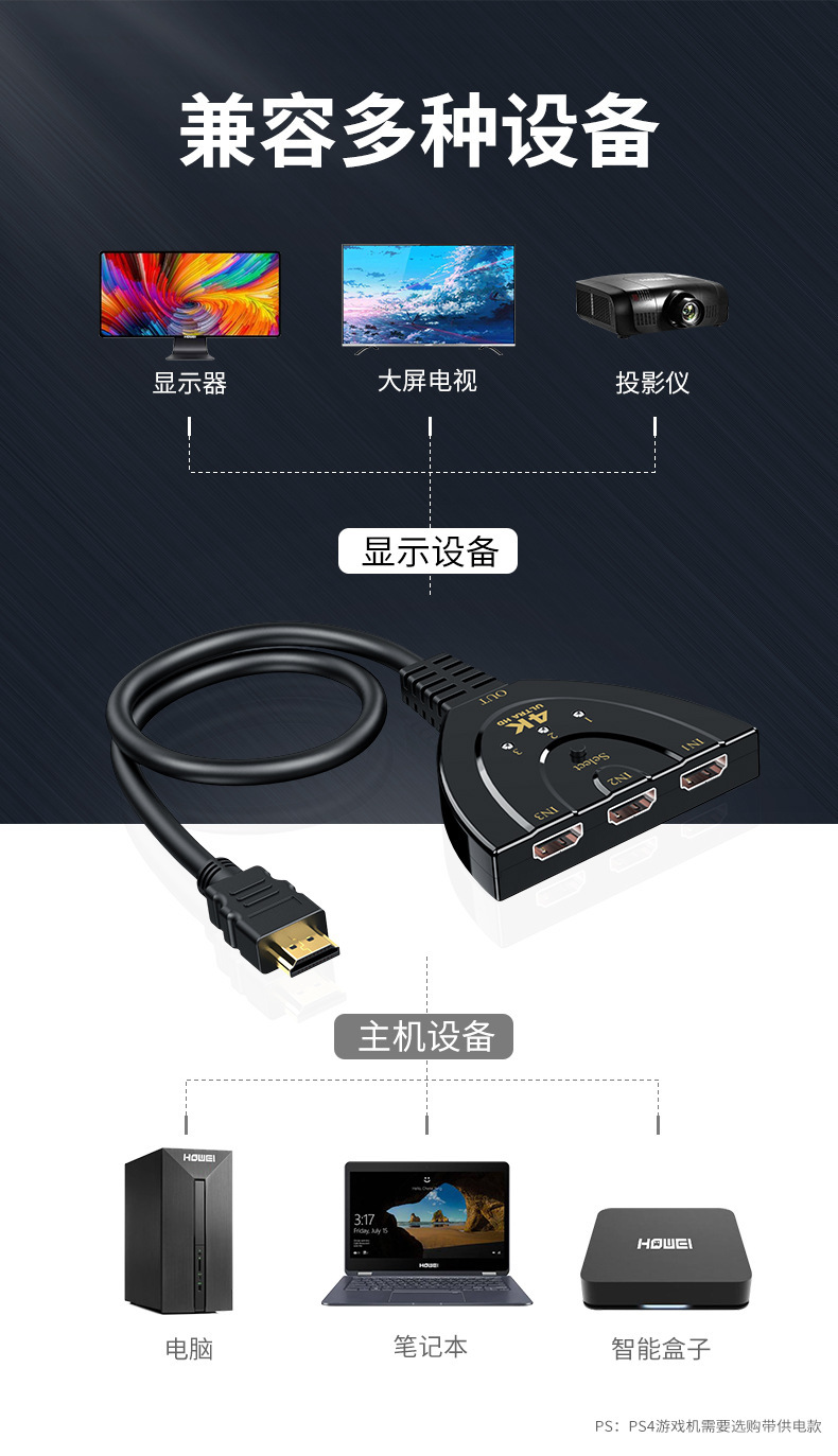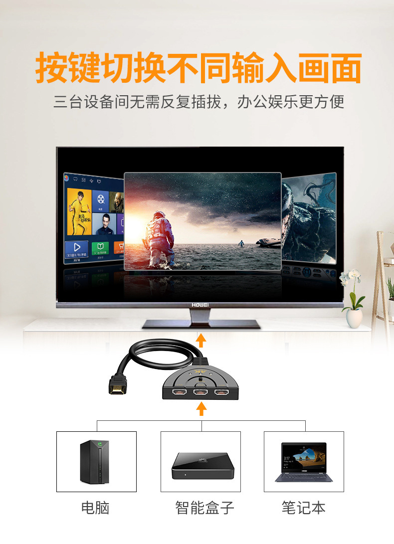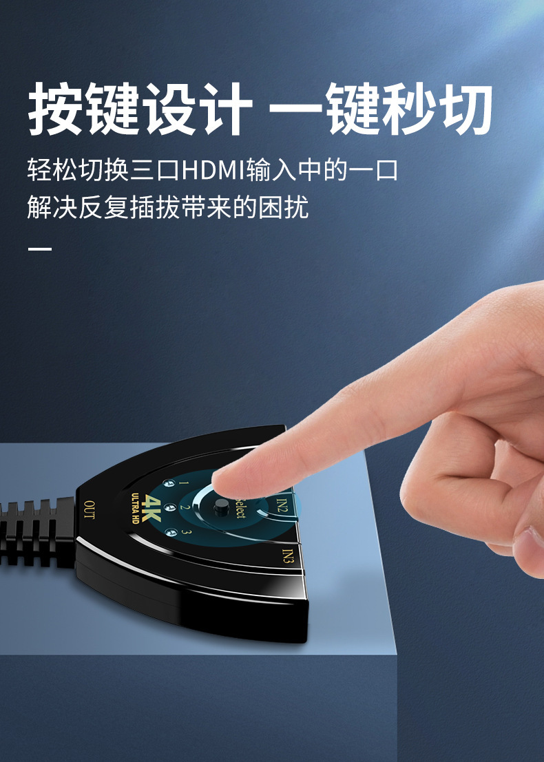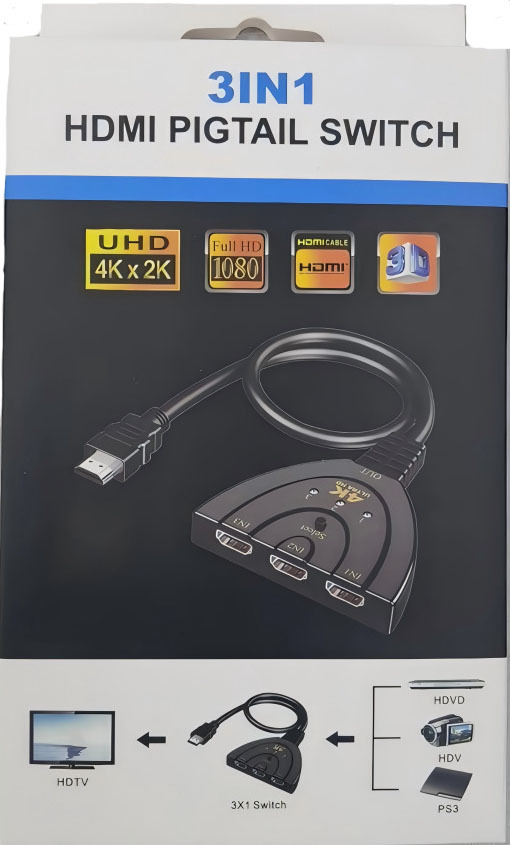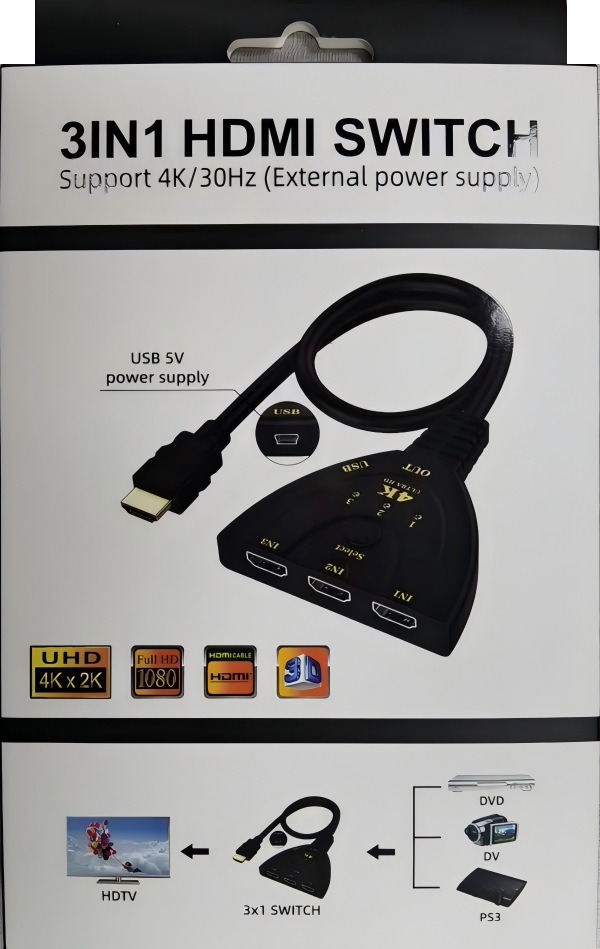 HDMI 3입력 1출력 4K 비디오 HDTV 스위처, 3입력 1출력 컨버터, 다중 인터페이스 4K스토어 가기