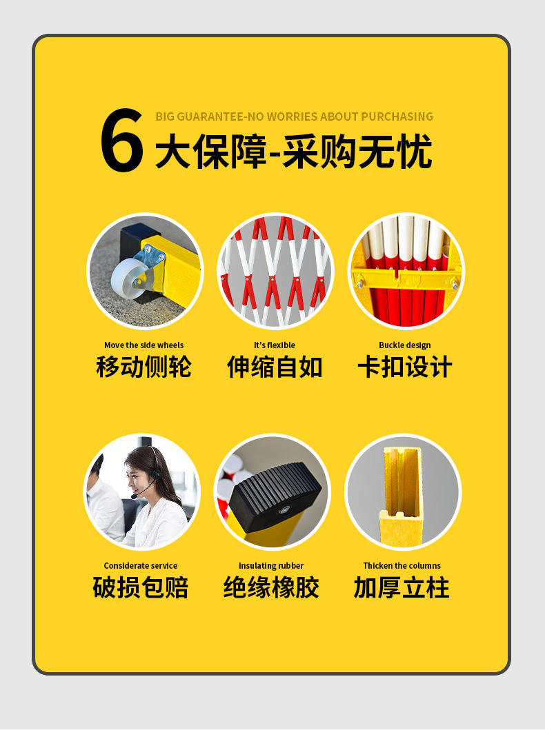 유리 섬유 절연 텔레스코픽 울타리 스테인레스 스틸 격리 울타리 이동식 안전 건설 전기 경고 가드 레일스토어 가기