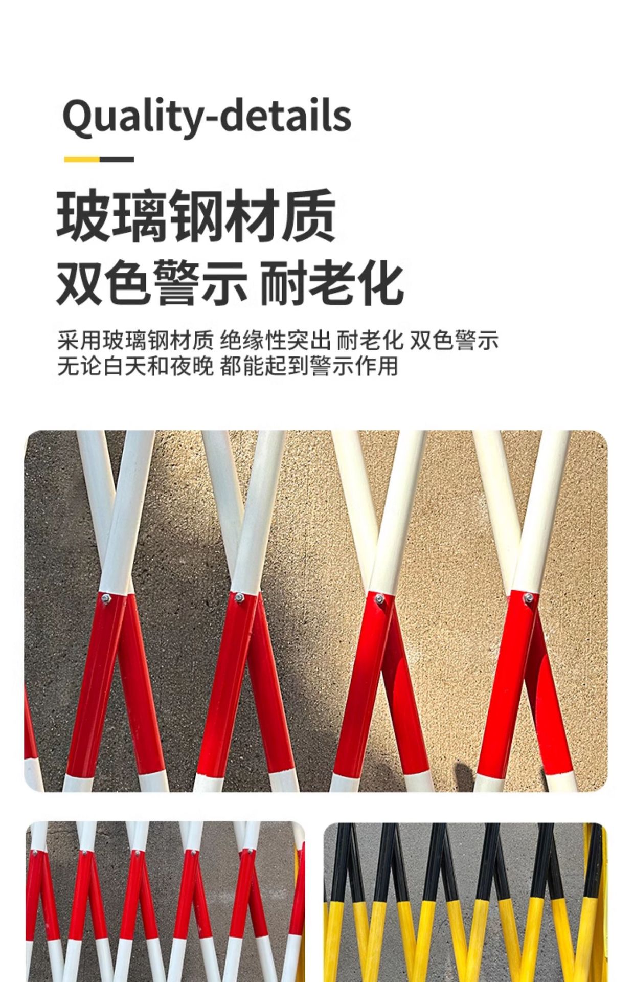 유리 섬유 절연 텔레스코픽 울타리 스테인레스 스틸 격리 울타리 이동식 안전 건설 전기 경고 가드 레일