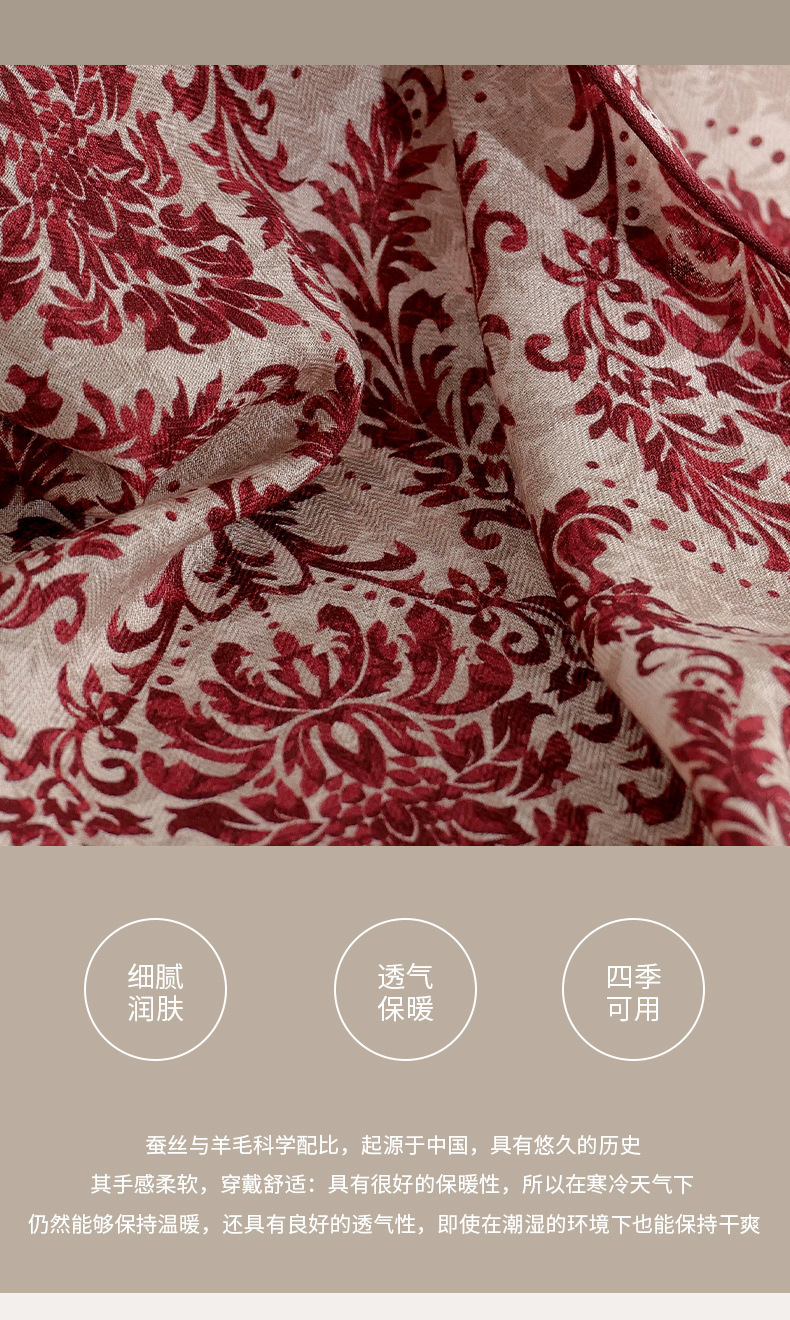 "마스터 클래식 아트" 실크와 울 스카프 여성 가을 겨울 다기능 실크 울 스퀘어 스카프 목도리