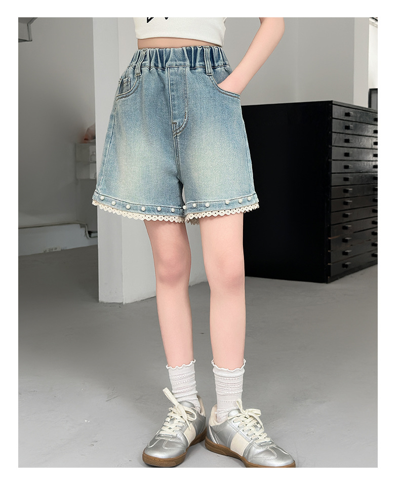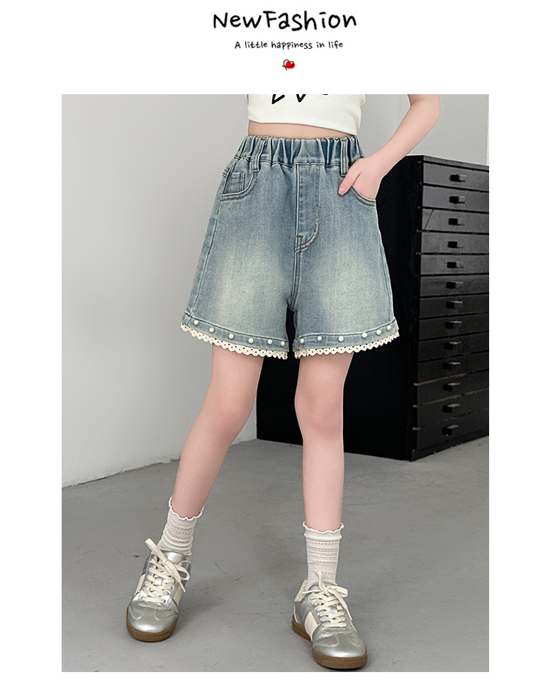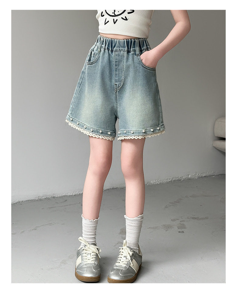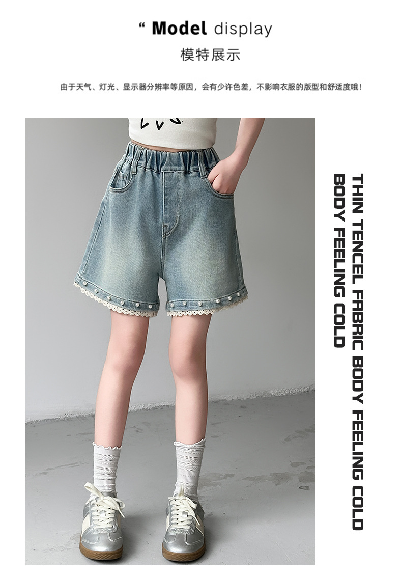 여아 여름 데님 반바지, 얇은, 중대형, 여아 패셔너블 캐주얼 중간 바지, 아동용 신상 다용도 트렌디 팬츠