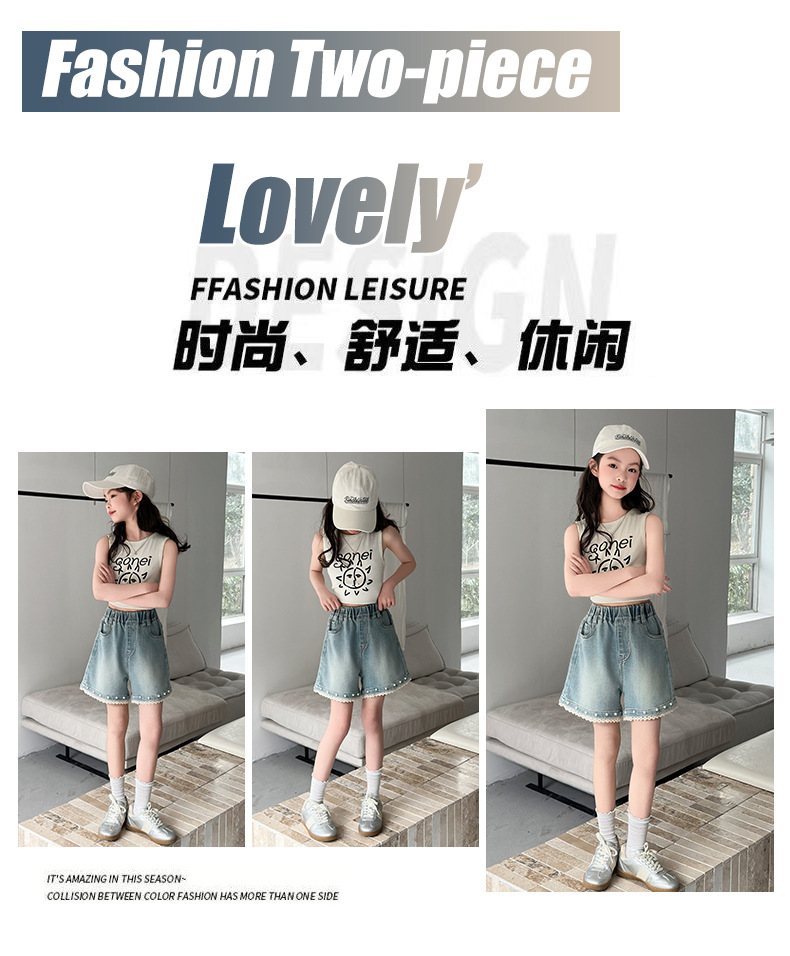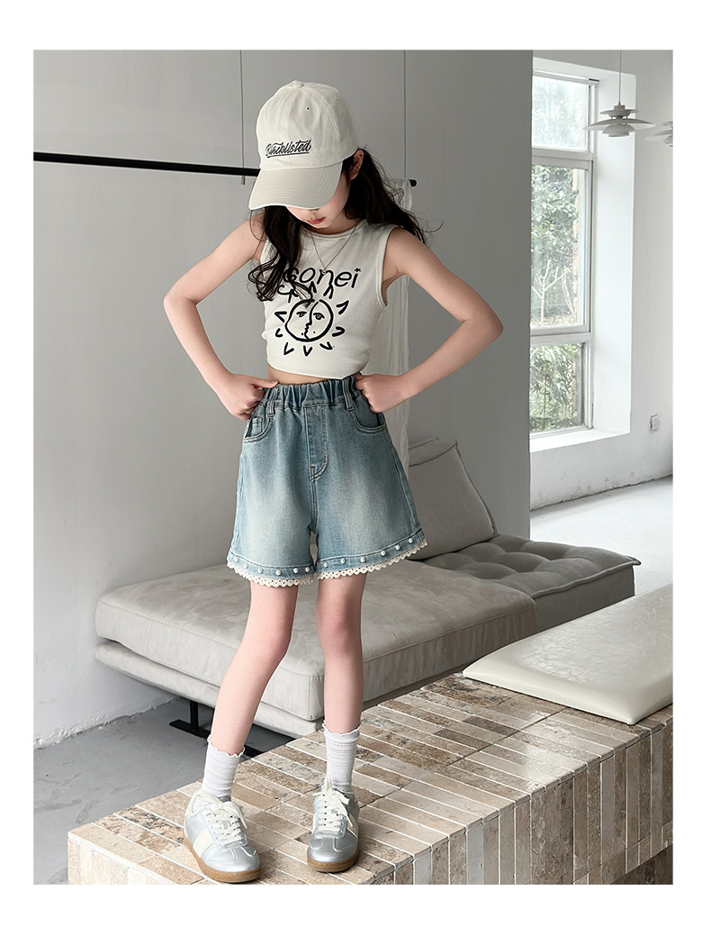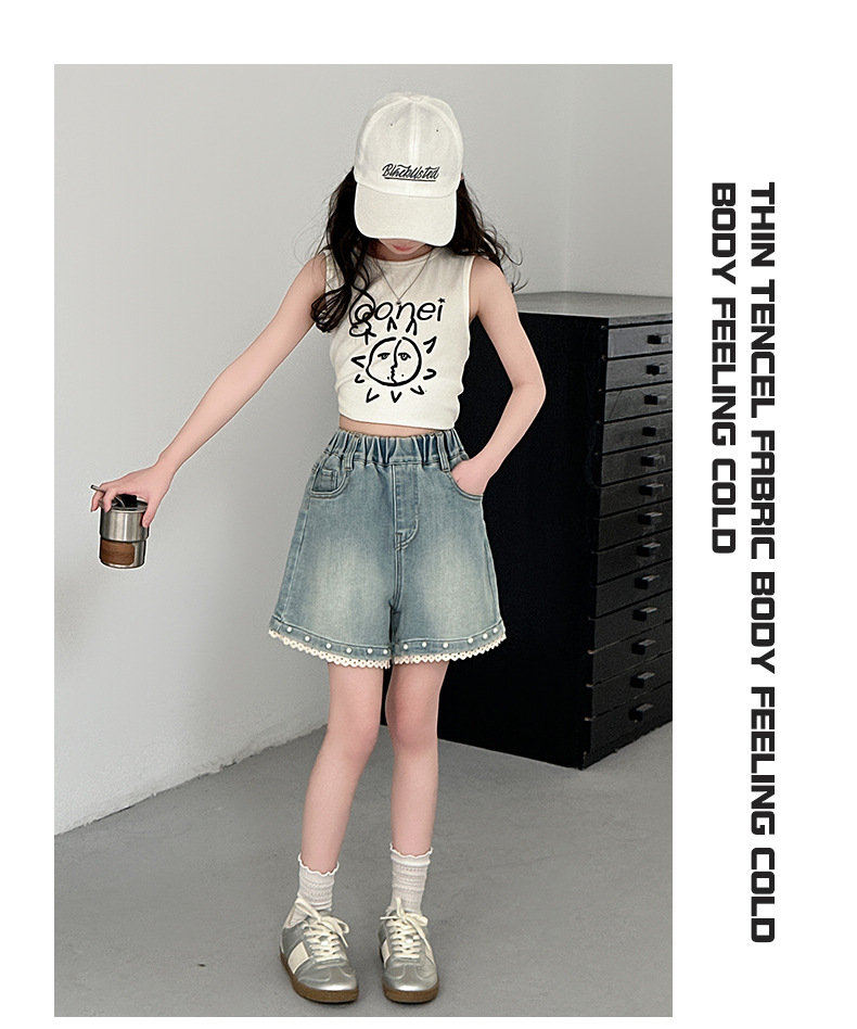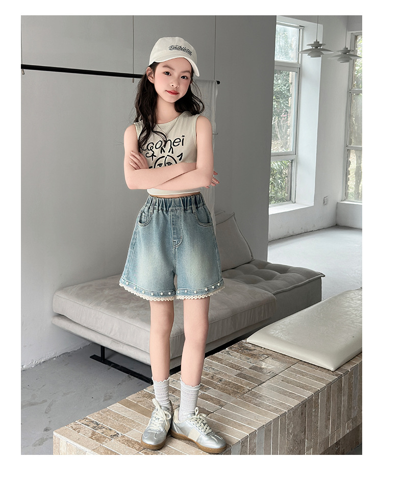 여아 여름 데님 반바지, 얇은, 중대형, 여아 패셔너블 캐주얼 중간 바지, 아동용 신상 다용도 트렌디 팬츠