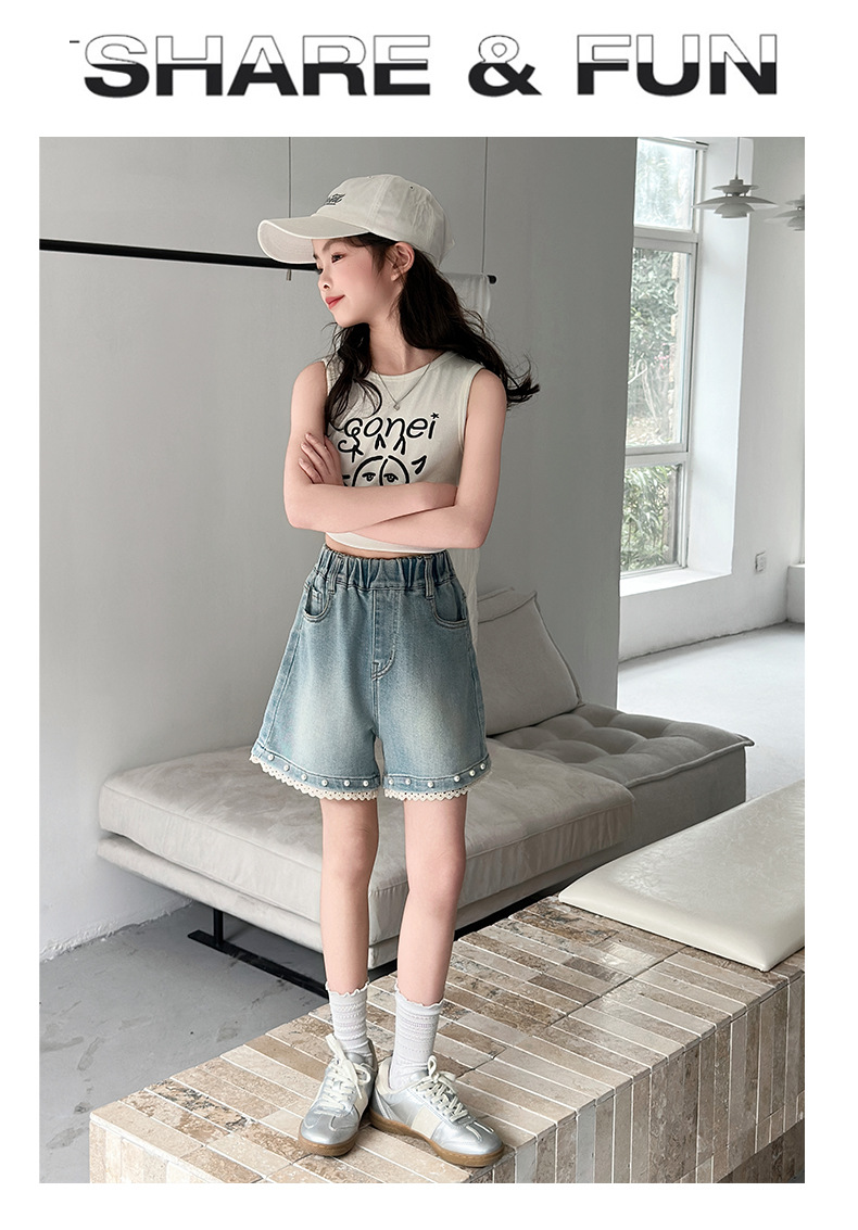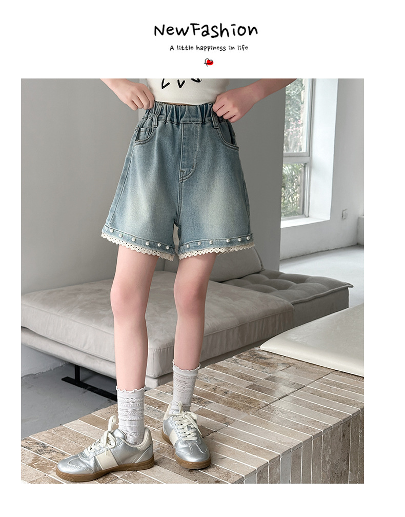 여아 여름 데님 반바지, 얇은, 중대형, 여아 패셔너블 캐주얼 중간 바지, 아동용 신상 다용도 트렌디 팬츠스토어 가기