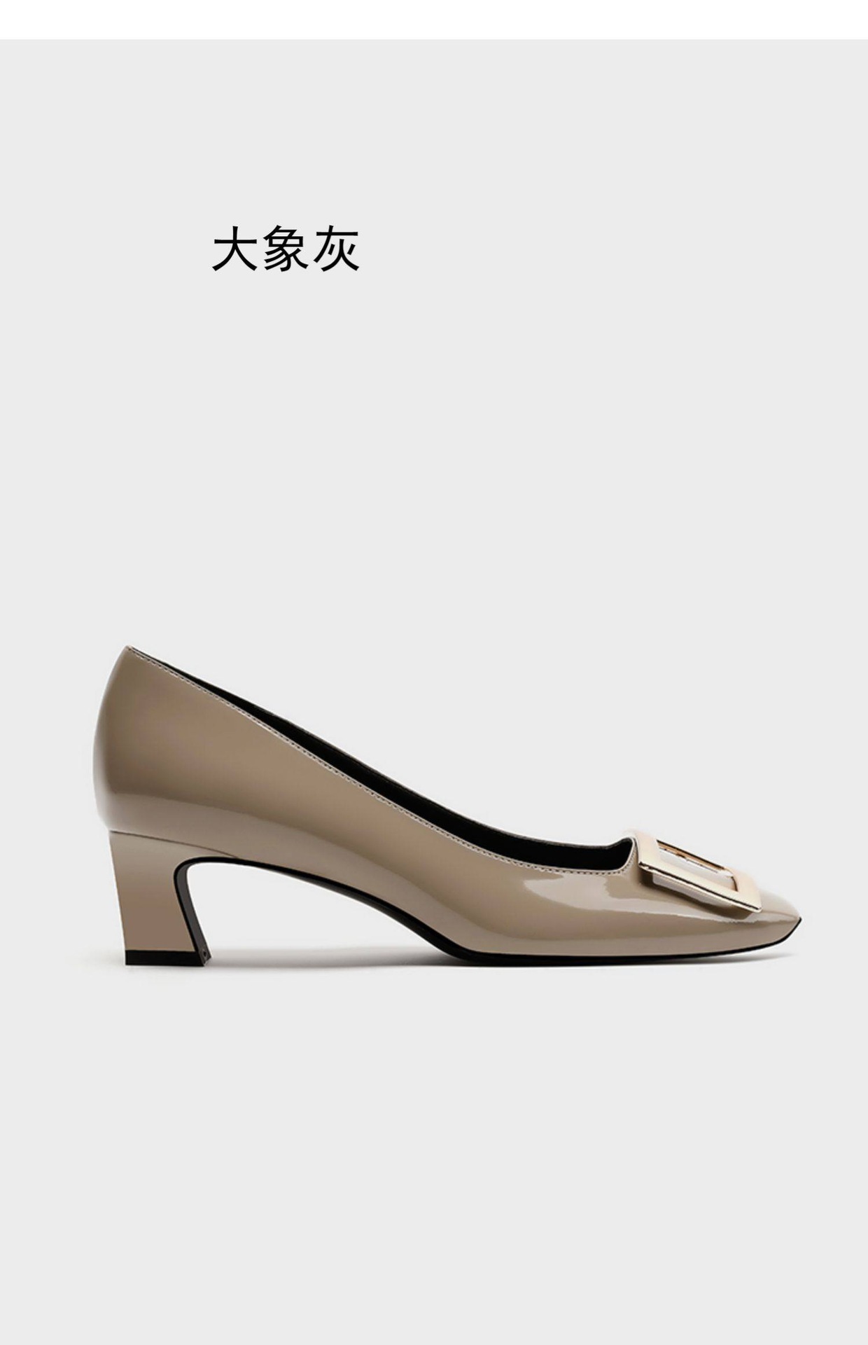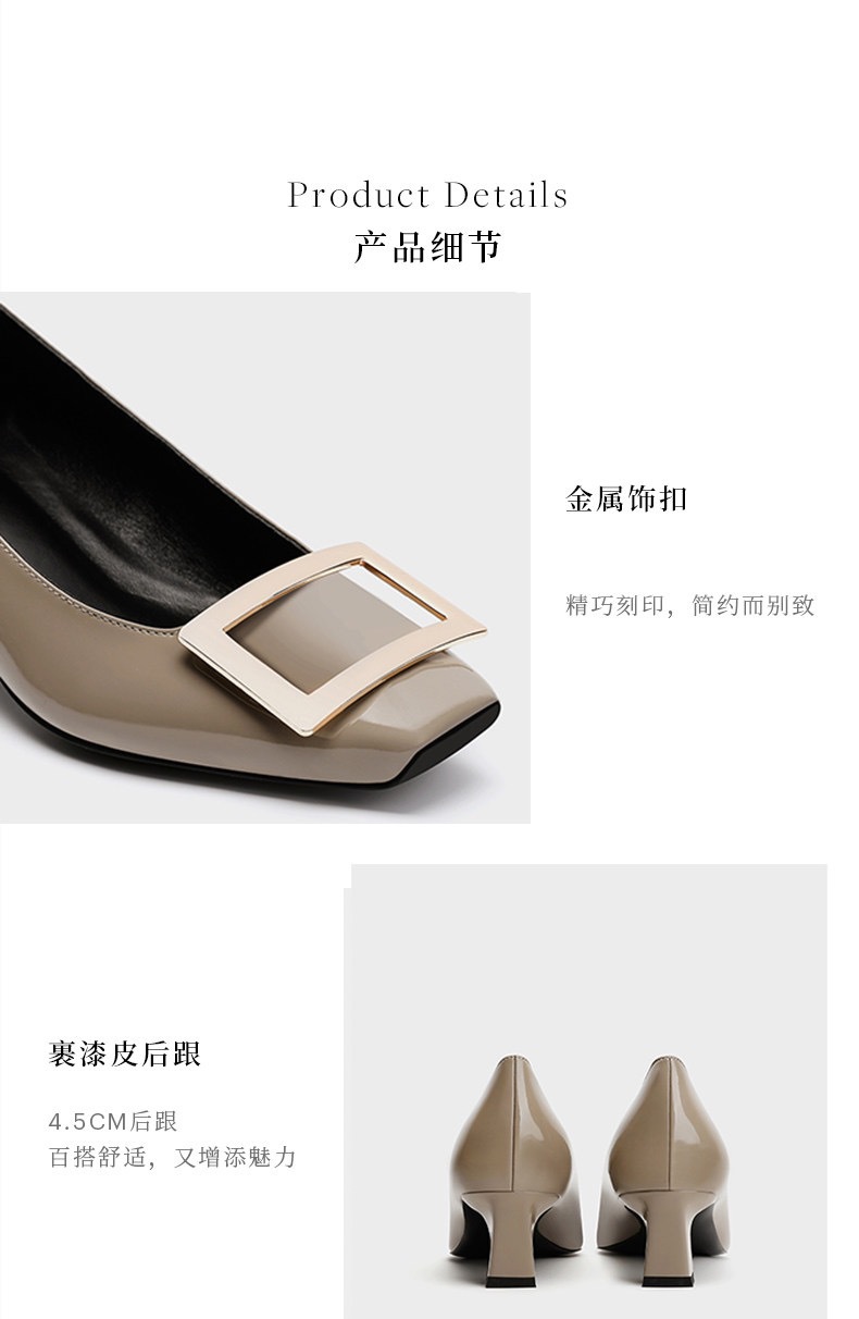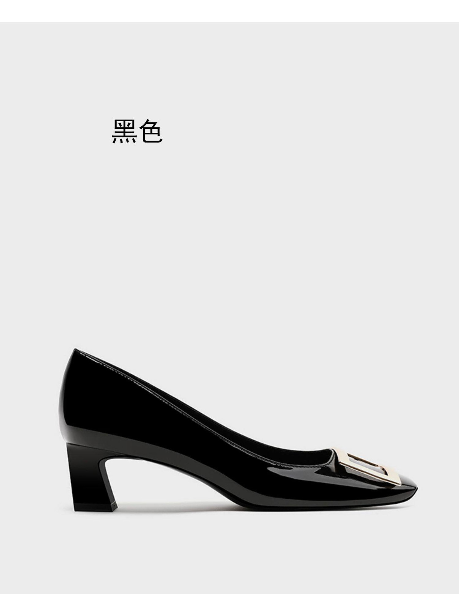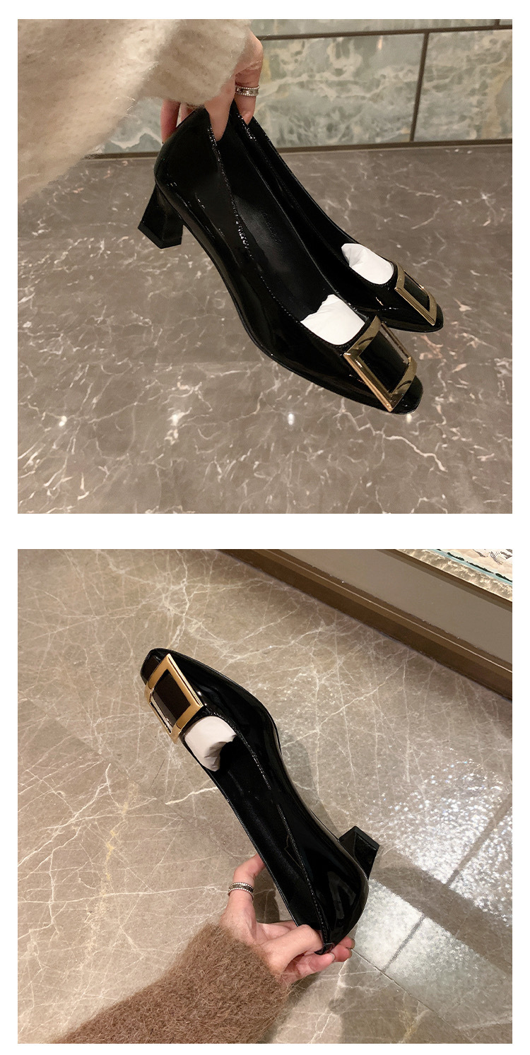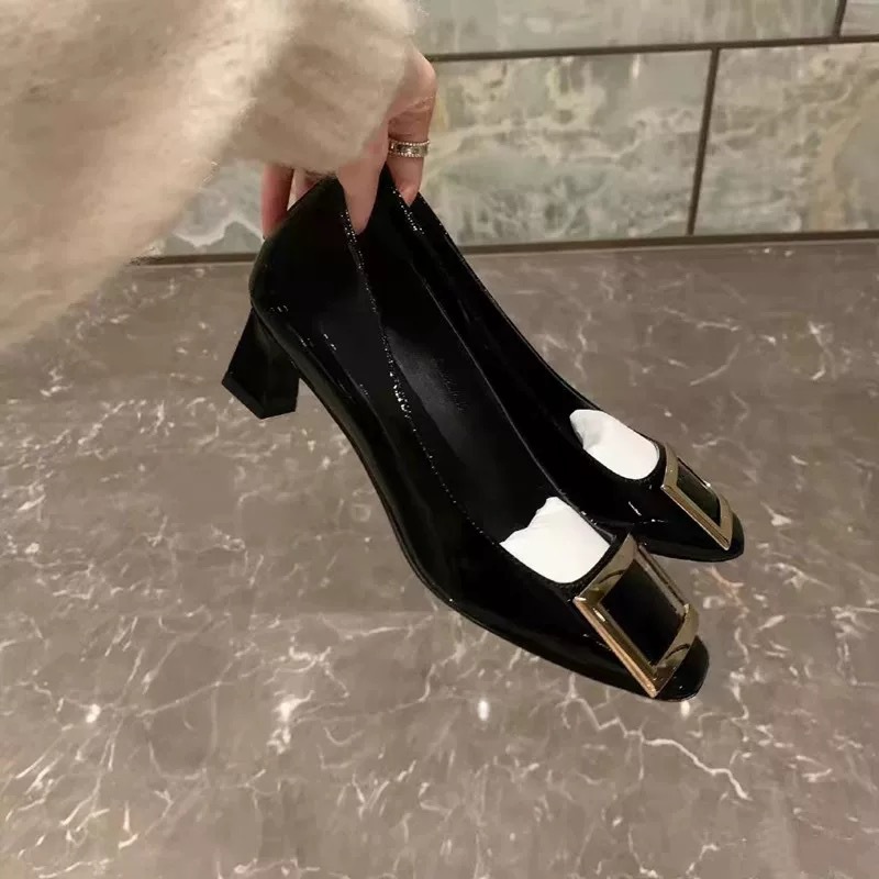 봄 88168 새로운 인터넷 축하 같은 스타일 rv 특허 가죽 스퀘어 버튼 싱글 신발 두꺼운 힐 미드 힐 스퀘어 헤드 얕은 여성 신발 통근
