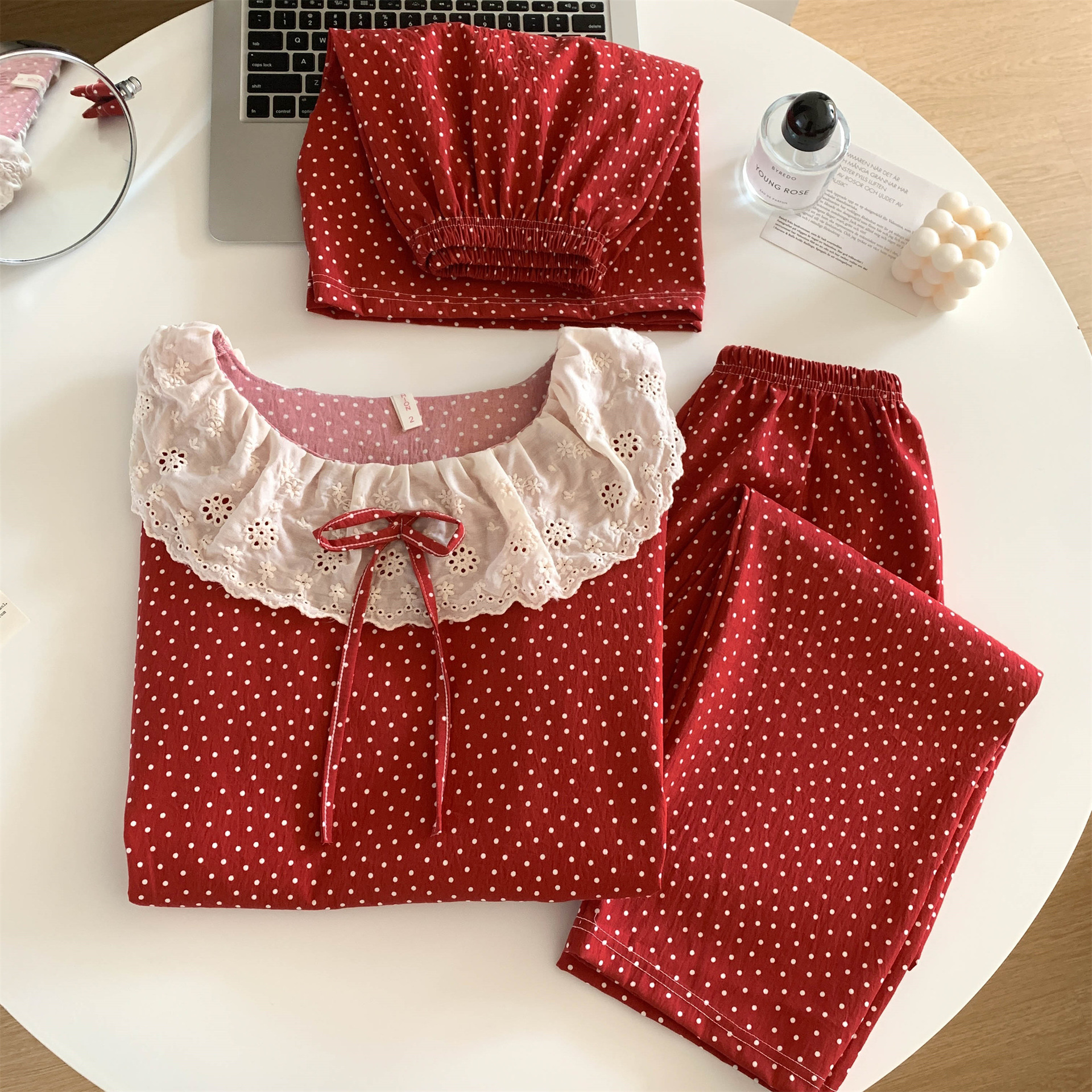 • 303 레드 도트무늬 [반팔+반바지+바지]