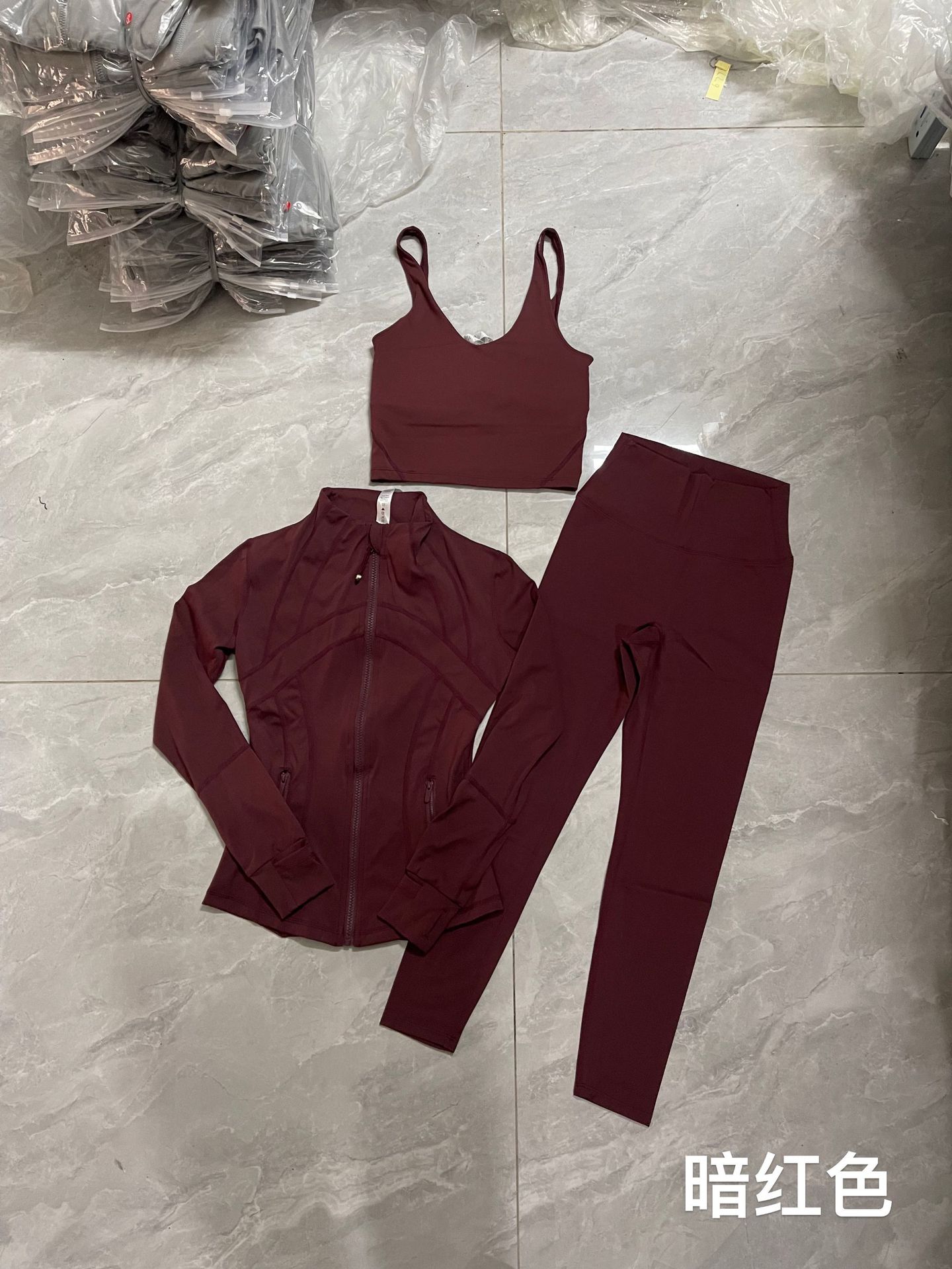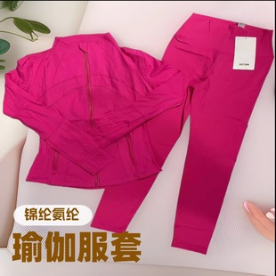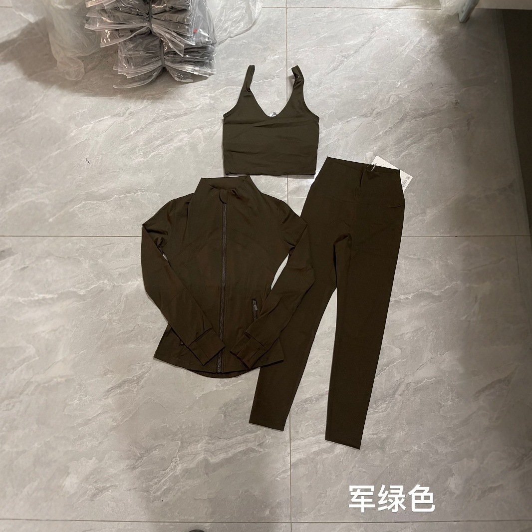요가 LULU 3종 세트 요가복 자켓 + U자형 탱크탑 + 9부 바지 세트 통기성 여성용 빠른 건조스토어 가기
