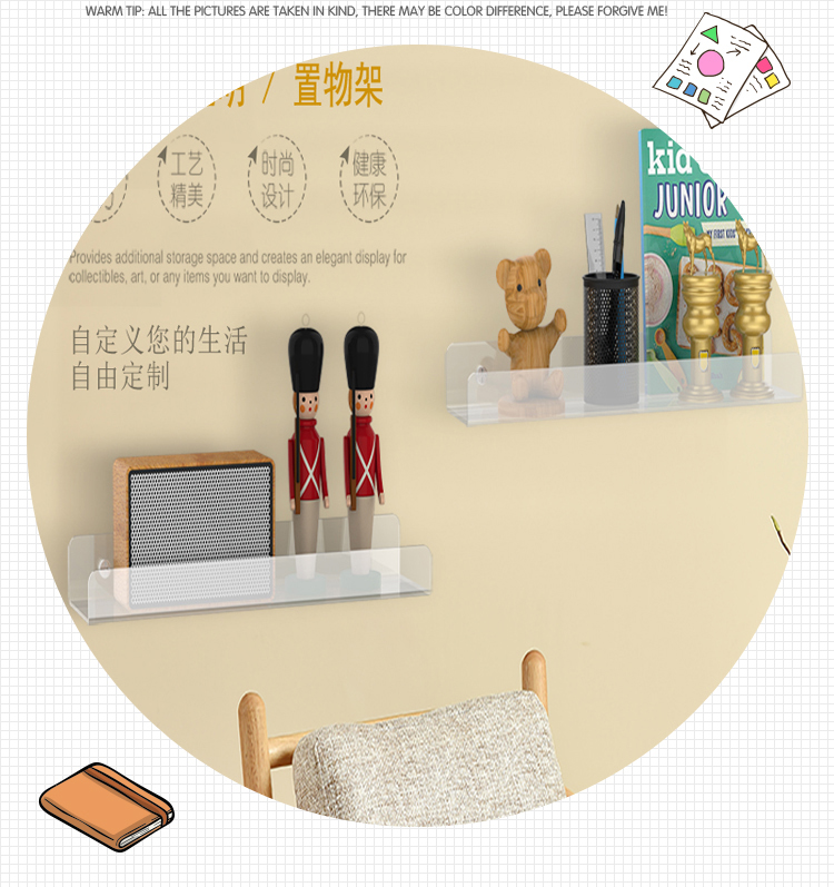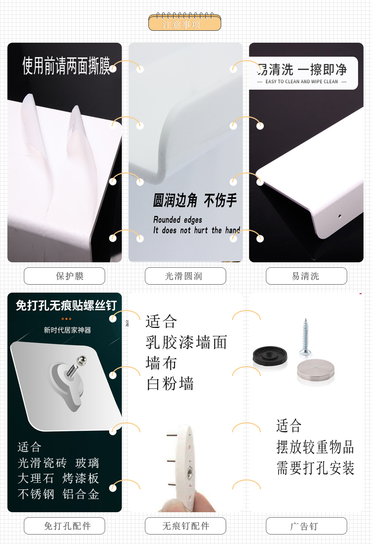 주방 벽에 구멍을 뚫을 수 있는 아크릴 칸막이, 벽걸이형 욕실 수납 선반, 욕실용 일자형 보드 없음스토어 가기