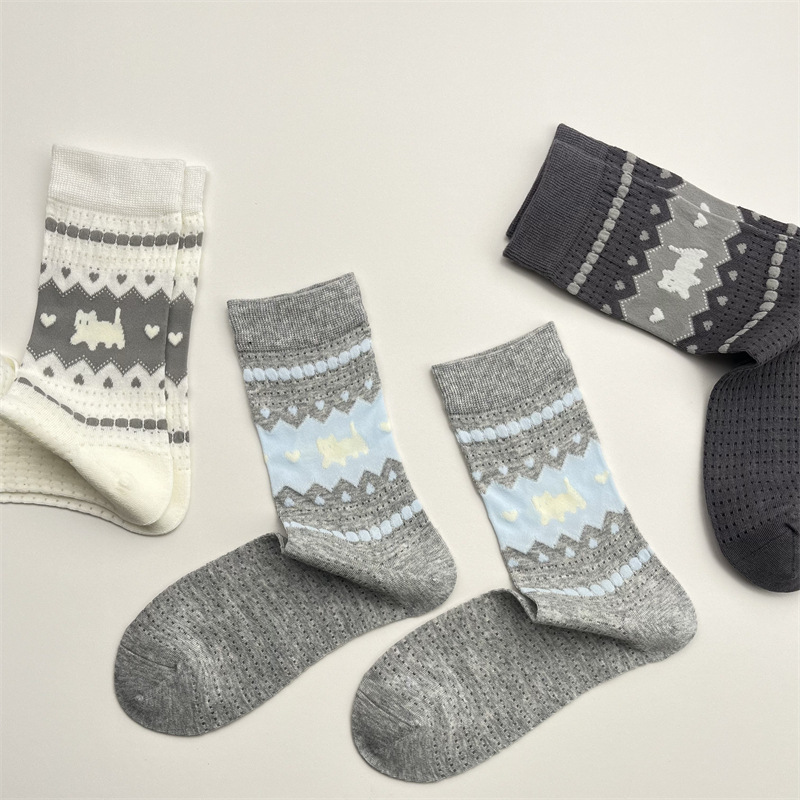 봄과 여름 새로운 스타일의 공정한 섬 통기성 메쉬 튜브 양말 일본 귀여운 대비 만화 더미 양말 유행면 양말스토어 가기