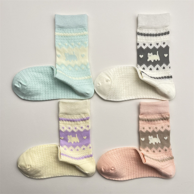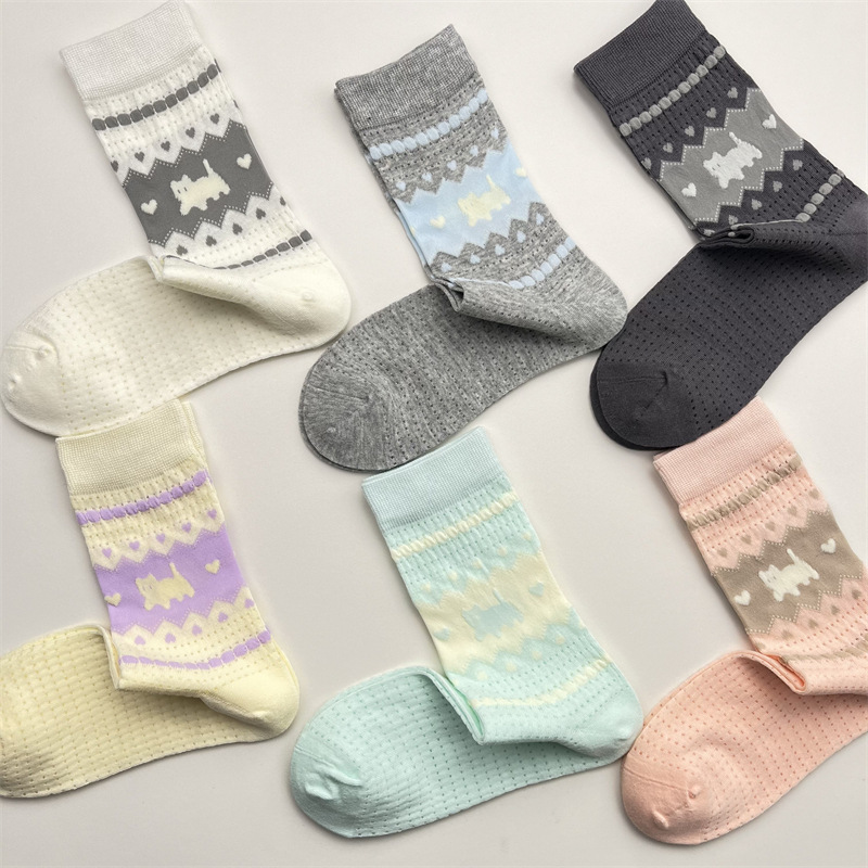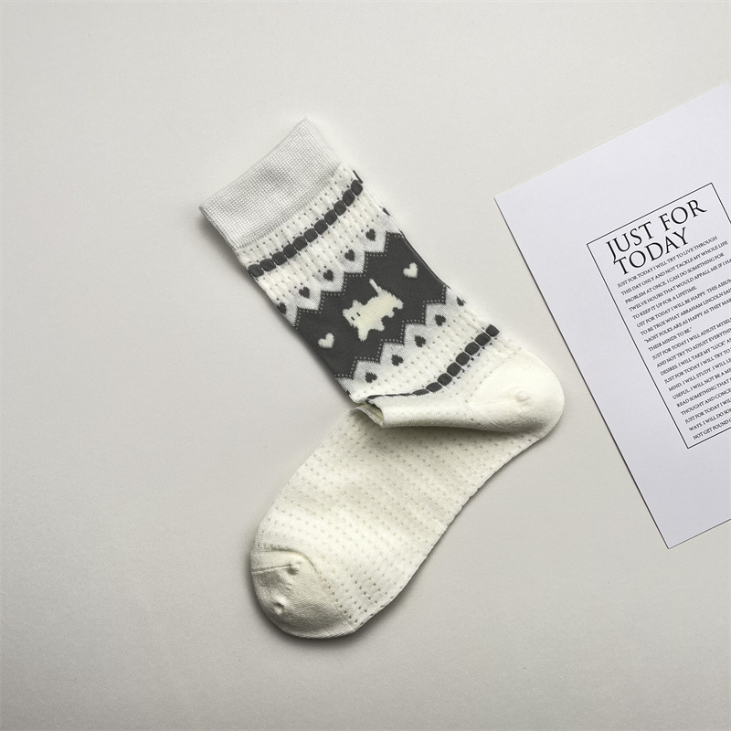 봄과 여름 새로운 스타일의 공정한 섬 통기성 메쉬 튜브 양말 일본 귀여운 대비 만화 더미 양말 유행면 양말