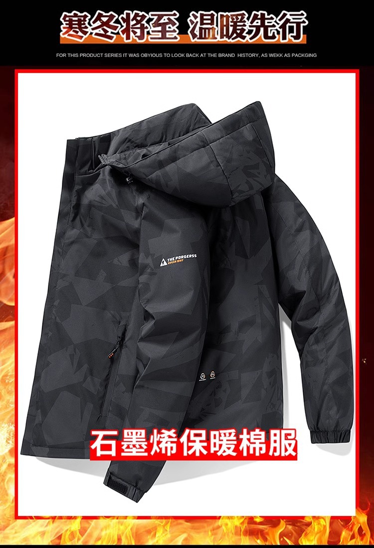 겨울 두꺼운 작업복 방풍 및 방수 재킷 등산 위장 재킷 재킷 남성과 여성을위한 그래핀 따뜻한 면 재킷