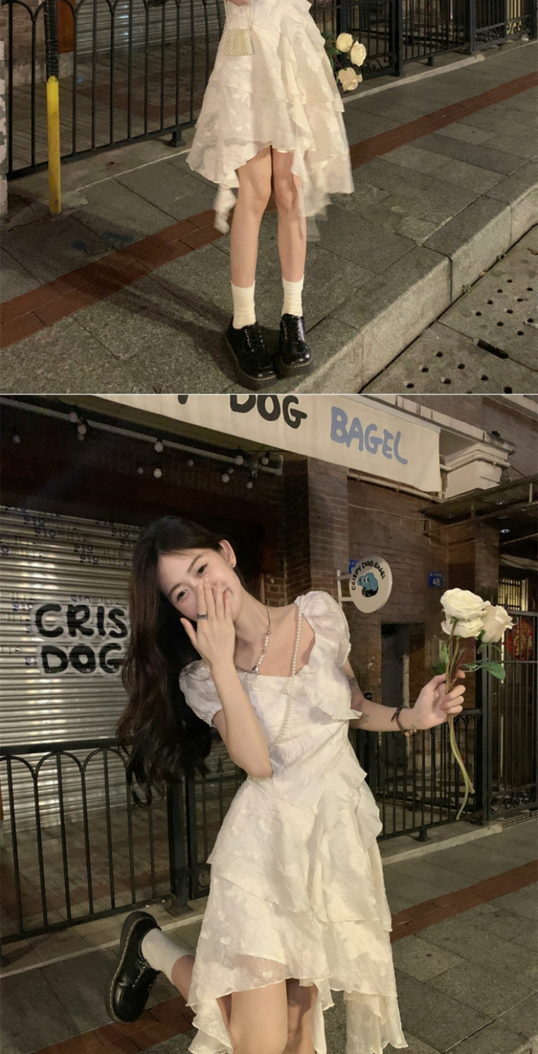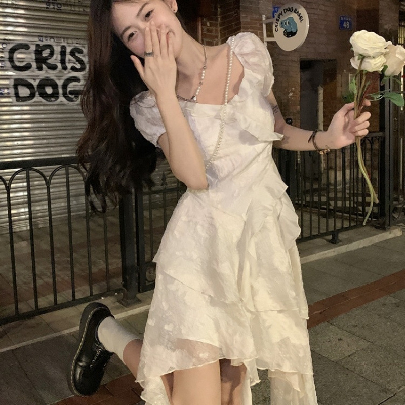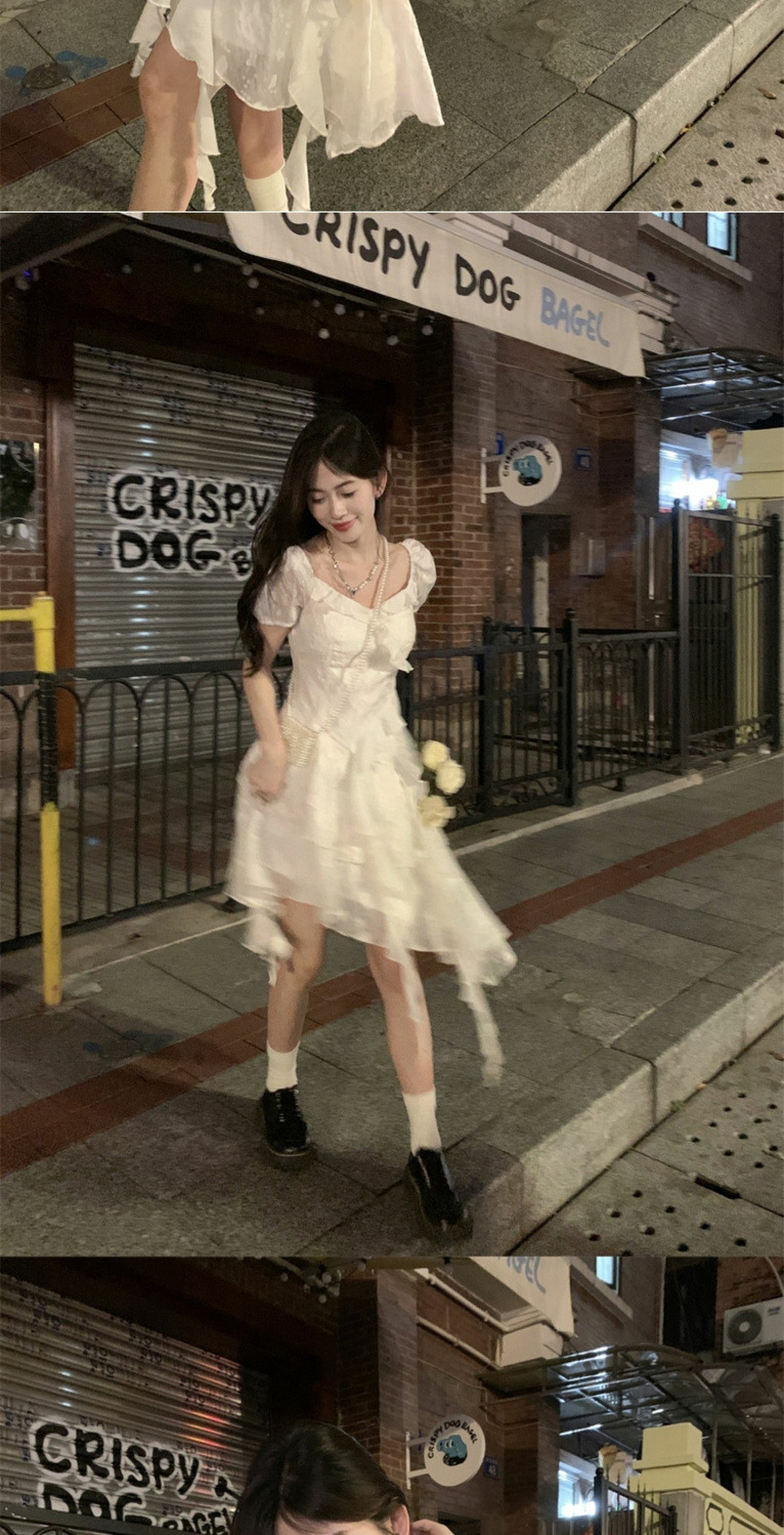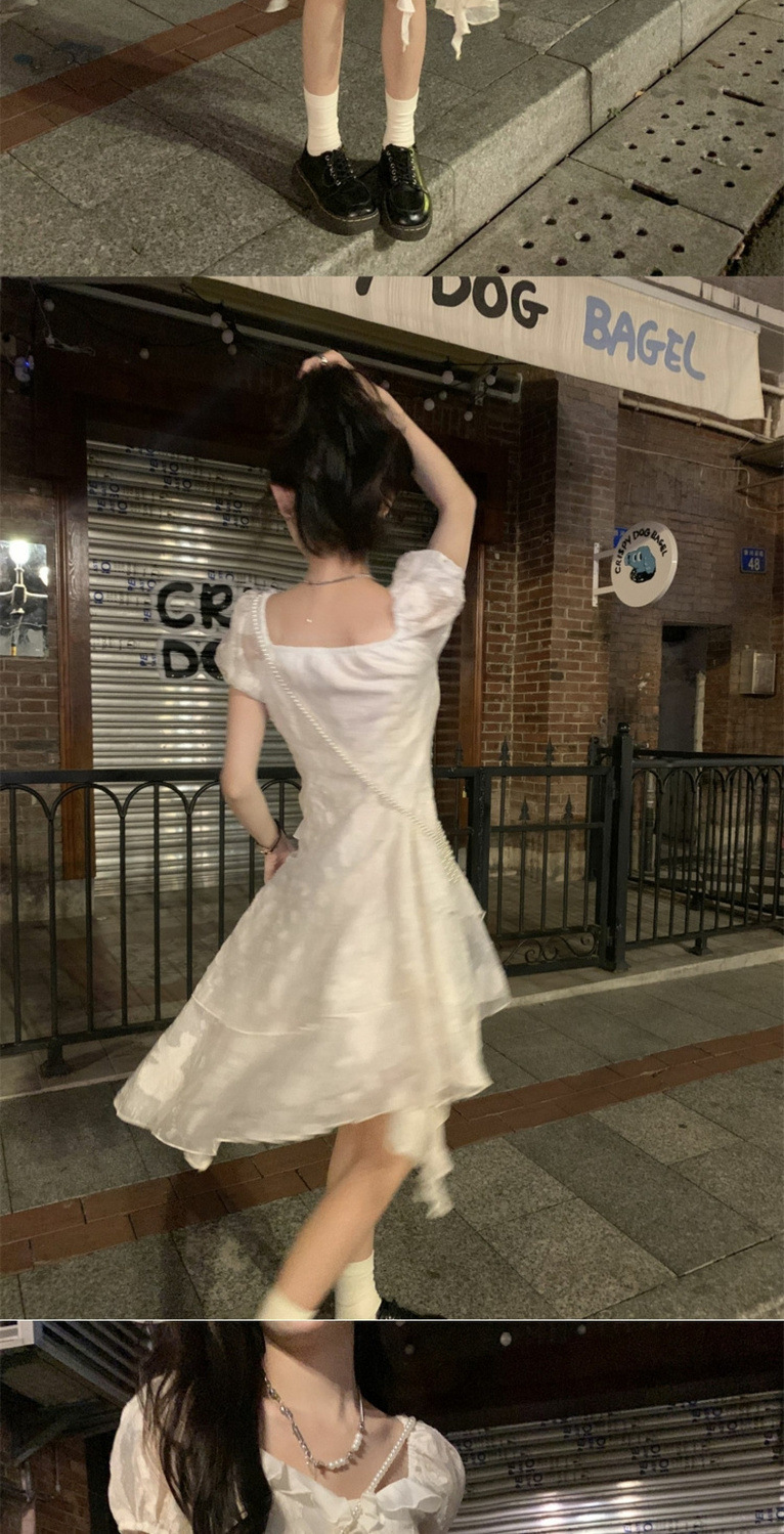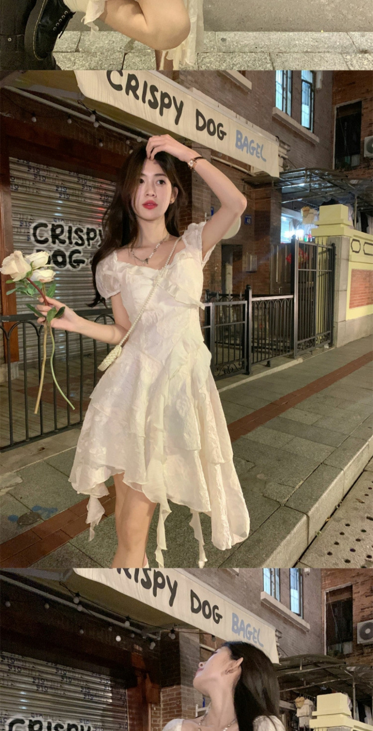 2025 새로운 프랑스 차 브레이크 첫사랑 불규칙한 흰색 공주 원피스 여성 여름 슈퍼 요정 아름다운 작은스토어 가기