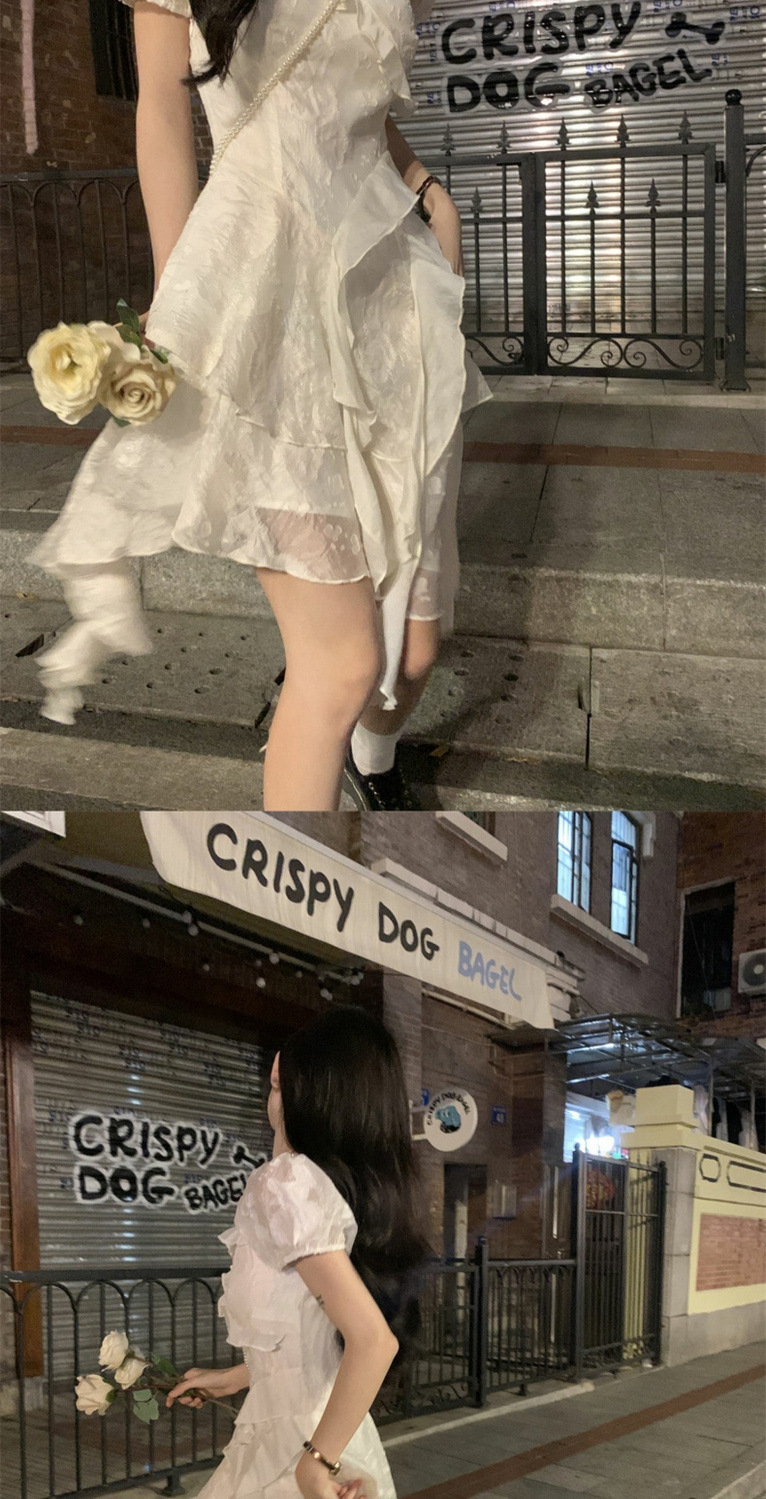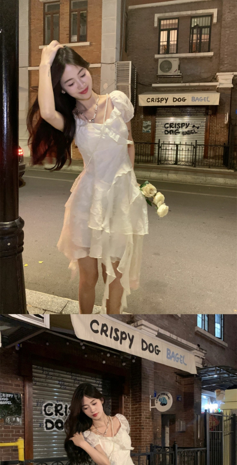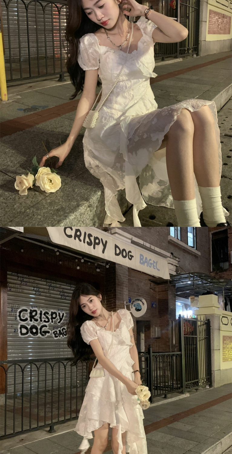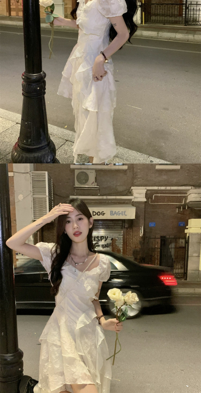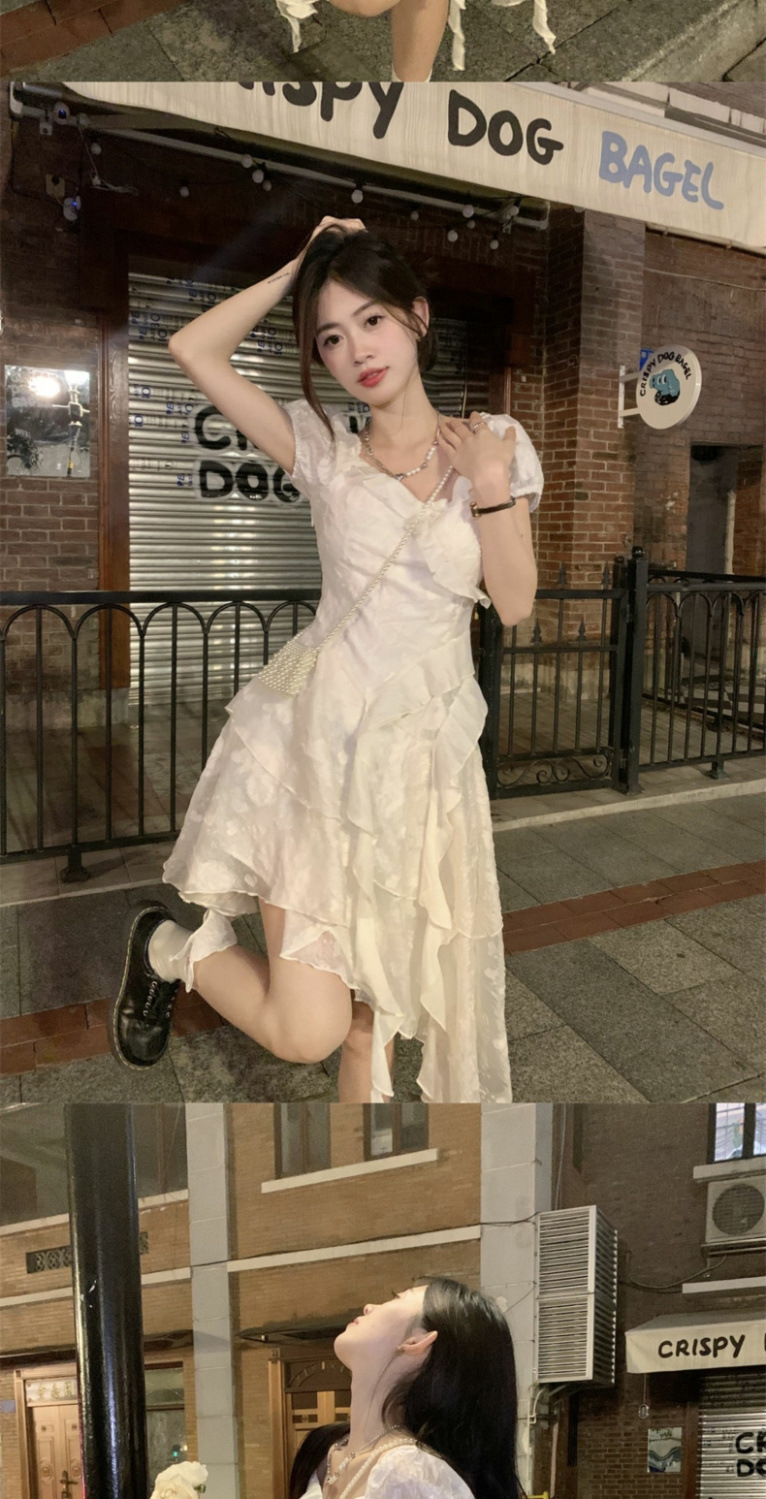 2025 새로운 프랑스 차 브레이크 첫사랑 불규칙한 흰색 공주 원피스 여성 여름 슈퍼 요정 아름다운 작은스토어 가기
