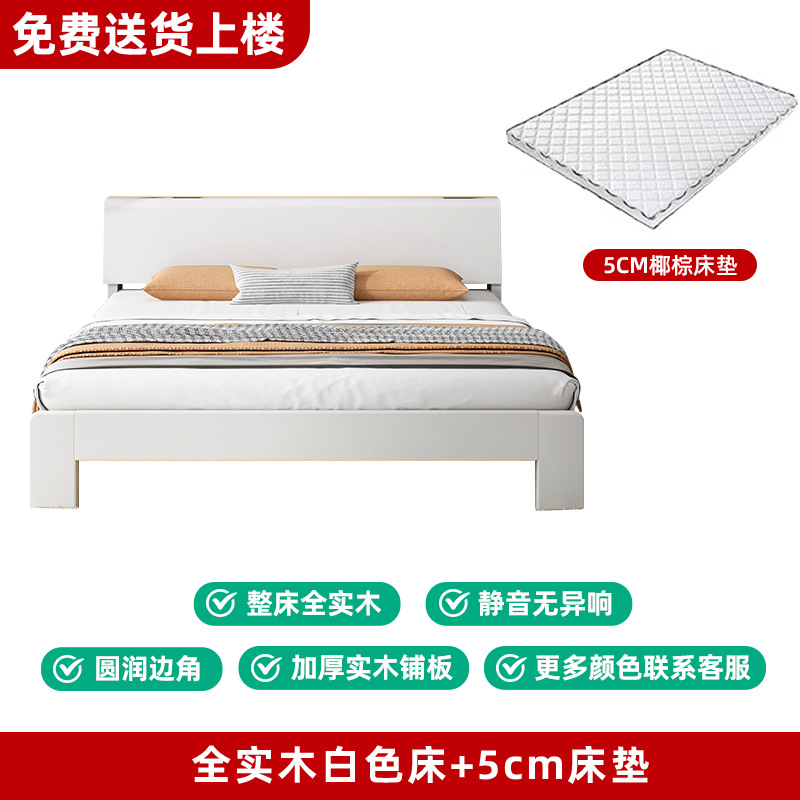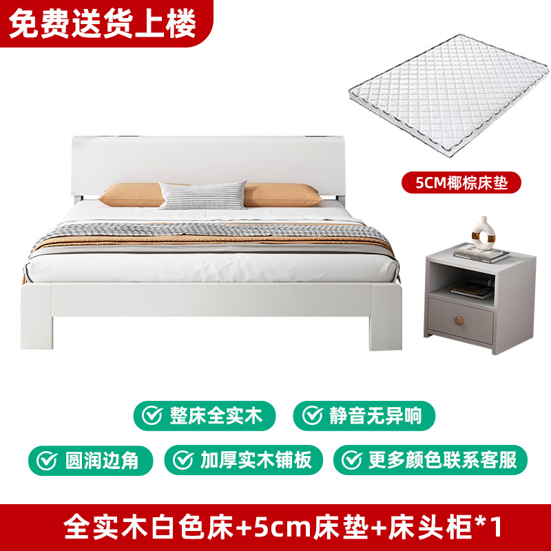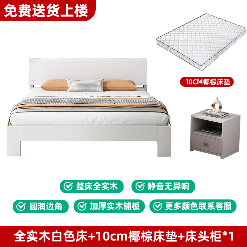 • 원목 화이트 침대 + 10cm 코코넛 야자 매트리스 + 침대 옆 테이블 * 1 [위층 배송]