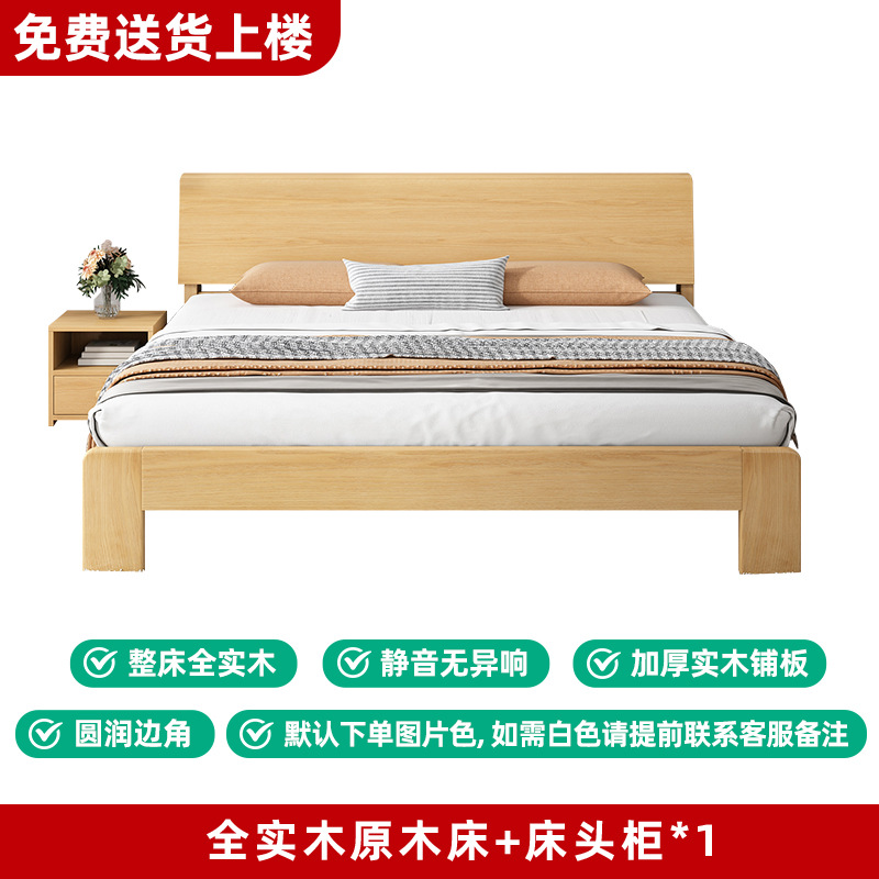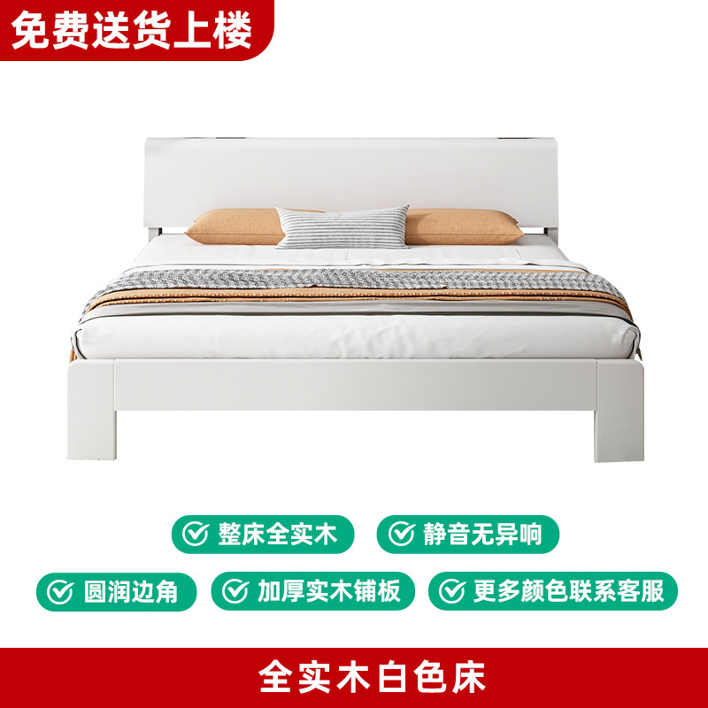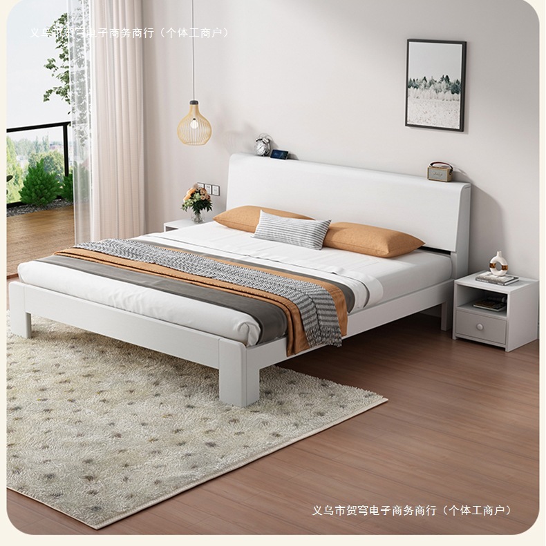 • 원목 화이트 침대 + 침대 옆 탁자 * 1 [위층 배송]