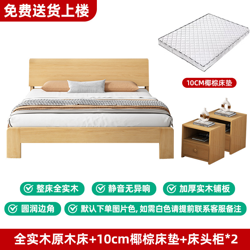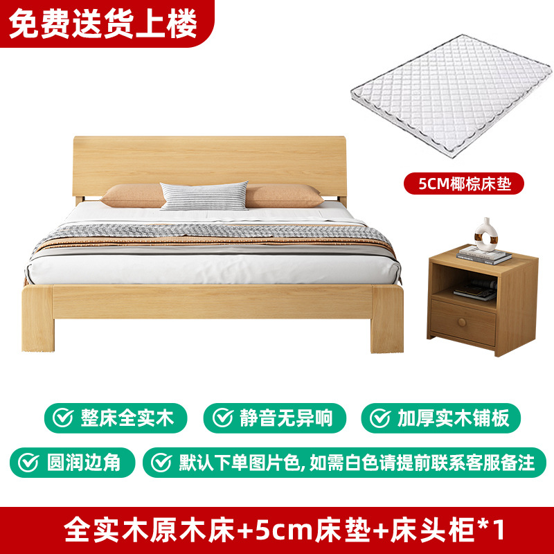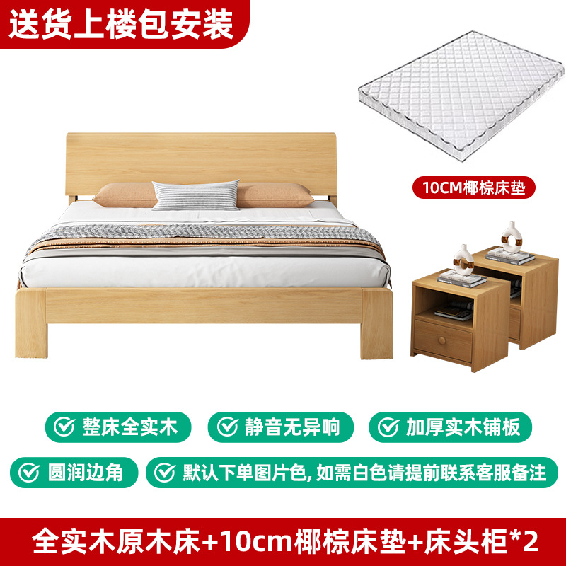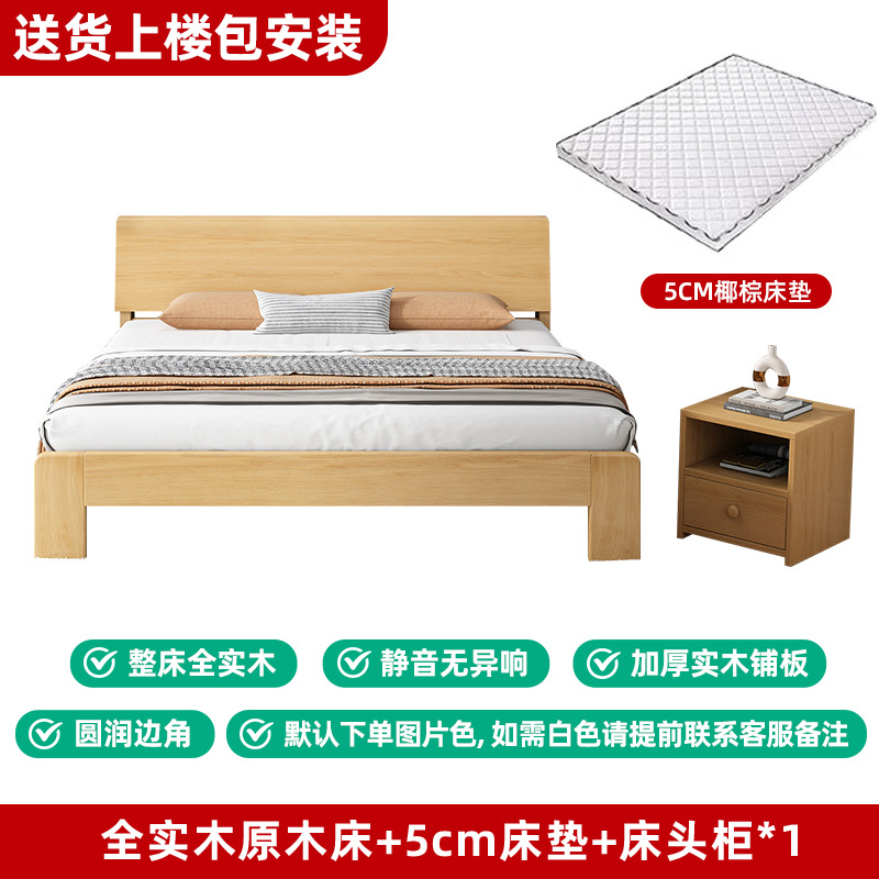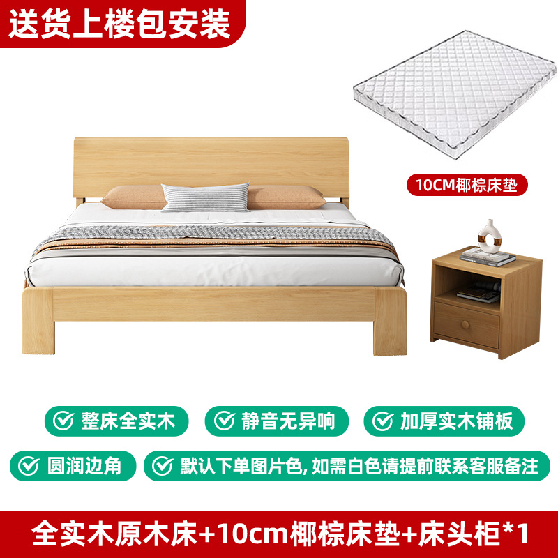 • 올 원목 통나무 침대 + 10cm 코코넛 야자 매트리스 + 침대 옆 탁자 * 1 [위층 배송]
