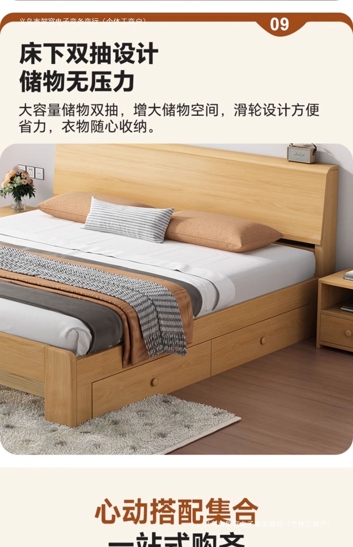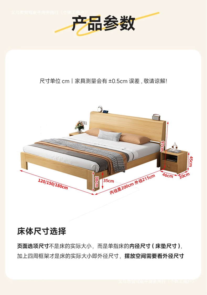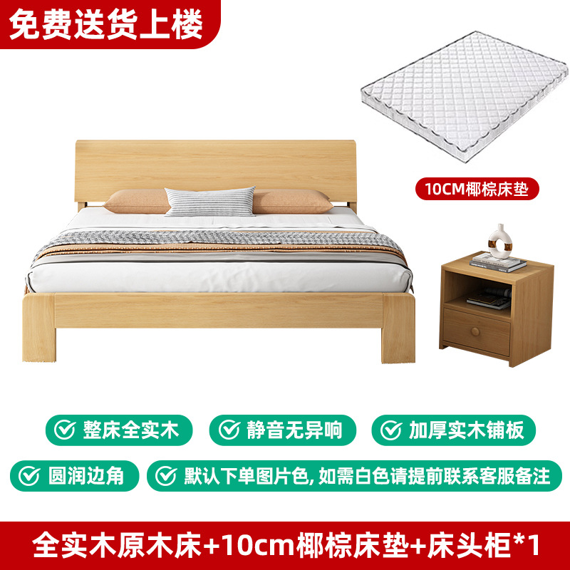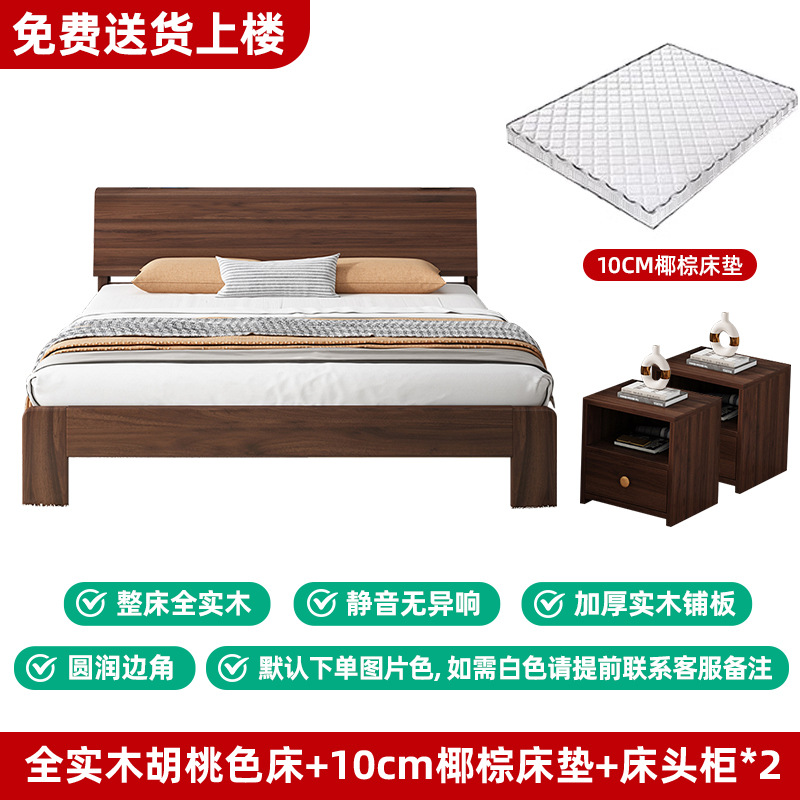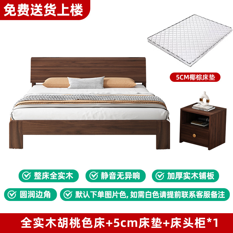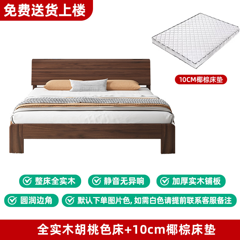 • 원목 호두색 침대 + 10cm 코코넛 야자 매트리스 + 침대 옆 탁자 * 1 [위층 배송]