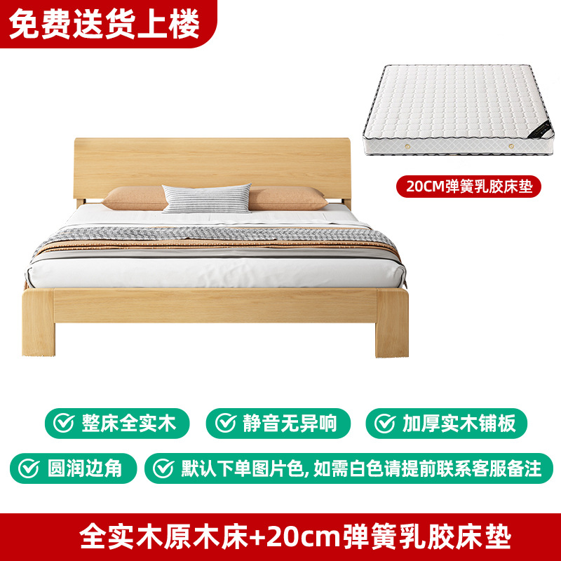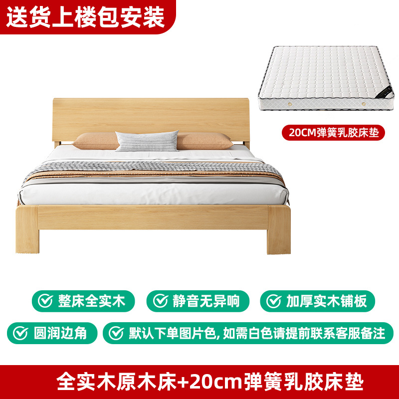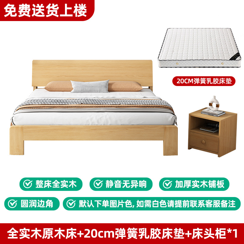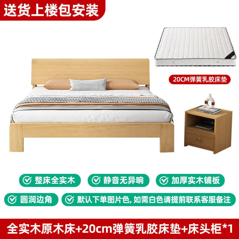 • 올 원목 통나무 침대 + 20cm 스프링 라텍스 매트리스 + 침대 옆 탁자 * 1 [위층 배송]