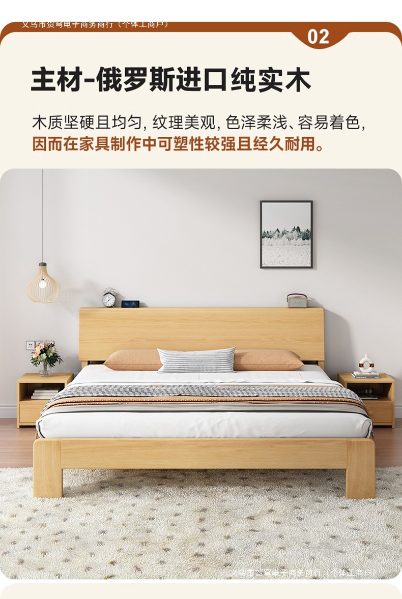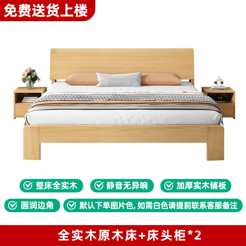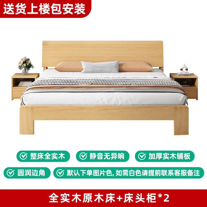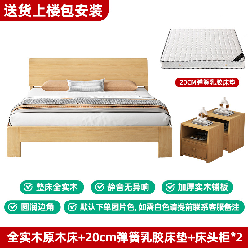 • 원목 통나무 침대 + 20cm 스프링 라텍스 매트리스 + 침대 옆 탁자 * 2 [위층 배송]