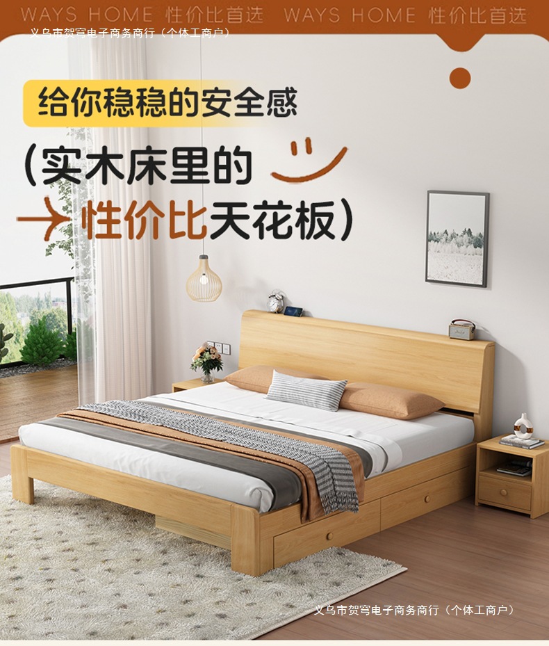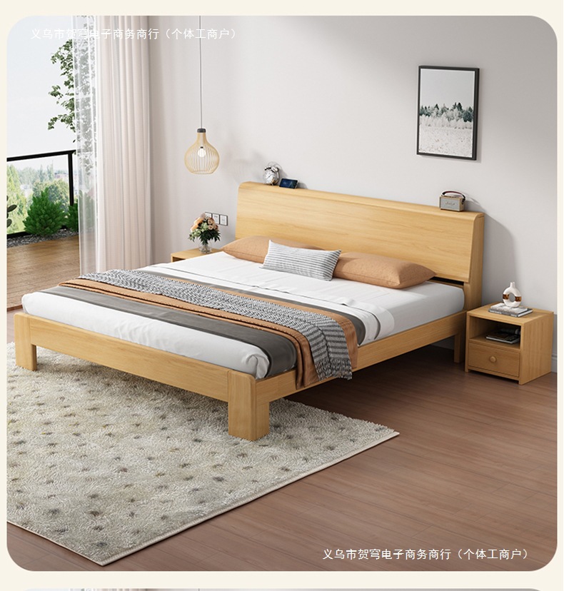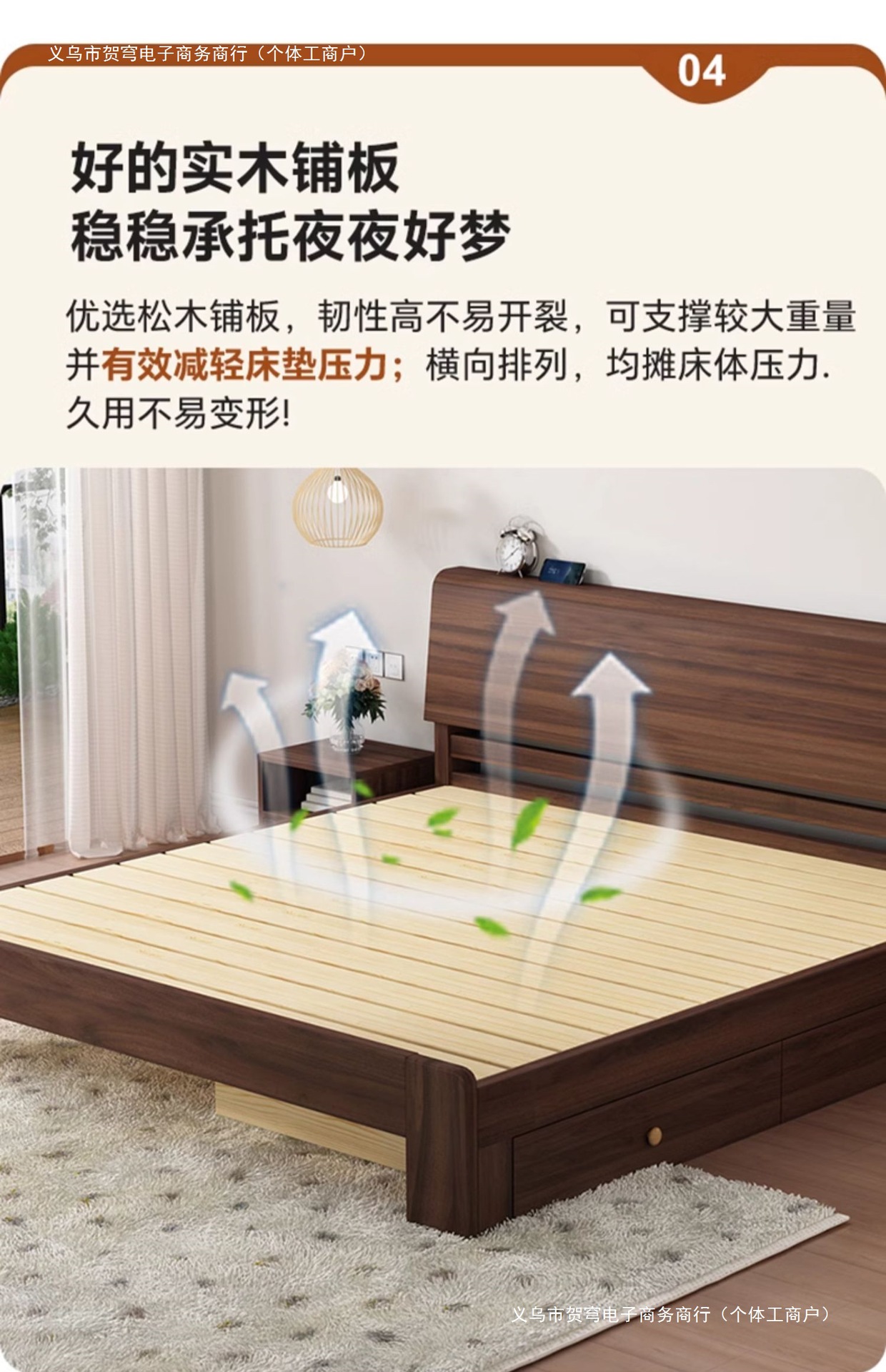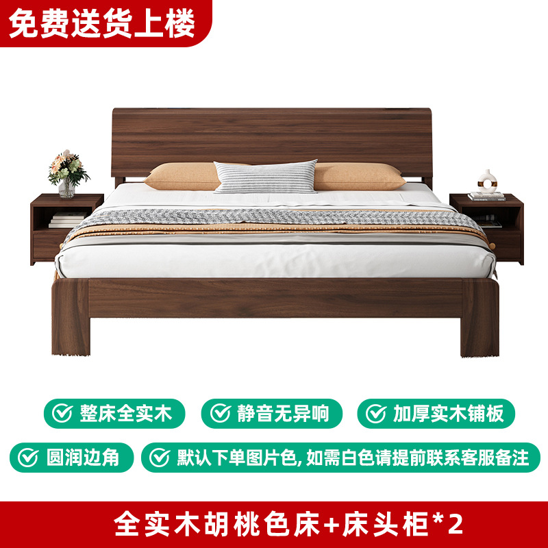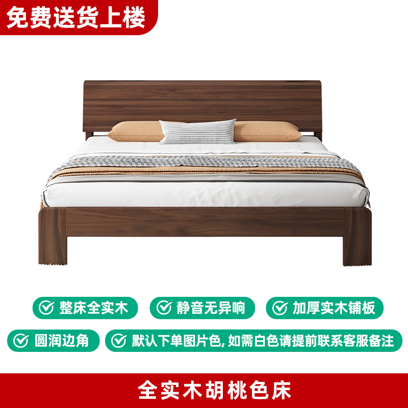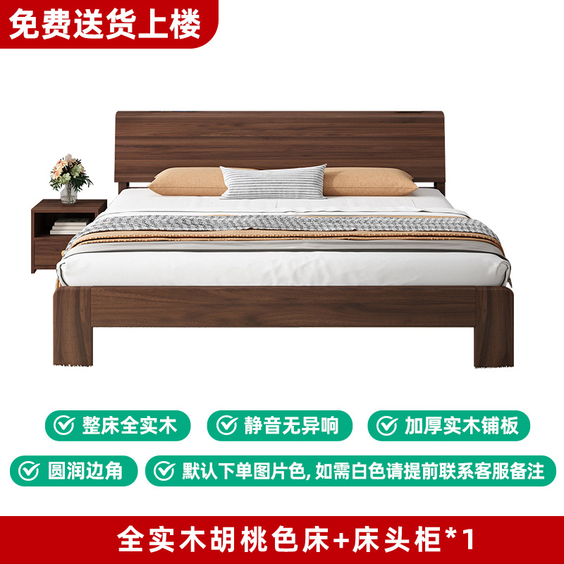 단단한 나무 침대 침실 홈 침대 1.8m 더블 침대 호두 침대 1.62m 임대실용 싱글 침대 침대 프레임스토어 가기