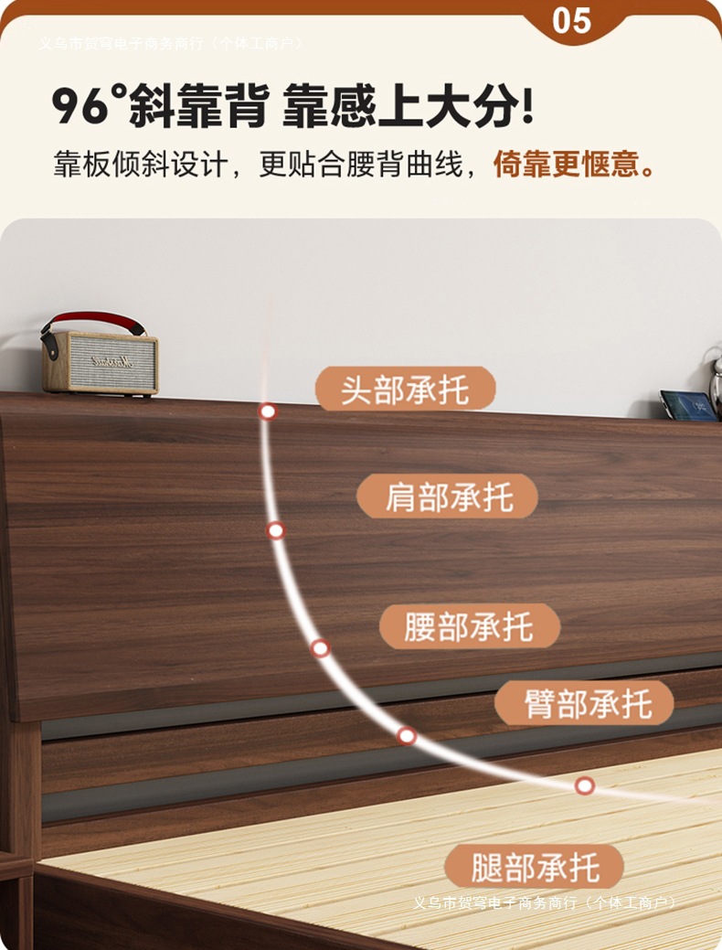 • 원목 호두색 침대 + 5cm 매트리스 + 침대협탁 * 1 [위층 배송]