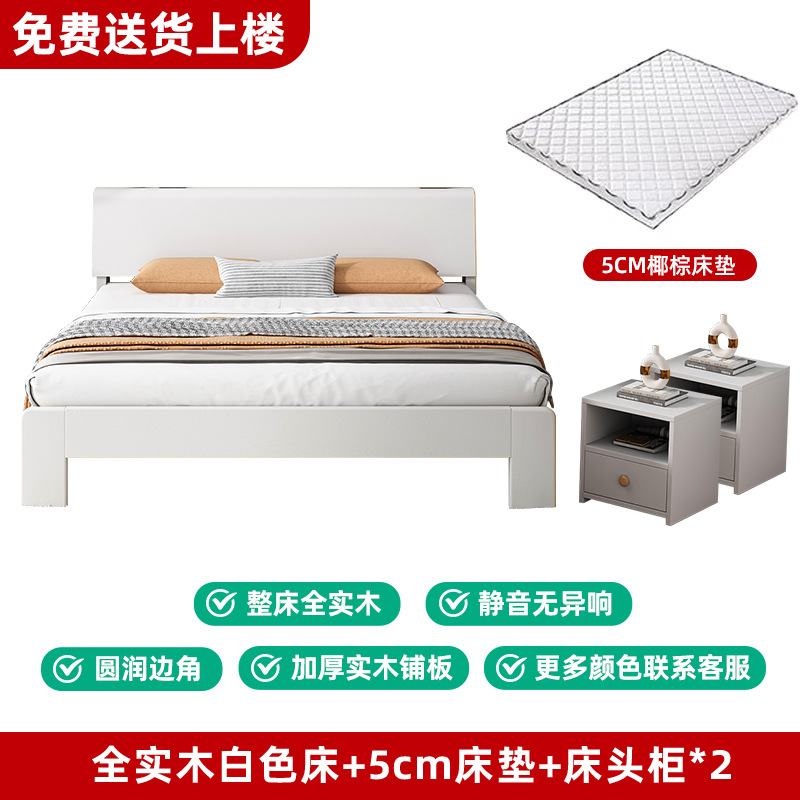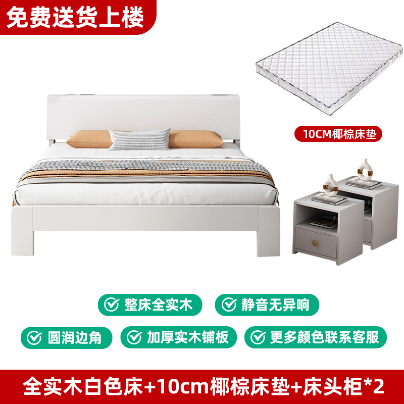 • 원목 화이트 침대 + 10cm 코코넛 야자 매트리스 + 침대 옆 테이블 * 2 [위층 배송]