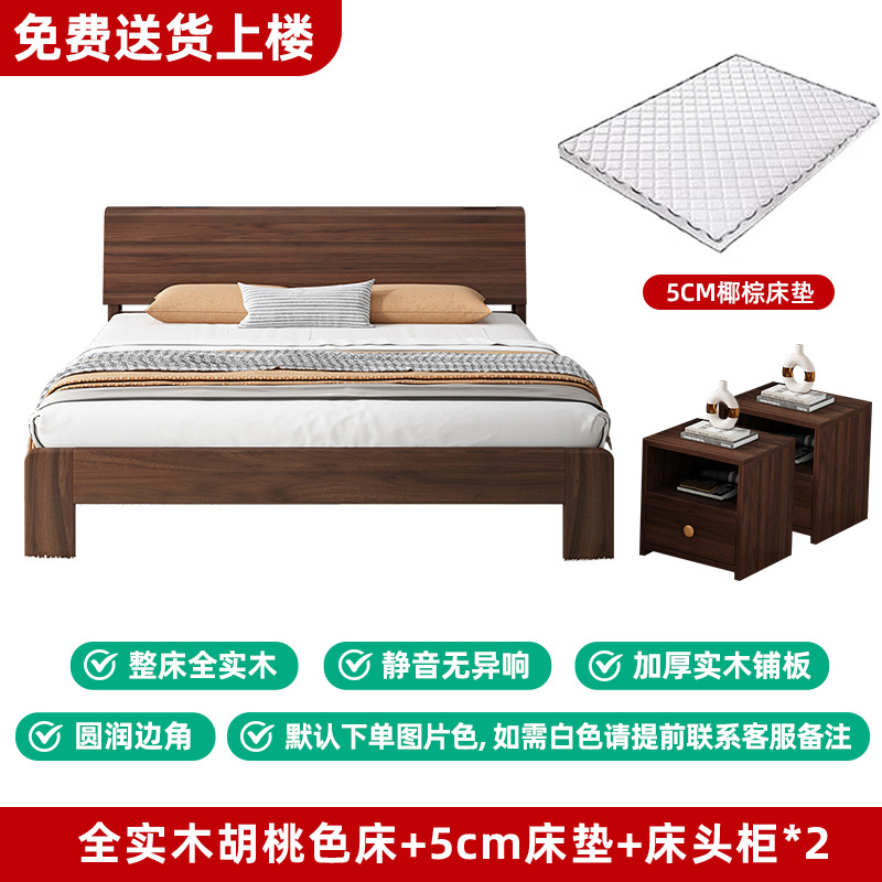 • 원목 호두색 침대 + 10cm 코코넛 야자 매트리스 + 침대 옆 탁자 * 2 [위층 배송]