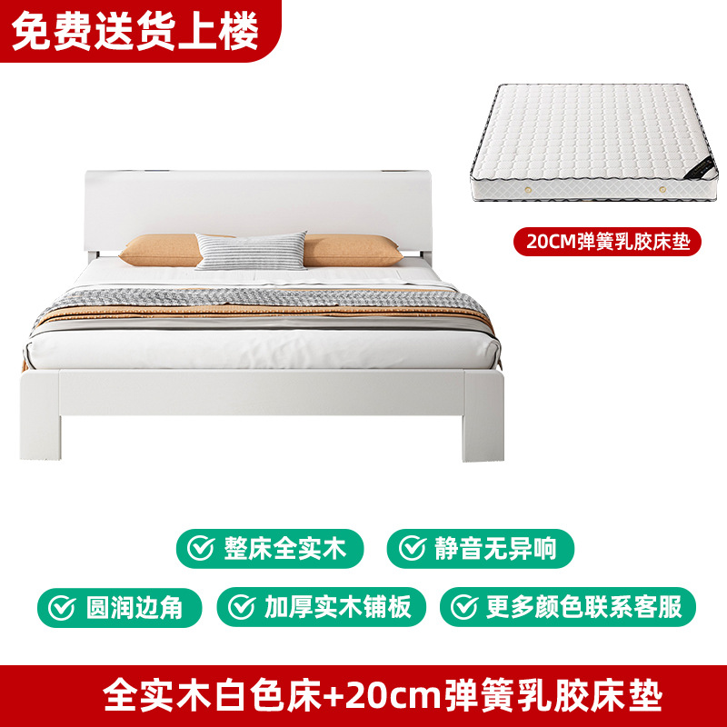 • 올 원목 화이트 침대 + 20cm 스프링 라텍스 매트리스 [위층 배송]