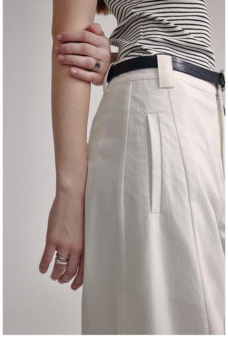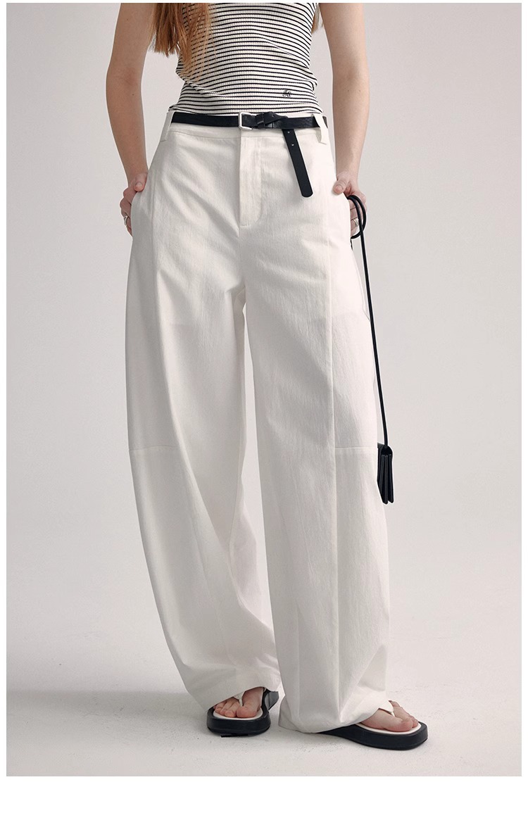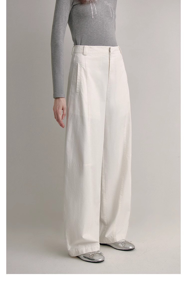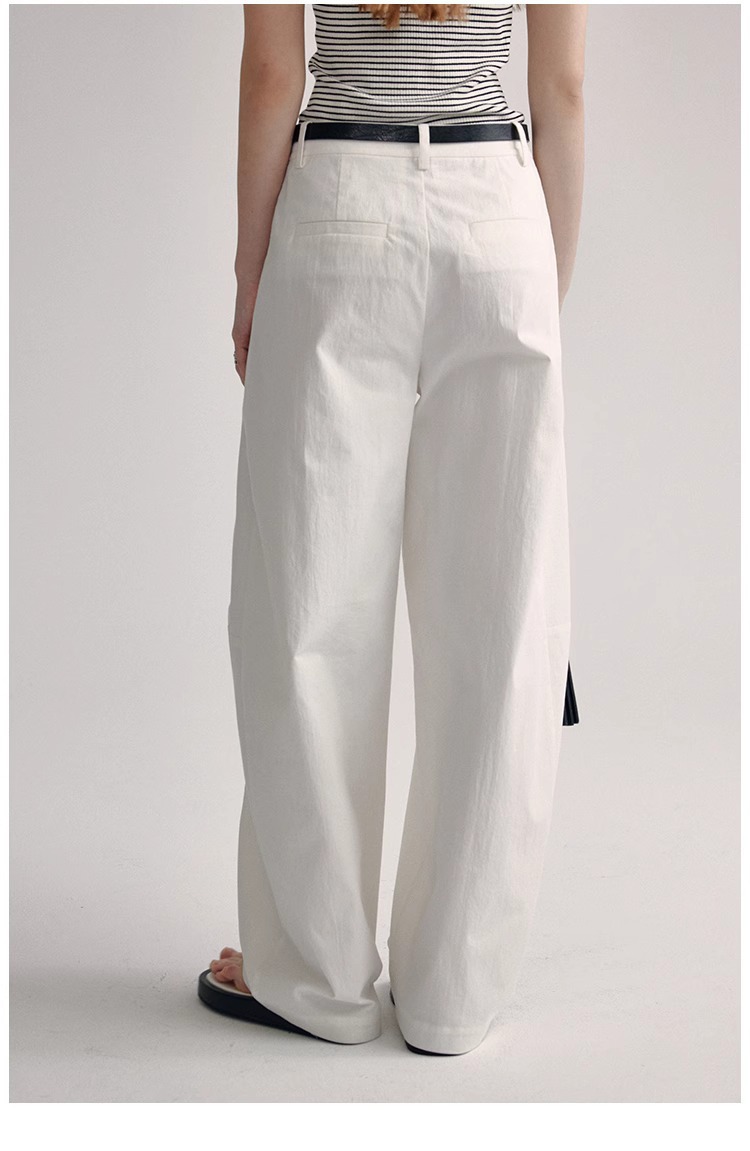 화이트 스트레이트 캐주얼 와이드 레그 팬츠 여자 2025 년 여름 새로운 한국식 하이 웨이스트 슬리밍 루즈 마체테 올 매치 바지스토어 가기