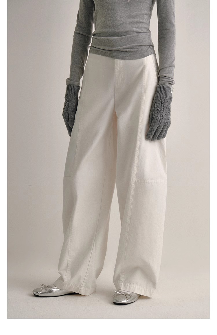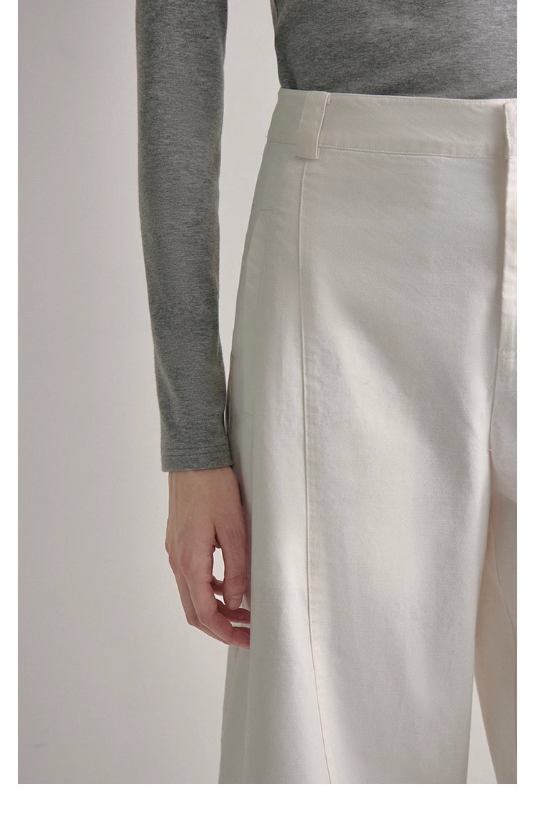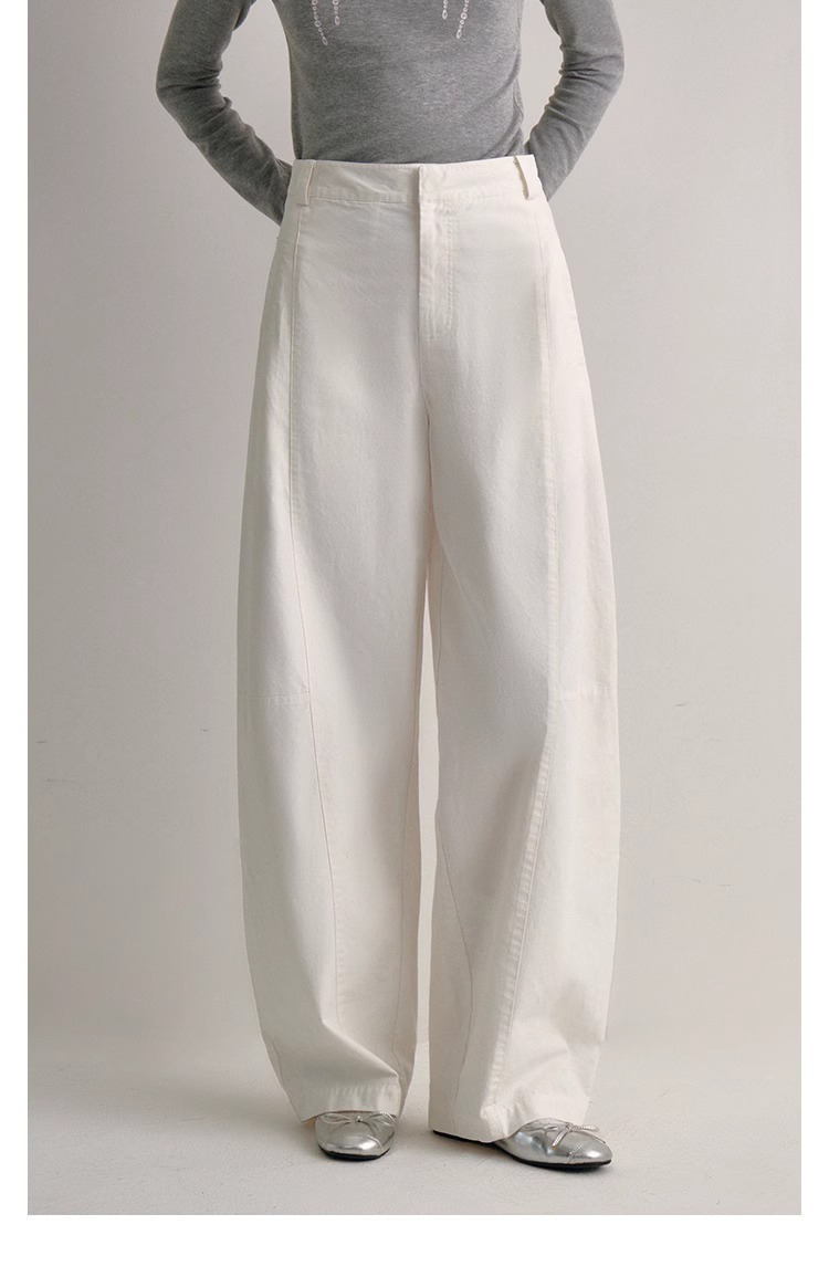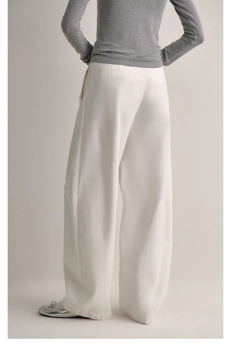 白色直筒休闲裤女高腰显瘦棉质2025夏宽松弯刀裤百搭阔腿裤子