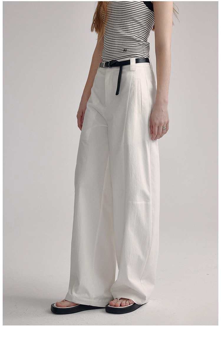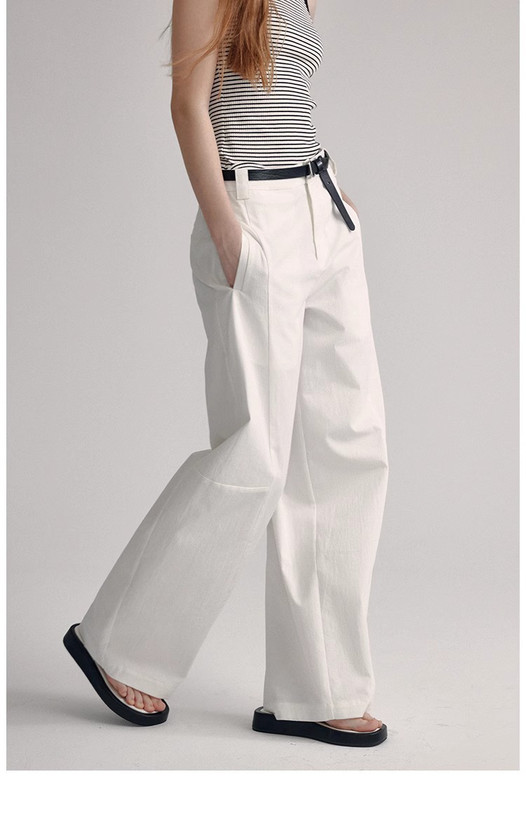 화이트 스트레이트 캐주얼 와이드 레그 팬츠 여자 2025 년 여름 새로운 한국식 하이 웨이스트 슬리밍 루즈 마체테 올 매치 바지