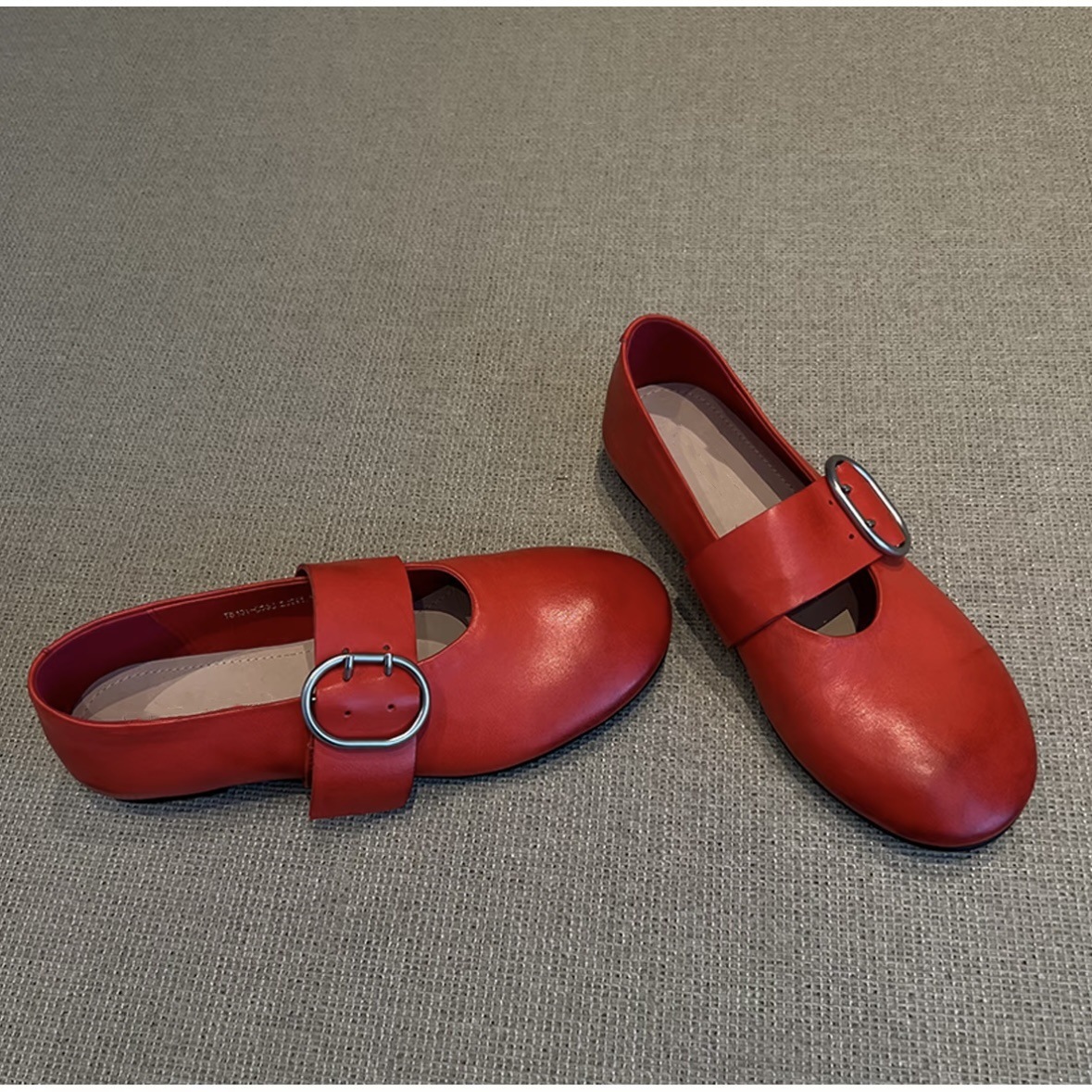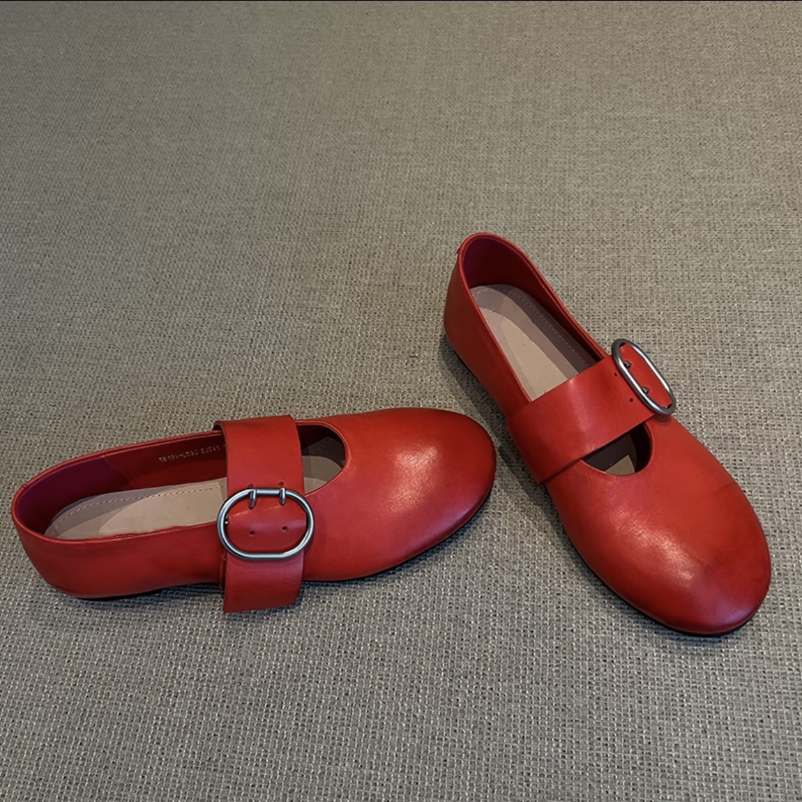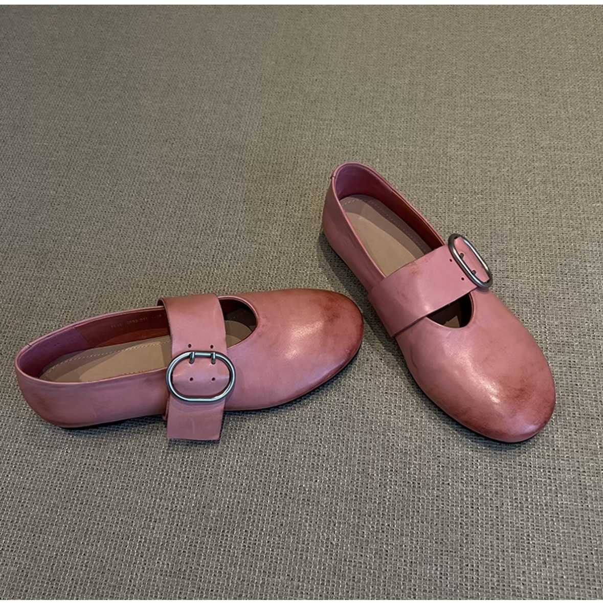 Cowhide 버전 ~ 2025 봄 새로운 라운드 헤드 벨트 버클 낮은 힐 평평한 바닥 버클 Mary Jane 신발 여성