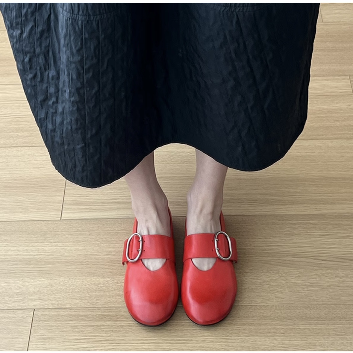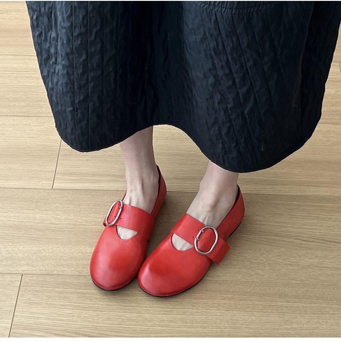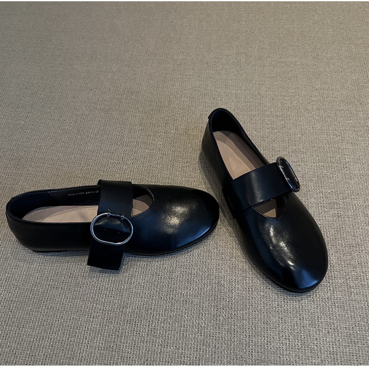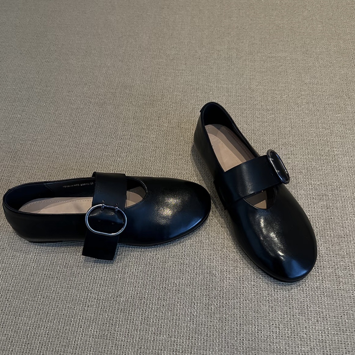 Cowhide 버전 ~ 2025 봄 새로운 라운드 헤드 벨트 버클 낮은 힐 평평한 바닥 버클 Mary Jane 신발 여성