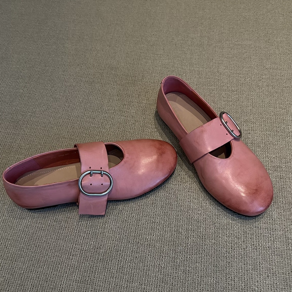Cowhide 버전 ~ 2025 봄 새로운 라운드 헤드 벨트 버클 낮은 힐 평평한 바닥 버클 Mary Jane 신발 여성스토어 가기