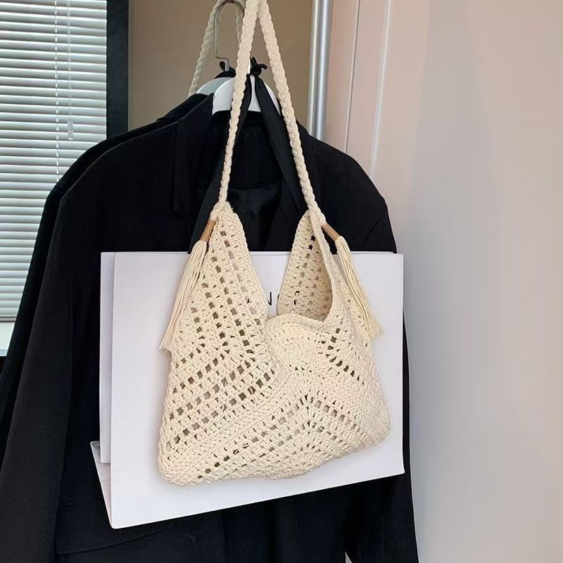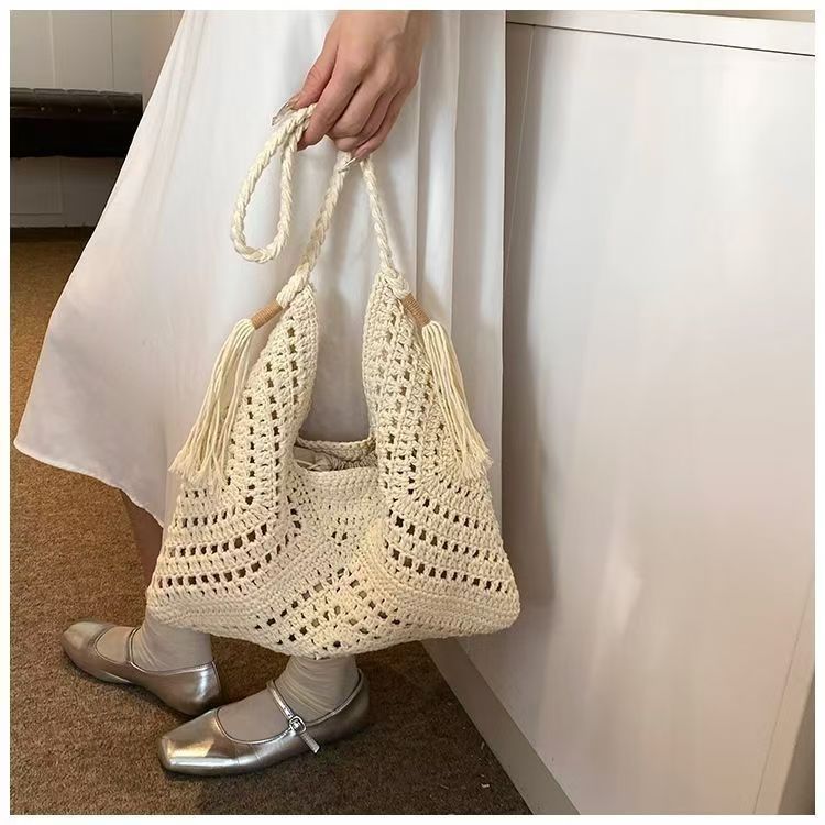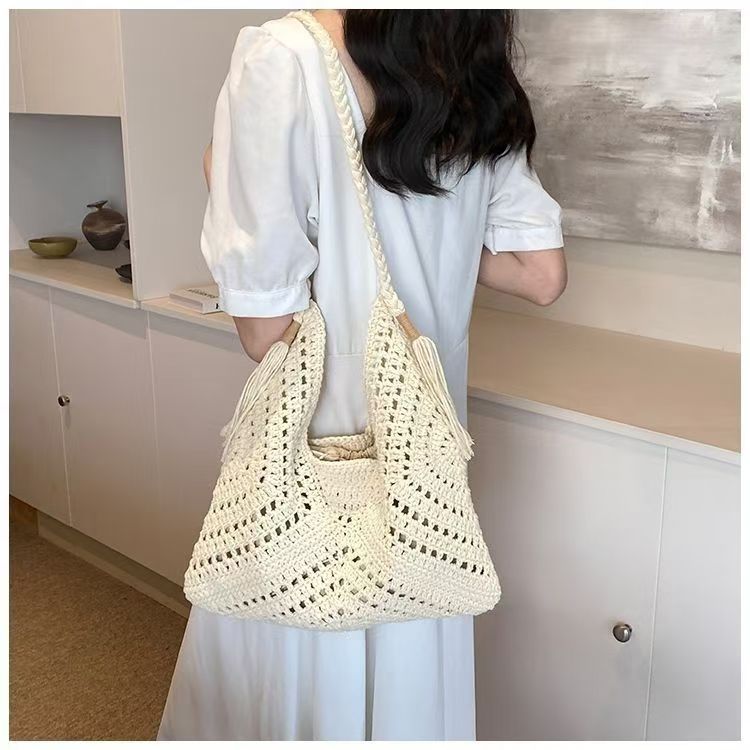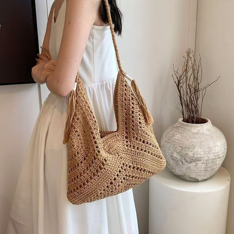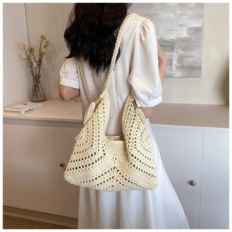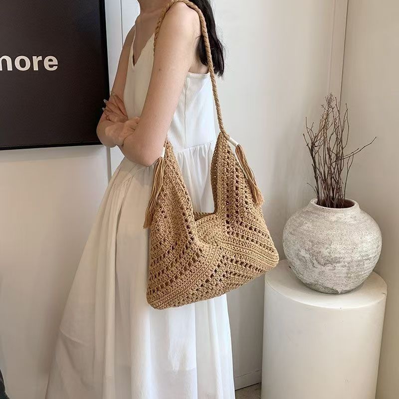 빈티지 짠 여성용 가방 여름 어깨 가방 해변 휴가 올 매치 울 백 대용량 크로스 바디 백스토어 가기