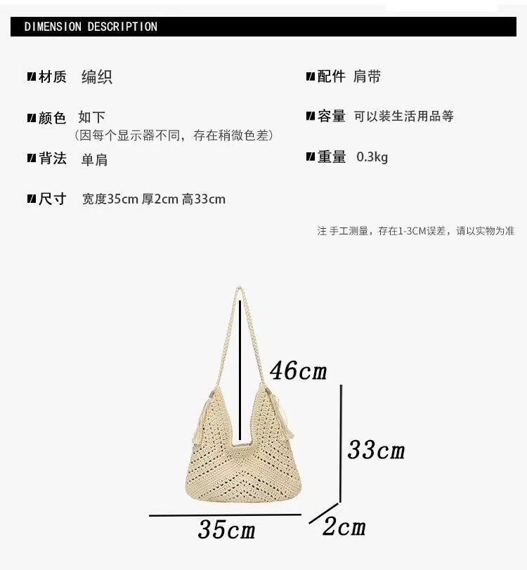 빈티지 짠 여성용 가방 여름 어깨 가방 해변 휴가 올 매치 울 백 대용량 크로스 바디 백