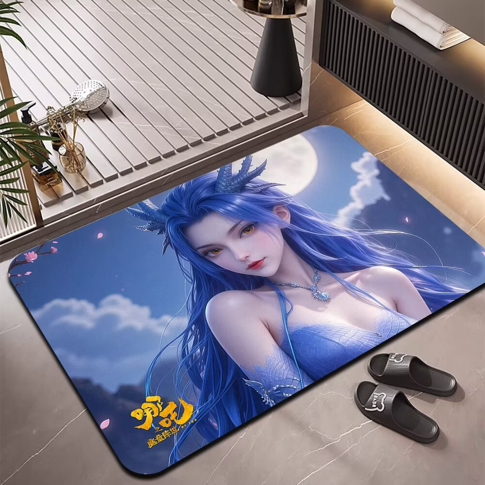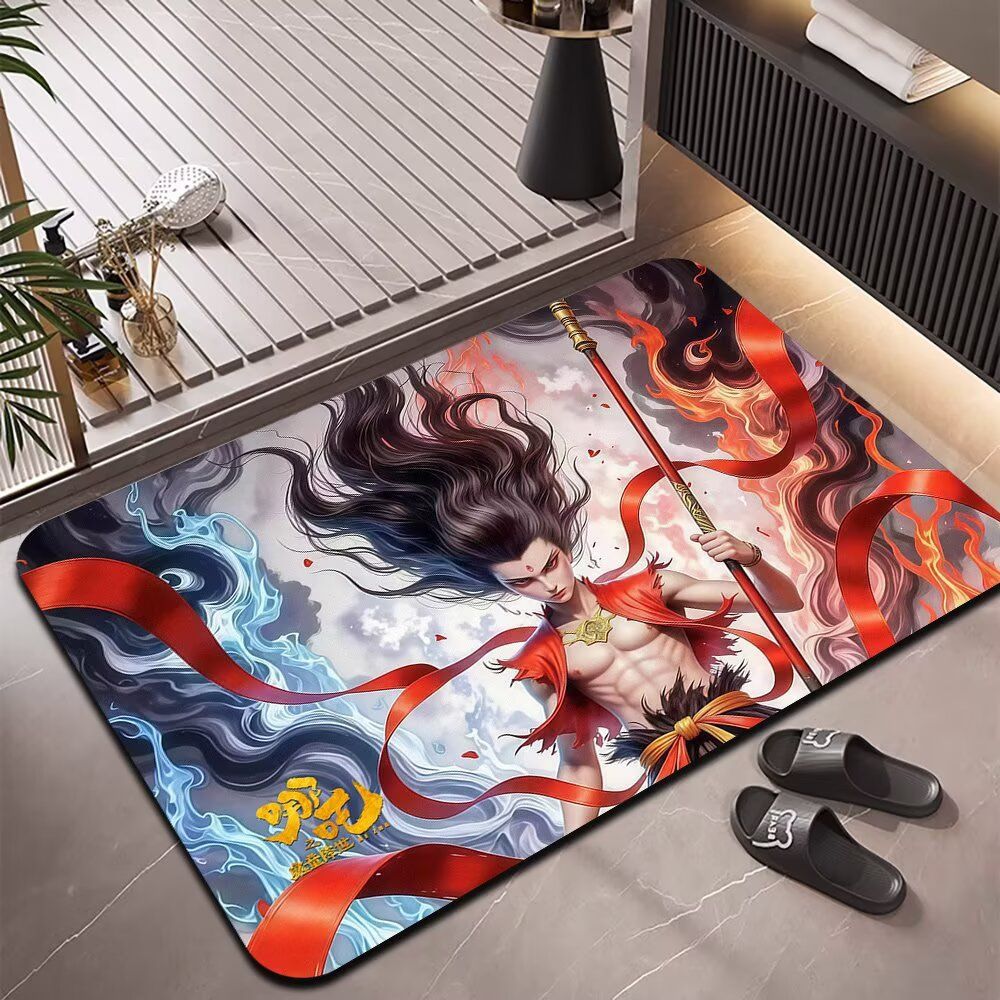 Nezha Devil Child, Diatom 진흙 바닥 매트 화장실 문 바닥 매트 가정용 욕실 미끄럼 방지 매트 물 흡수성 빠른 건조 매트