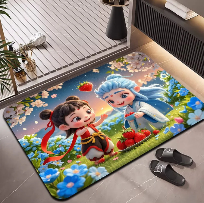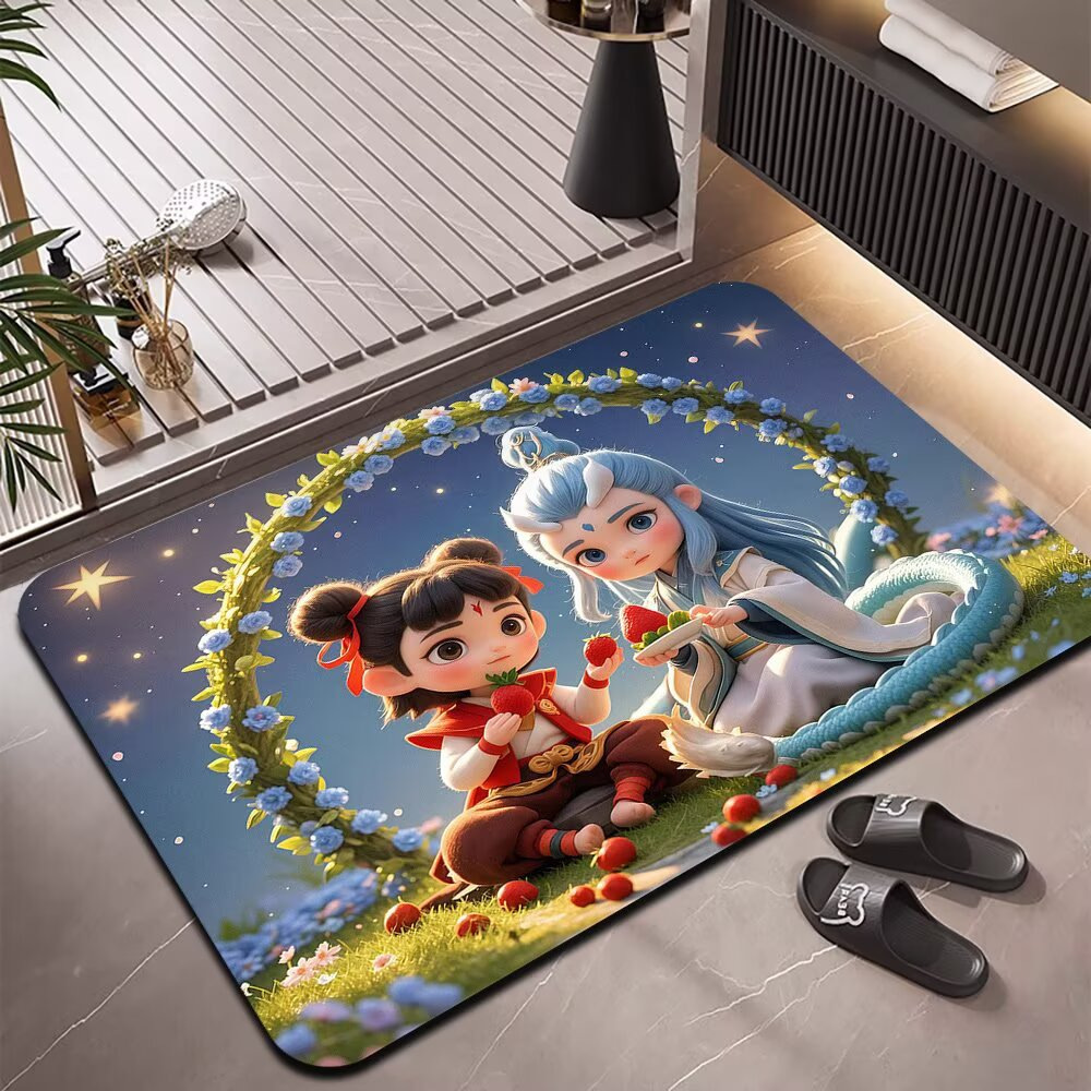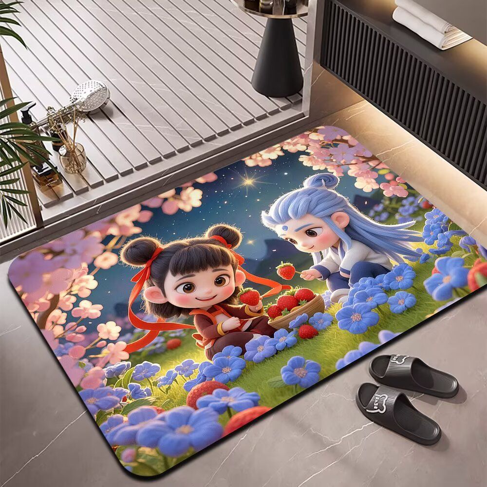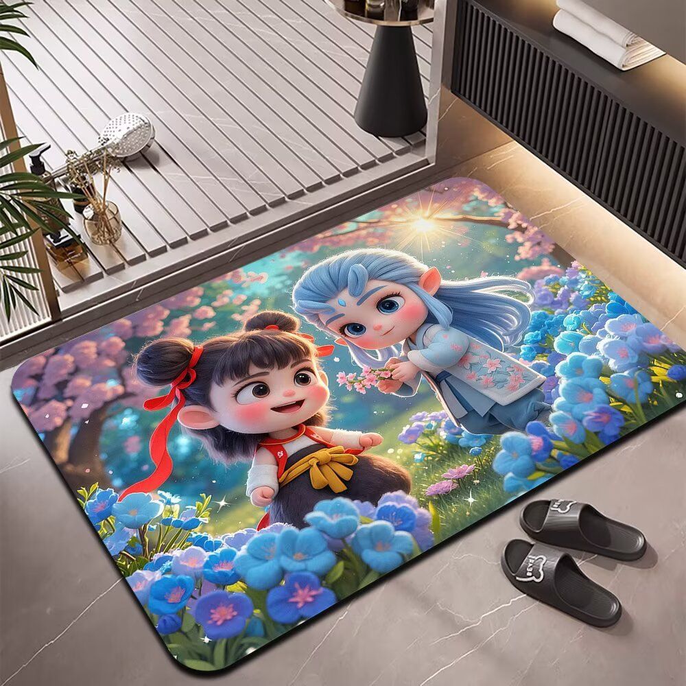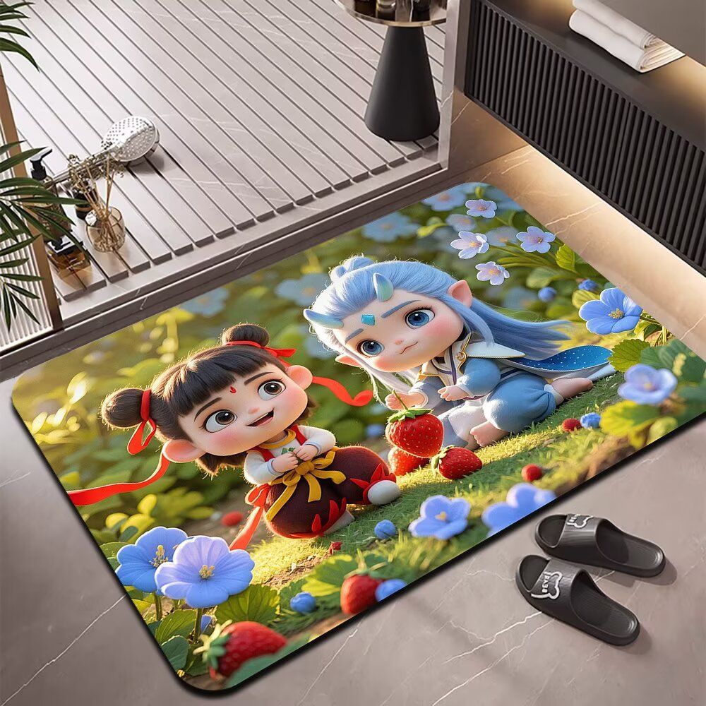 Nezha Devil Child, Diatom 진흙 바닥 매트 화장실 문 바닥 매트 가정용 욕실 미끄럼 방지 매트 물 흡수성 빠른 건조 매트스토어 가기